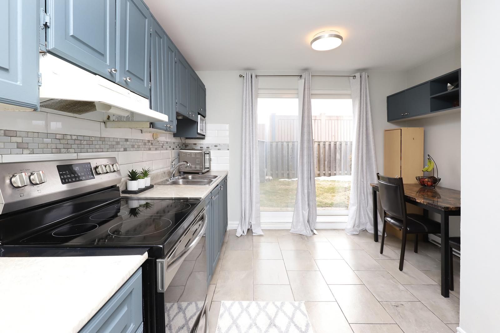 Very bright and spacious 3 bedroom stacked townhouse in applewood heights. Excellent ground floor location with fully fenced yard. Open concept living/dining. Eat-in kitchen with walk-out to yard with sunny south exposure. Laminate and ceramic floors. Hardwood steps, updated bathrooms, freshly painting in neutral colours. Must be seen!! Excellent location! Steps to bus stop. One bus to subway. Walk to schools, parks, and shopping. Close to go train station, costco, walmart. Minutes to major hwys: qew, 427, and 403.