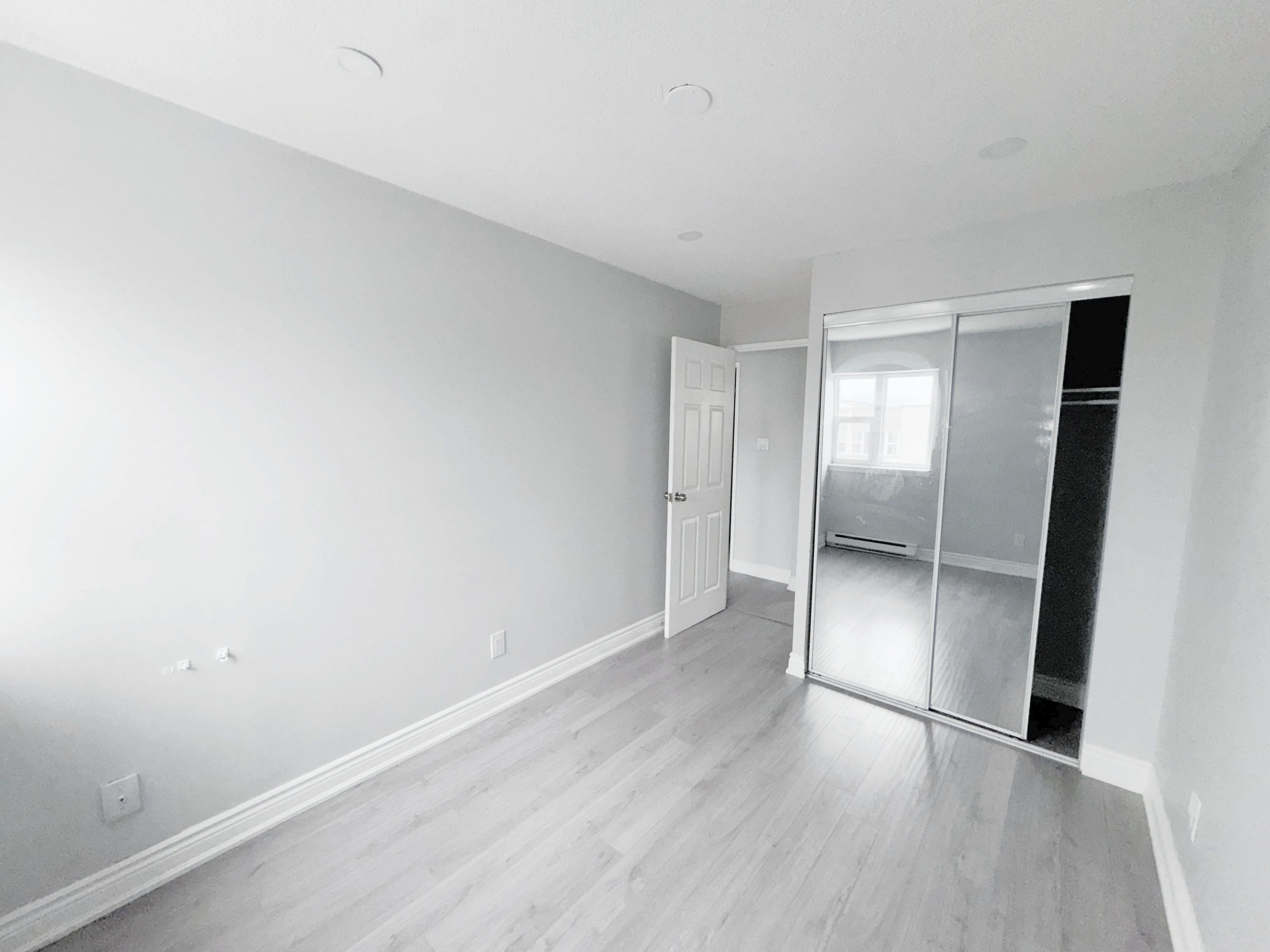 **stylish & spacious townhome living in the heart of mississauga.**bright, functional main level**step into a welcoming foyer with a blend of ceramic and laminate flooring, setting the tone for this well-maintained home. The updated kitchen features tile flooring, stainless steel fridge, stove, dishwasher, and range - perfectly positioned beside a generous dining area with pot lights and a walk-out to your private balcony, ideal for morning coffee or evening relaxation. The spacious family room offers laminate flooring, a large window for natural light, and pot lights for a warm, modern feel. A convenient main-floor laundry room with washer, dryer, and tile flooring adds everyday practicality.**comfortable & private upper level**upstairs, the primary bedroom offers laminate flooring, mirrored double closet, and pot lights for a bright, polished look. Two additional well-sized bedrooms feature laminate flooring and ample closet space - perfect for growing families, guests, or a home office. The updated 4-piece bathroom includes tile flooring and a stand-up shower for added comfort.**location & lifestyle**situated in a highly convenient mississauga location, close to shopping, transit, schools, parks, and major highways, this home is ideal for first-time buyers, young families, or investors seeking space and value in a central setting. A fantastic opportunity to own a move-in-ready townhome in an established, family-friendly community.