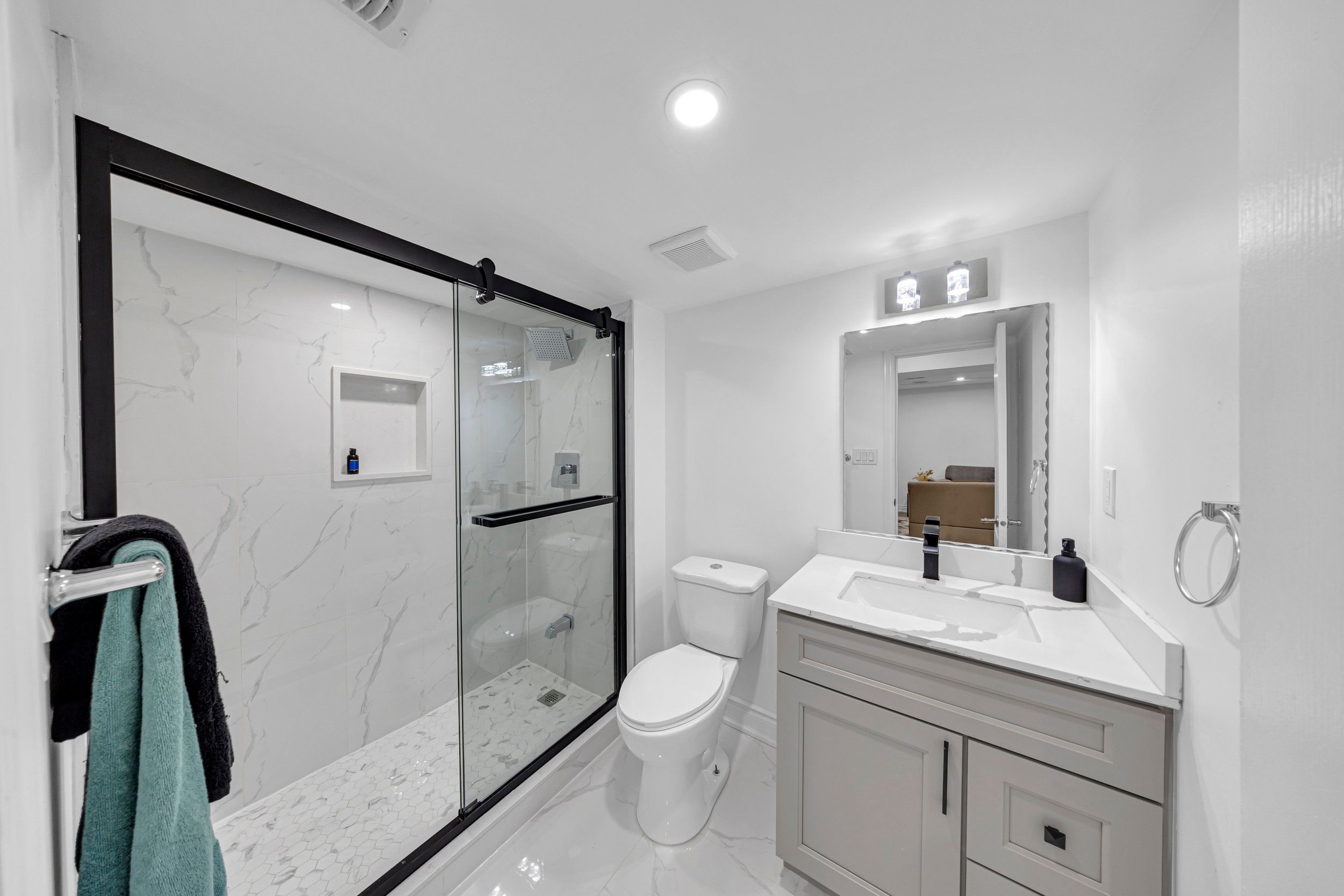 • Finished basement featuring an additional kitchen and bathroom.