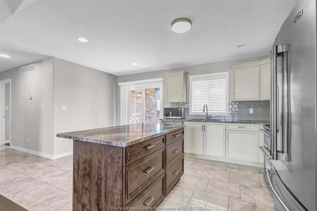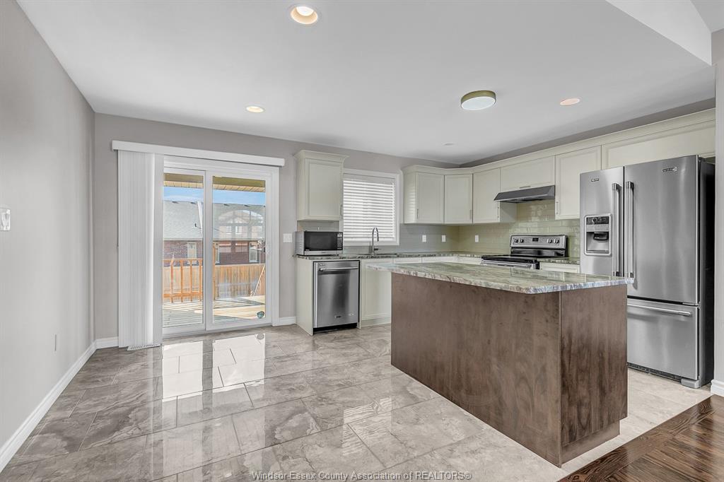 • Luxurious kitchen with a center island and patio access.