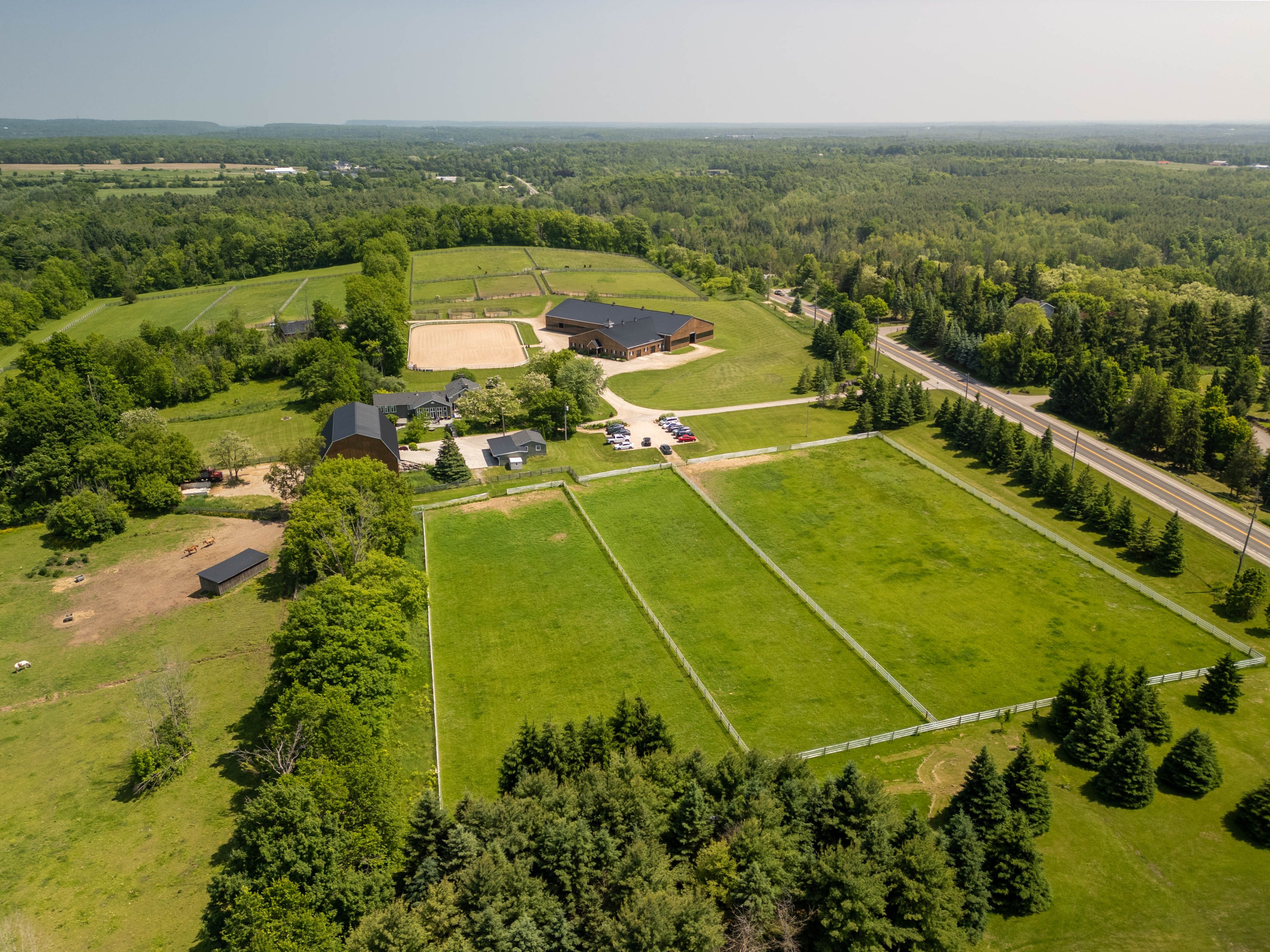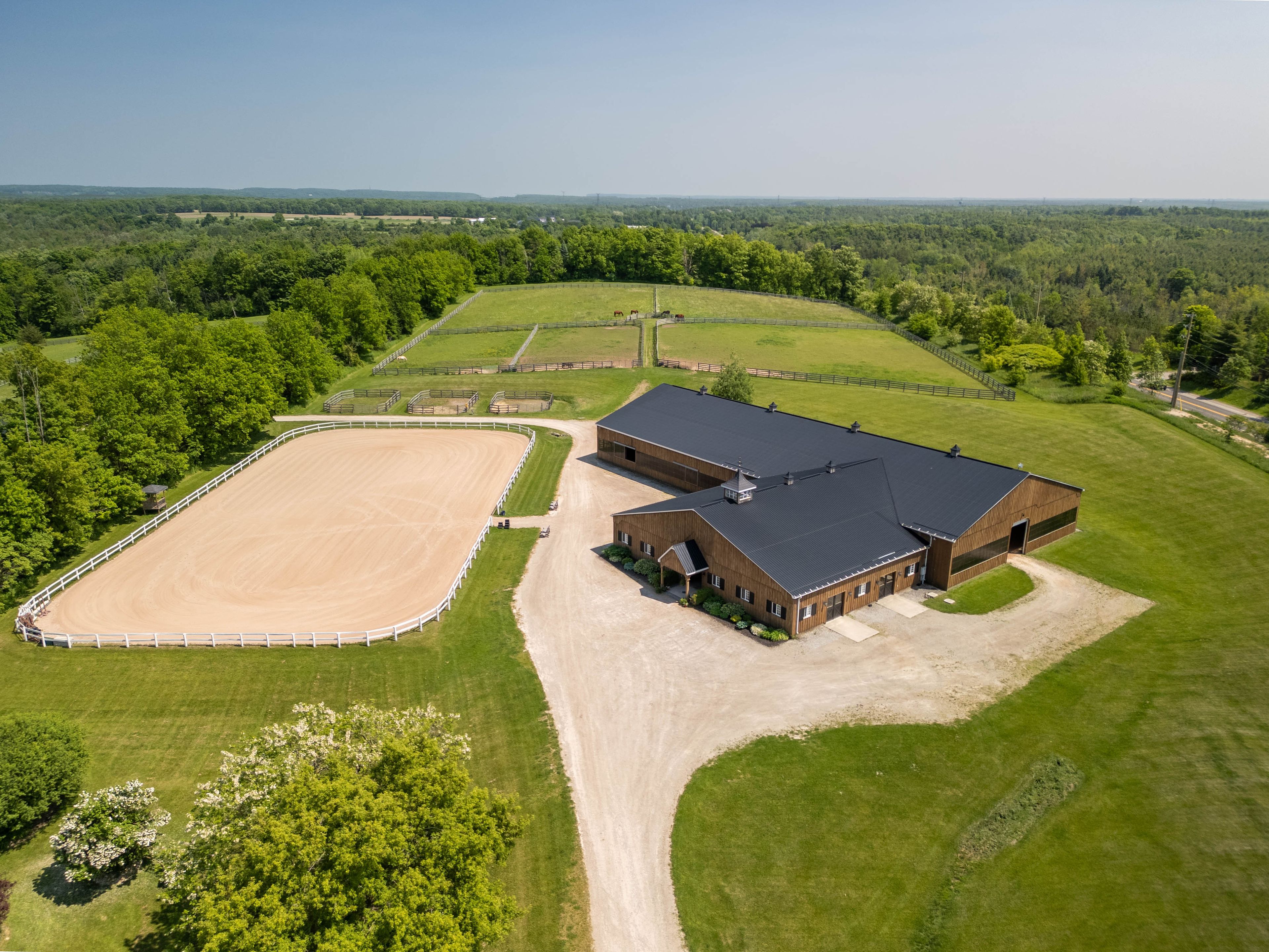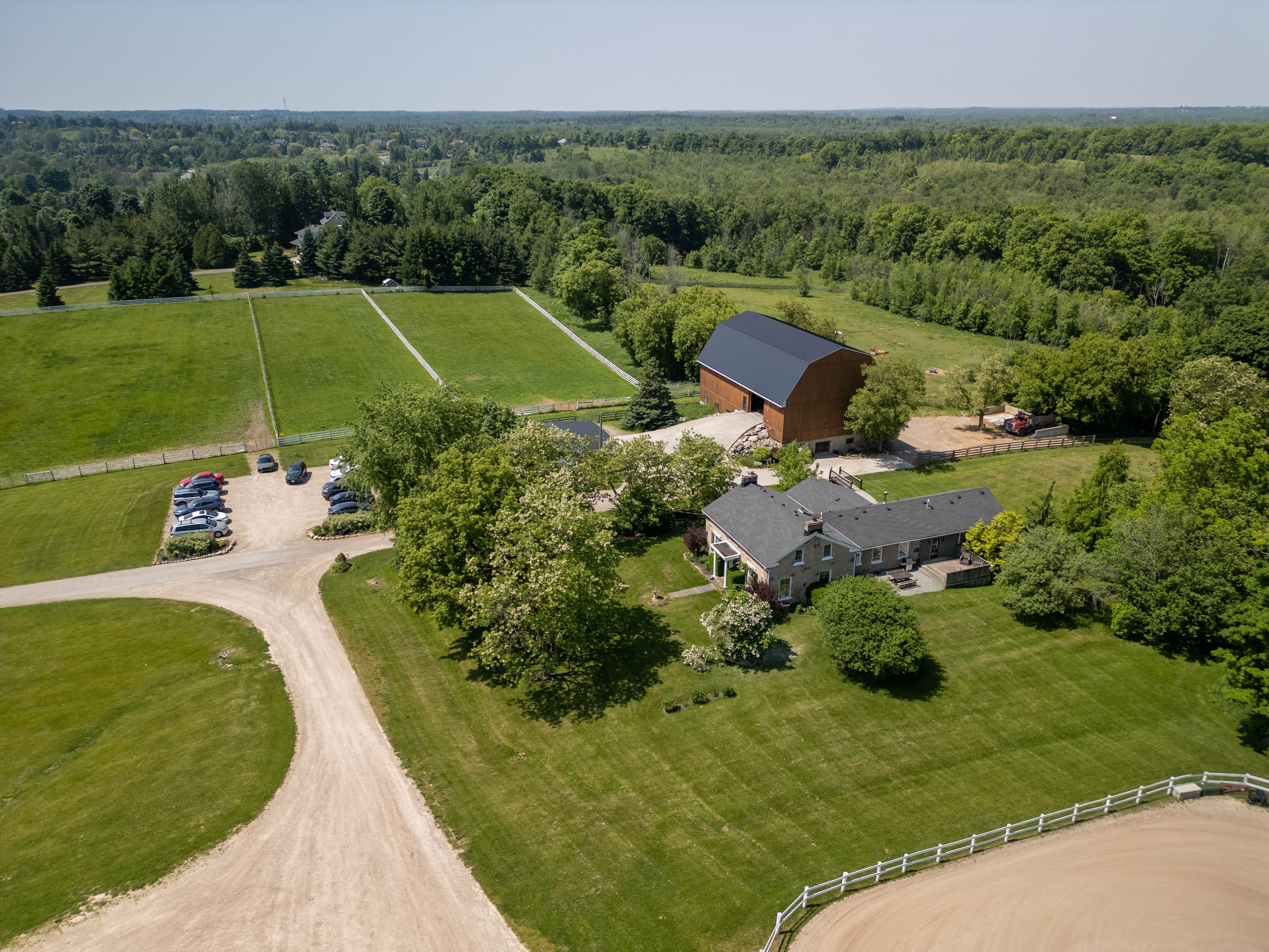 Have you been waiting for that truly special property? Attention horse loversthis spectacular 92 + acre estate just outside the village of campbellville offers everything youve dreamed of and more. At its heart is a beautifully restored 1800s stone farmhouse that blends timeless charm with thoughtful modern updates. The home features a bright sunroom and a spacious main-floor primary bedroom wrapped in windows offering stunning views in every direction. The walk-out basement provides a fully self-contained living space with its own kitchen and bathroomperfect for in-laws, guests, or staff. The equestrian facilities are second to none, with two exceptional barns. The top barn includes 10 large box stalls, a grooming stall, wash stall, radiant floor heated tack room, feed room, viewing lounge and bathroom, on-site laundry, fly maintenance system, and heated main barn. The massive indoor arena (180 x 80) features high-quality, dust-free ggt footing ideal for year-round training. The bank barn offers an additional 10 large box stalls, a foaling stall, high ceilings, a wash stall, a radiant heated tack room, a feed room, a bathroom, laundry, and a spacious loft for hay storage. Outdoors, you'll find a large sand ring with excellent drainage, multiple paddocks with four-rail oak fencing, water and electricity to each paddock for trough, heater , and several individual or recovery paddocks. The property also includes an automatic front security gate, beautifully manicured grounds, extensive riding trails, and a crystal-clear artesian well supplying endless water. Natural gas services the property, and 20 acres are currently rented for crops at the rear of the lot. A large detached garage with three overhead doors includes one heated bay with a lift ideal for tractor or equipment storage and there's plenty of parking throughout. Located 30 min to pearson airport and 5 min to the 401, this location will be a steadfast investment for any purchaser.
