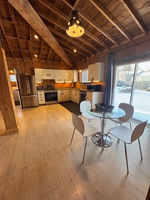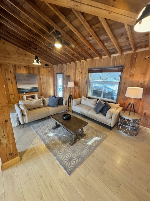 • Charming wood-beamed bungalow just steps from the lake and private beach.