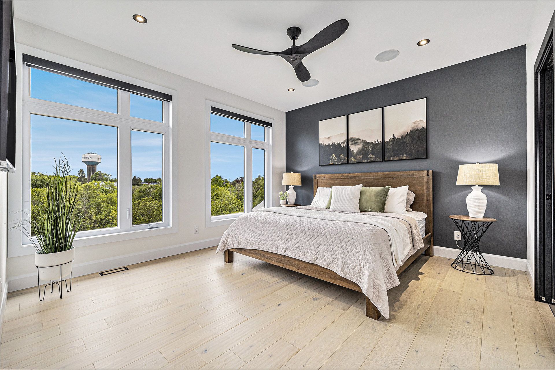 In the heart of embrun this turnkey, stylish custom-built smart home features 2 bedroom + den, 2. 5 bath home with a south facing view overlooking the castor river. It offers 2635 sq. Ft. Of above-ground living space and is truly move-in ready with upgrades and high-end finishes throughout! Step inside and head upstairs to 9-foot ceilings that enhance the bright and airy living room space leading to upper composite deck over looking the river. The stylish modern kitchen features premium dekton countertops + backsplash, a large breakfast bar island, ample cabinetry, quality appliances, upgraded lighting, and a hidden walk-in pantry with built-in wet bar area - perfect for entertaining. The spacious primary suite boasts an open concept walk-in closet and a impressive spa-inspired ensuite with his and hers rain-shower heads, wall jets + a freestanding tub. A generously sized second bedroom is complimented by a stylish 4 pc bathroom. Engineered hardwood flooring runs throughout, with tile in all wet areas. The main level offers 10 ft ceilings and even more living space; including a large rec. Room (currently used as a gym) with endless potential (including an at home business), a convenient 2 pc bath, plenty of storage and direct access to the backyard (w/ no rear neighbours!) where you can enjoy peaceful views of the river, garden or just relax! Additional features include a heated (in floor radiant) fully finished heated oversized double garage and main floor, integrated sounds system/speakers and smart home system. Close proximity to schools, parks, trails, restaurants, grocery stores and all of the local embrun amenities has to offer. Don't miss this one!