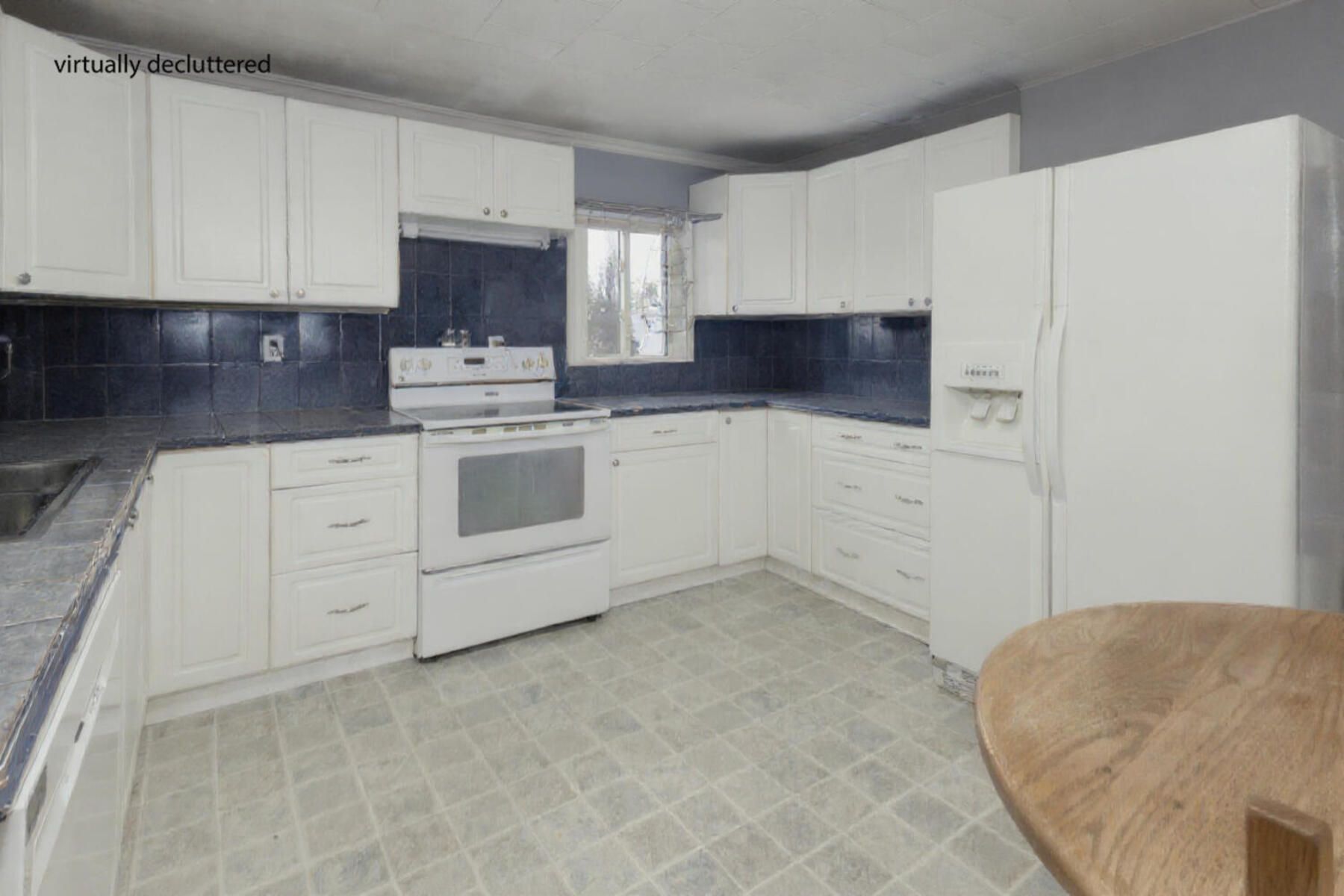 • Large country kitchen with updated cupboards for cooking enthusiasts.