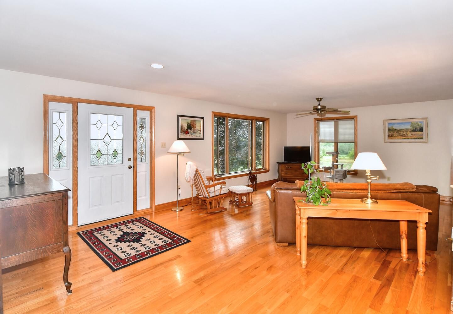 Welcome to private country living high on the hill on your very own 3. 13 acre setting. This all brick 3 bedroom, 2 bathroom, raised bungalow is the dream location just south of peterborough. This beautiful home is nestled next to your very own forest overlooking your own field to the south-west. Beautiful vistas await as you watch nature abound in this quiet setting south of county rd 2. Beautiful oak hardwood floors and trim throughout the main level provide that special country feel especially in the large country kitchen. The main level has an open concept living room, kitchen and dining room. A quaint outside balcony from the main foyer provides a morning getaway to watch nature and enjoy the stunning morning sunrise. The large 30 ft x 30 ft two door garage has a 12 foot ceiling for storage and a workshop. Both insulated garage doors are new (2024) and come with remotes. The large 50 ft x 14 ft family room has large bright windows providing natural light throughout the lower level of the home. There is also a full built-in book shelf to the west end of this family room. Just imagine spending cold winter nights in the family room heated by the wood stove . The main level has been freshly painted providing a fresh new neutral look to the home. The home is provided with bell high speed satellite internet. Time to change your life for the better.