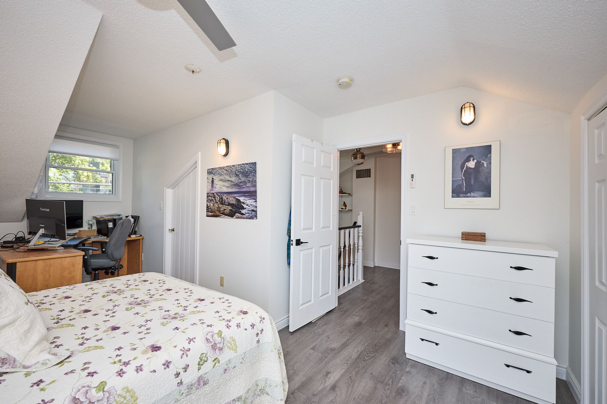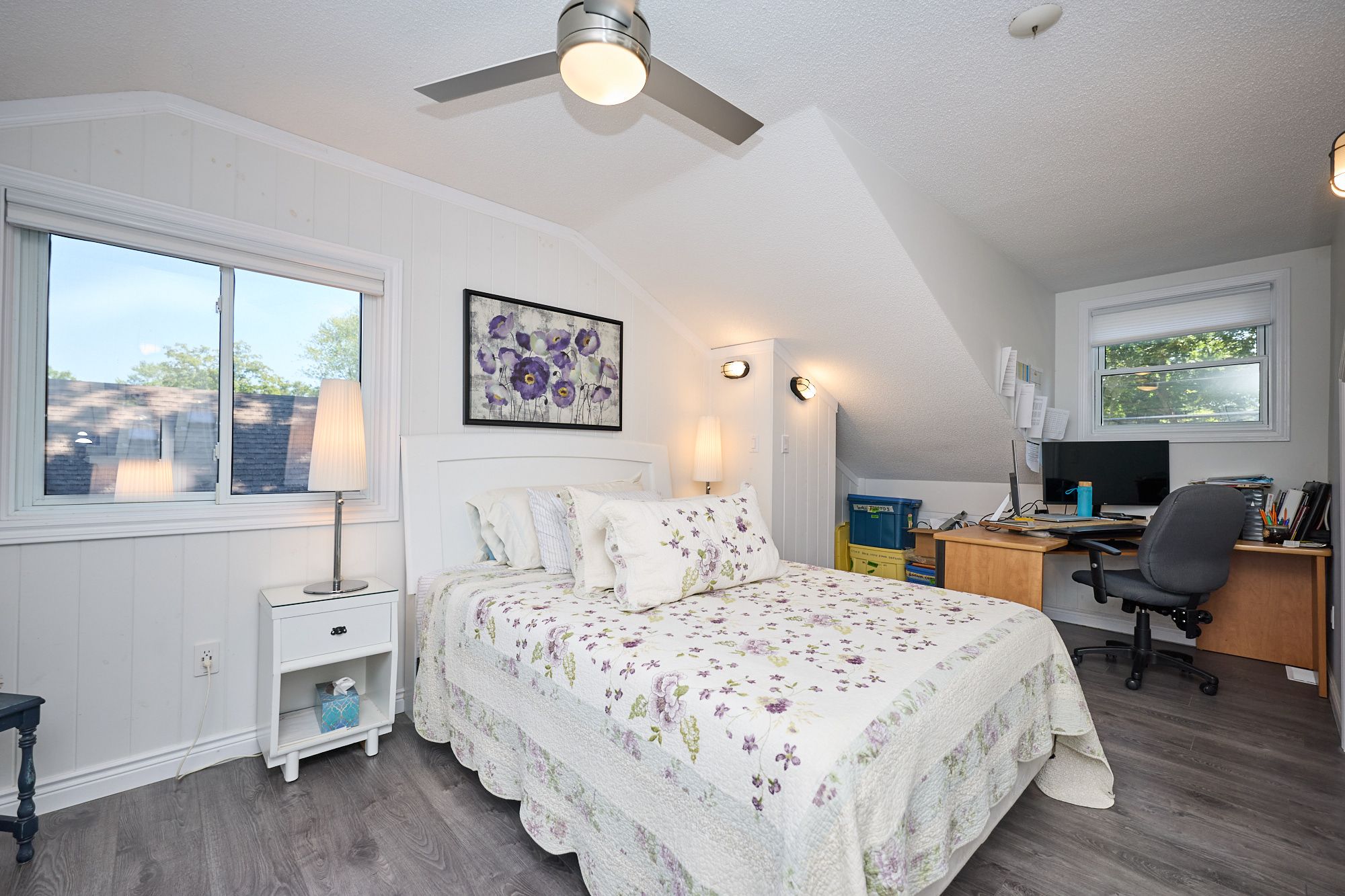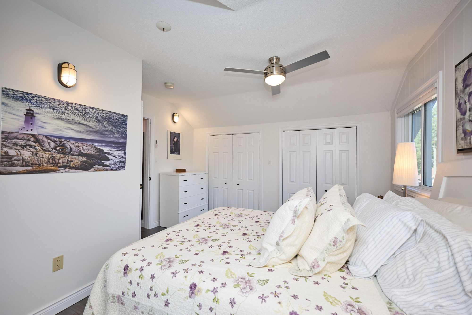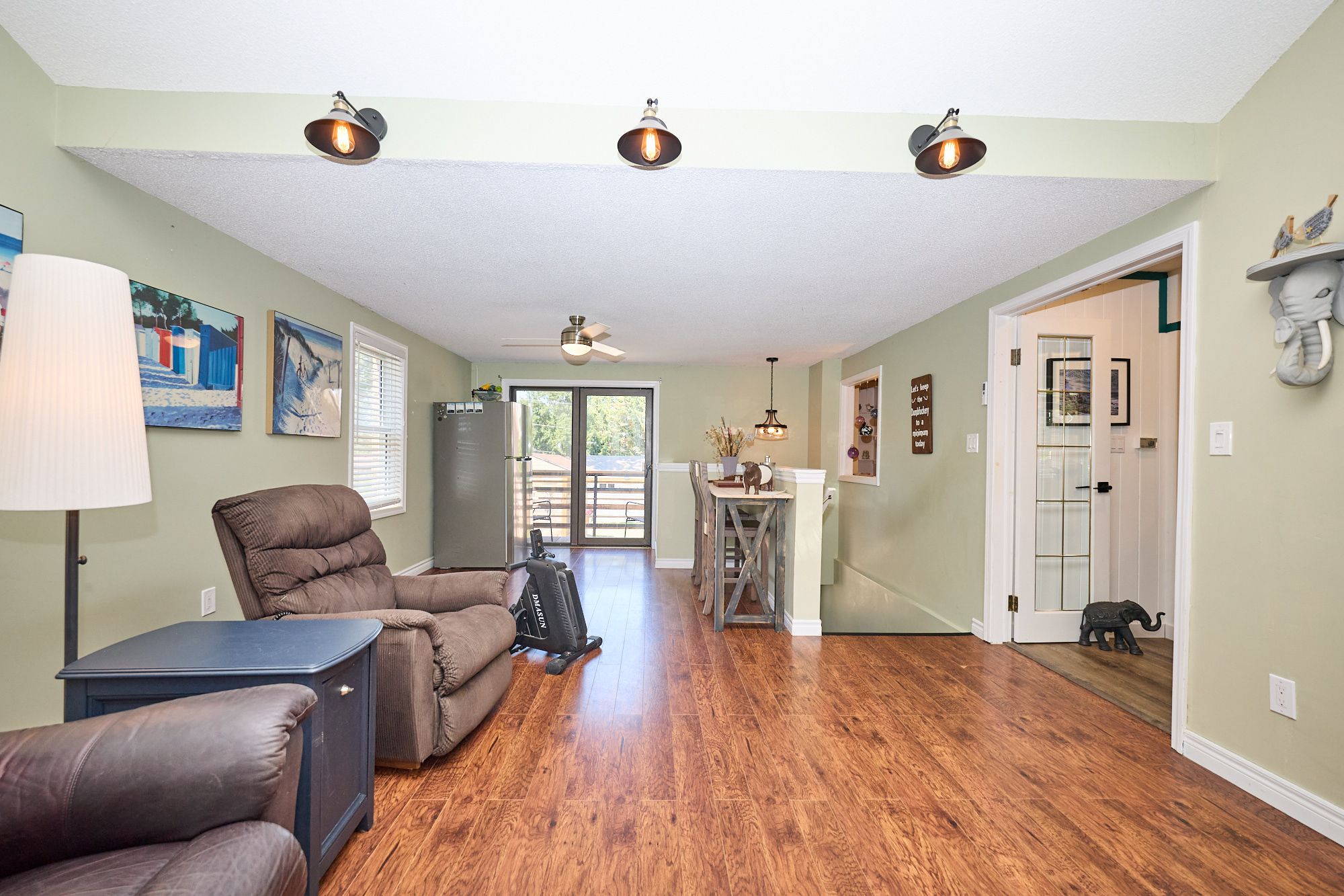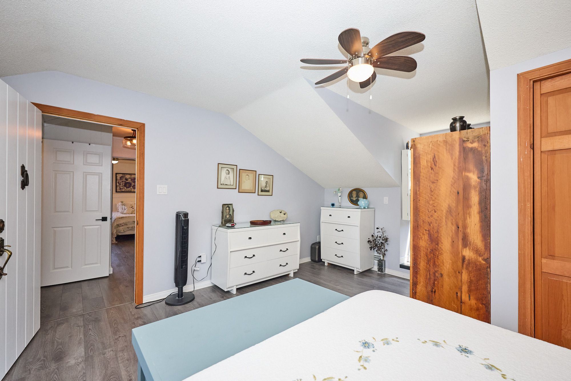 A price that gets attention. A location that speaks for itself. An incredible opportunity with deeded lake access! This fully updated home offers over 1,930 square feet of living space, a detached garage, two large sheds, and two separate parking areas, one spot at the front and parking for four at the back, in addition to the single-car garage. The property extends all the way to woodland drive. Inside, you'll find an open-concept layout with bedrooms on both the main and upper levels. The stunning white kitchen features granite countertops, a massive island perfect for meal prep, and plenty of cabinetry and drawers for storage. The living room includes a cozy gas fireplace and a grand staircase leading to the upper floor. The main floor also features a family room with a newly rebuilt private balcony, a bedroom, and a fully renovated bathroom. Upstairs, you'll find two additional bedrooms and another updated bathroom (excluding the shower). This home has seen numerous upgrades throughout, making it completely move-in ready. Improvements include an added cistern with a new front porch built to cover it, basement insulation with osb wall finishes, and an updated basement window. Additional updates feature a water softener, a hot water tank (owned), and replaced front windows. The exercise/weight room includes a dri-core subfloor for added comfort, and most lighting fixtures throughout the home have been replaced. Outdoors, you'll find a back deck with sleek glass railings and two recently updated driveways. Custom window shades have been installed on the upper floor, along with enhancements to the large family room. Please note: this property offers its own deeded access and right-of-way to the lake, adding exceptional convenience and value.