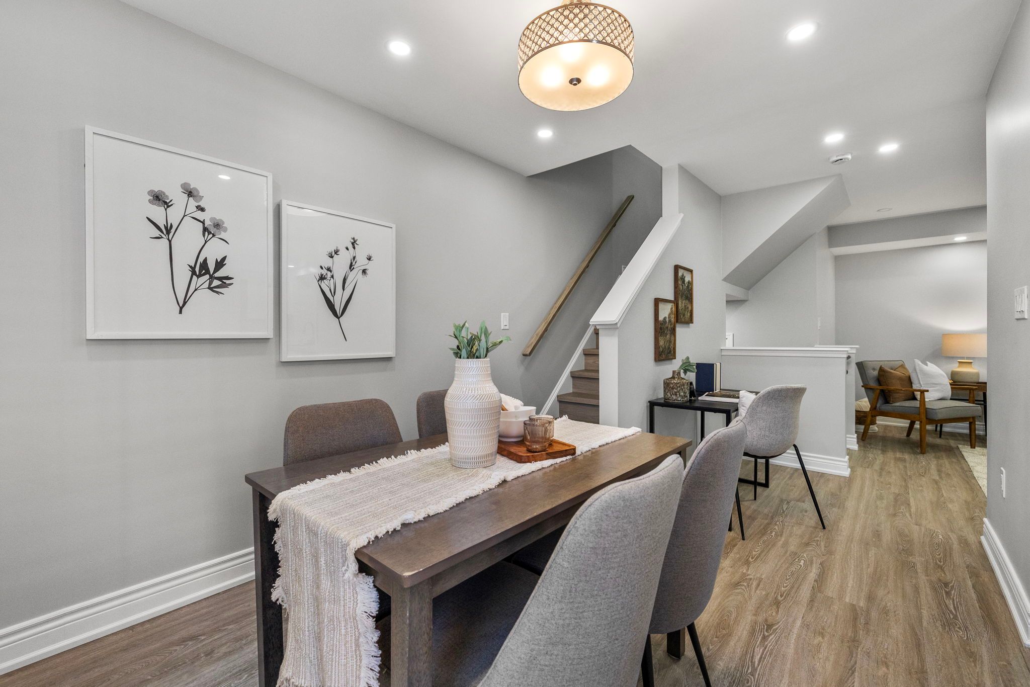 Welcome to 1058 clipper lane, pickering! This stunning freehold townhome offers 2 bedrooms, 3 bathrooms, and modern finishes throughout with no maintenance or potl fees to worry about! Built in 2018 and tastefully upgraded, this home is truly move-in ready. Enjoy new flooring, fresh paint throughout, and a bright, open-concept layout perfect for everyday living. The modern kitchen features quartz countertops, a stylish, updated backsplash, and newer stainless steel appliances. Upstairs, you'll find two spacious bedrooms, upgraded bathroom vanities, and the convenience of second-floor laundry. Step out onto your private deck off the dining room perfect for morning coffee or entertaining guests. Additional features include garage access with an opener and pot lights throughout for a warm, contemporary touch. Located minutes from toprated schools, parks, golf courses, shopping, and easy access to hwy 401 & 407, this home offers both comfort and convenience in one of pickerings most desirable neighbourhoods. Absolutely perfect for first-time home buyers or those looking to downsize!