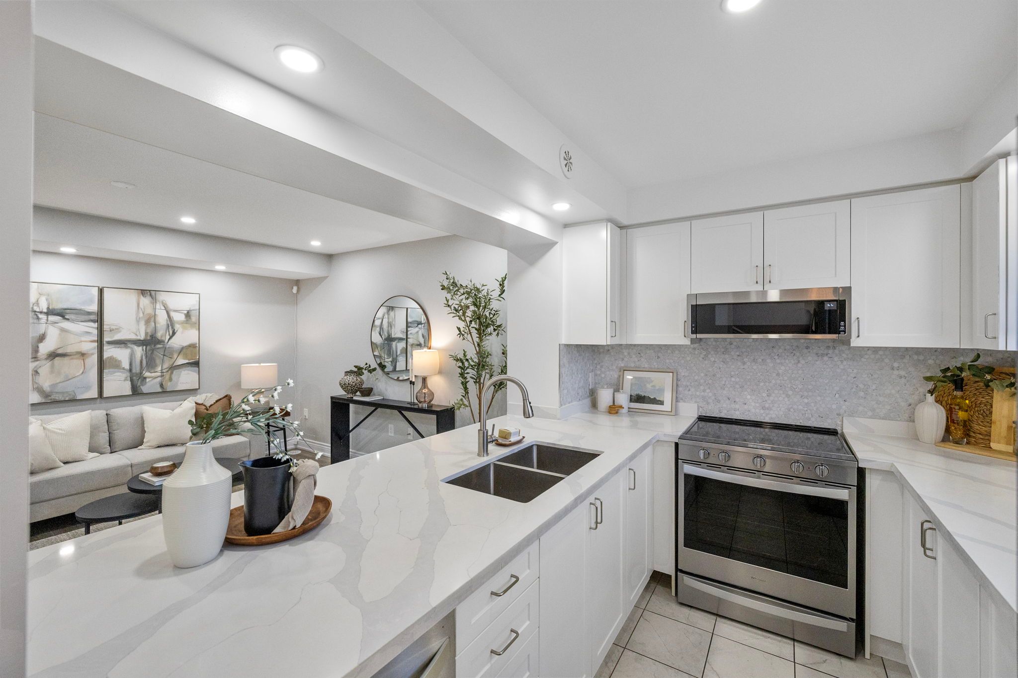 • Kitchen features quartz countertops and newer stainless steel appliances.