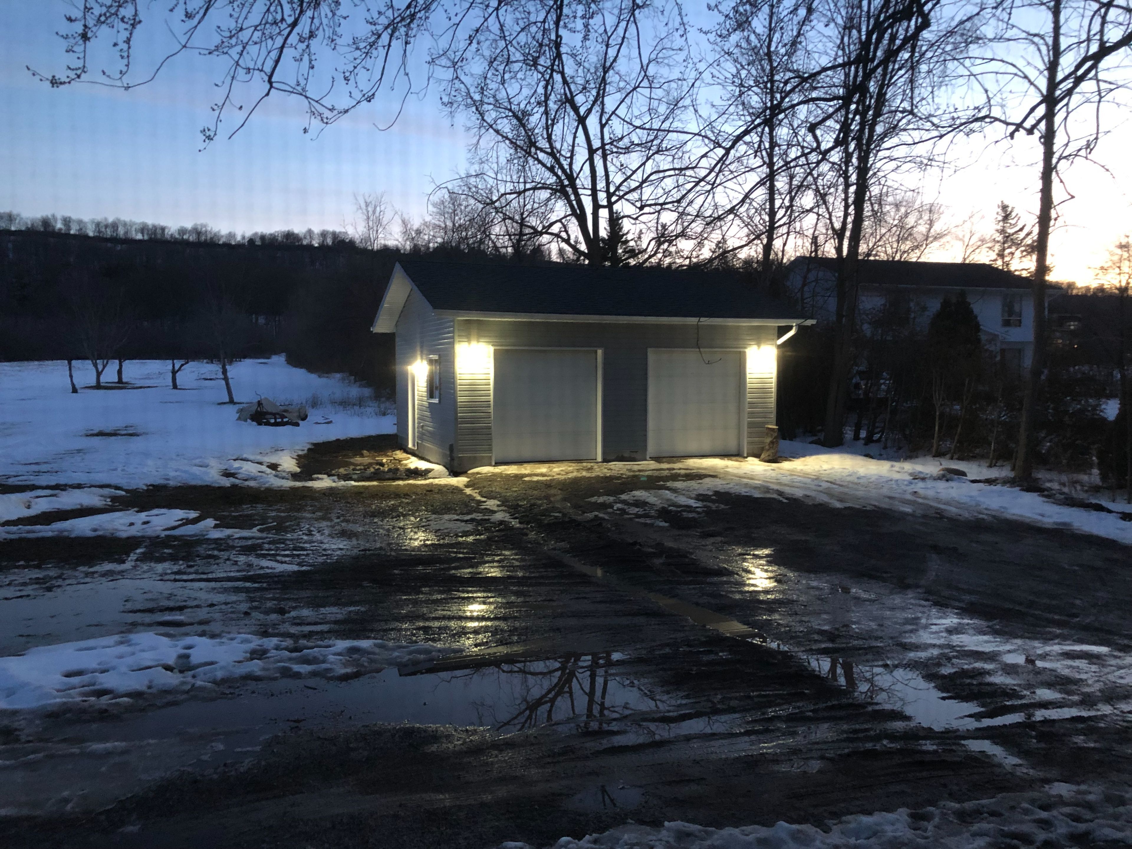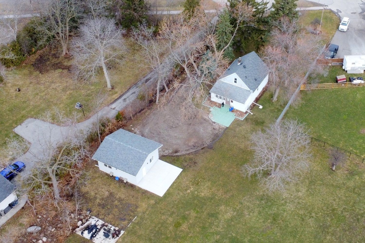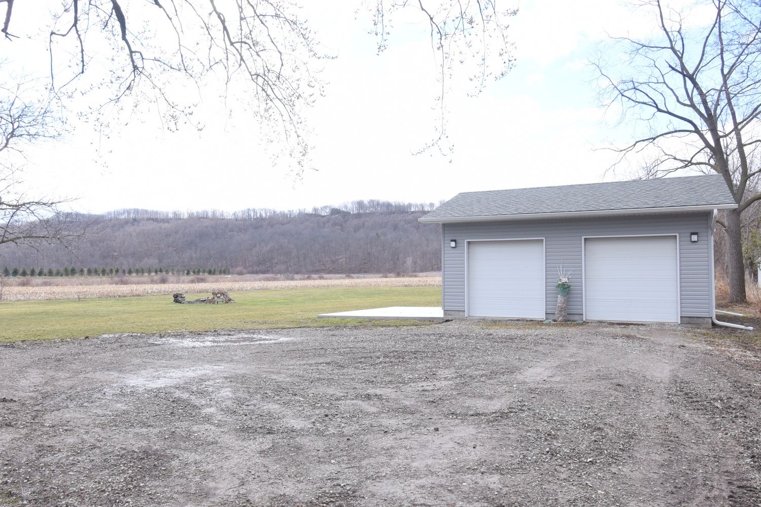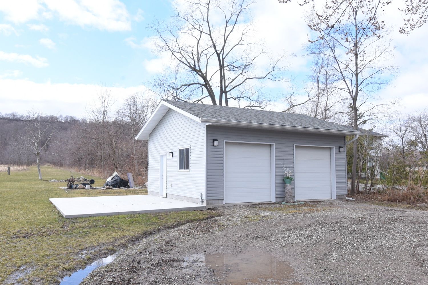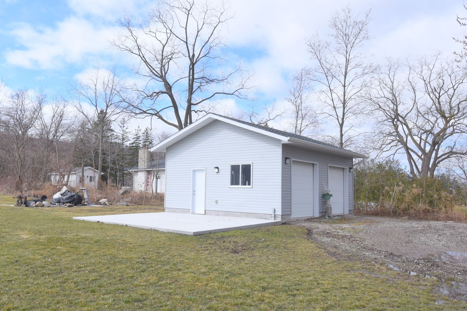 • Detached double garage with 220-amp service, perfect for vehicles or a workshop.