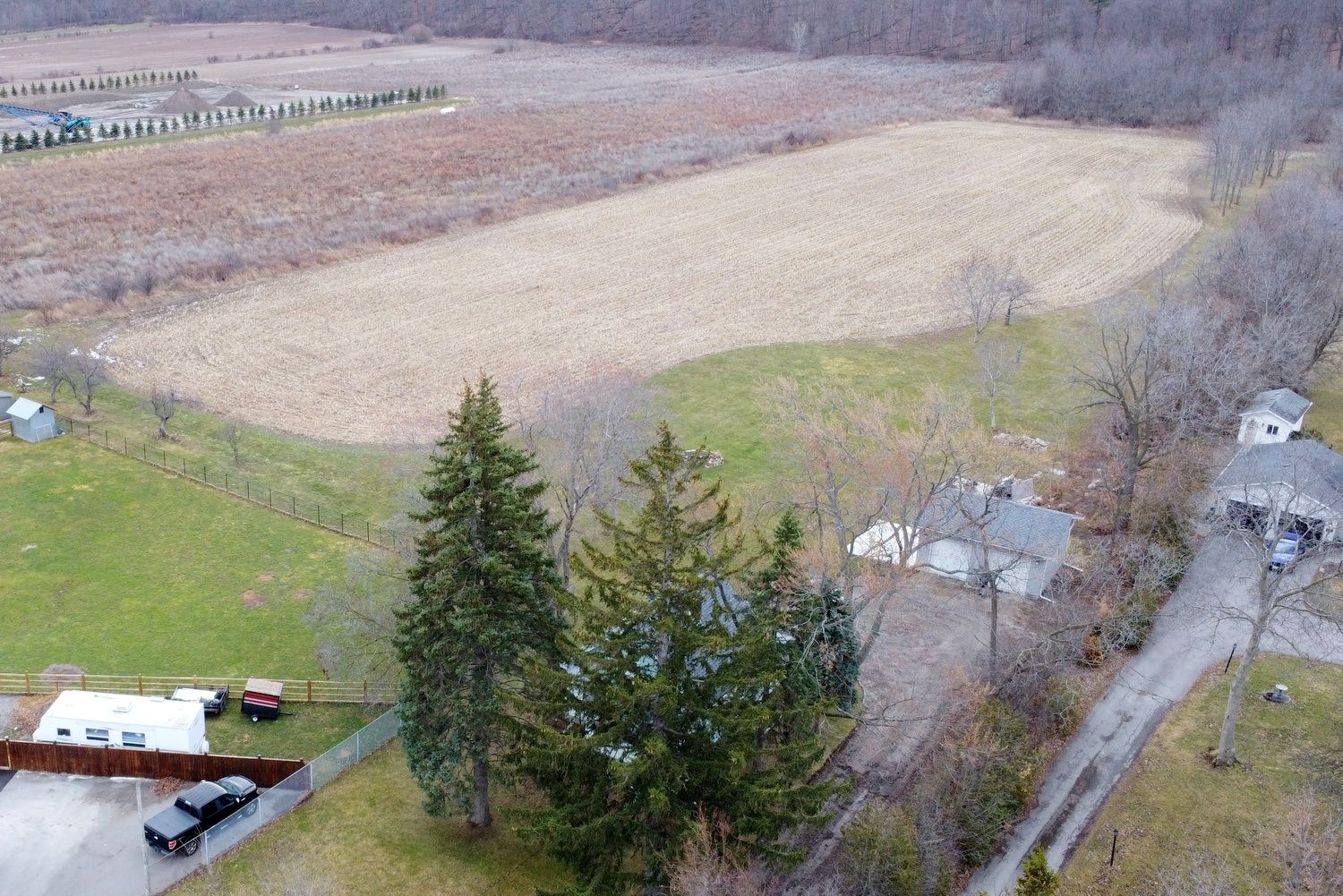 Country living within city limits - 10. 8 acres backing onto the escarpment rare opportunity to enjoy peaceful country living while staying within city limits. This exceptional 10. 8-acre property backs directly onto the escarpment and is surrounded by mature fruit trees and abundant wildlife, offering a private and picturesque setting just minutes from highways and everyday amenities. The property features a charming 1-storey home with 3 bedrooms and 1. 5 bathrooms, ideal for comfortable family living or as a residence while you plan and build your future dream home. A detached 25' x 22' double garage with its own 220-amp service, internet, and cable provides excellent space for vehicles, a workshop, or additional storage. Recent upgrades provide peace of mind and improved efficiency, including a new roof (2023) and a cement and concrete patio (2023). Major mechanical improvements completed in 2024 include a gas forced-air furnace, heat pump for heating and air conditioning, tankless water heater, and a water softener with carbon filter-all owned. The home has also benefited from spray foam insulation in the attic floor and main floor exterior walls (2020), along with some updated windows. Serviced by municipal water and sewers, this unique property combines rural charm with modern conveniences. With two road frontages on highway 8 and lacoma drive, it offers excellent accessibility and future potential. Whether you're looking to enjoy the existing home, build your custom dream residence, or invest in a rare escarpment-side property, this is a truly special opportunity to create your ideal lifestyle. Country tranquility with city convenience-don't miss your chance to own this remarkable property.