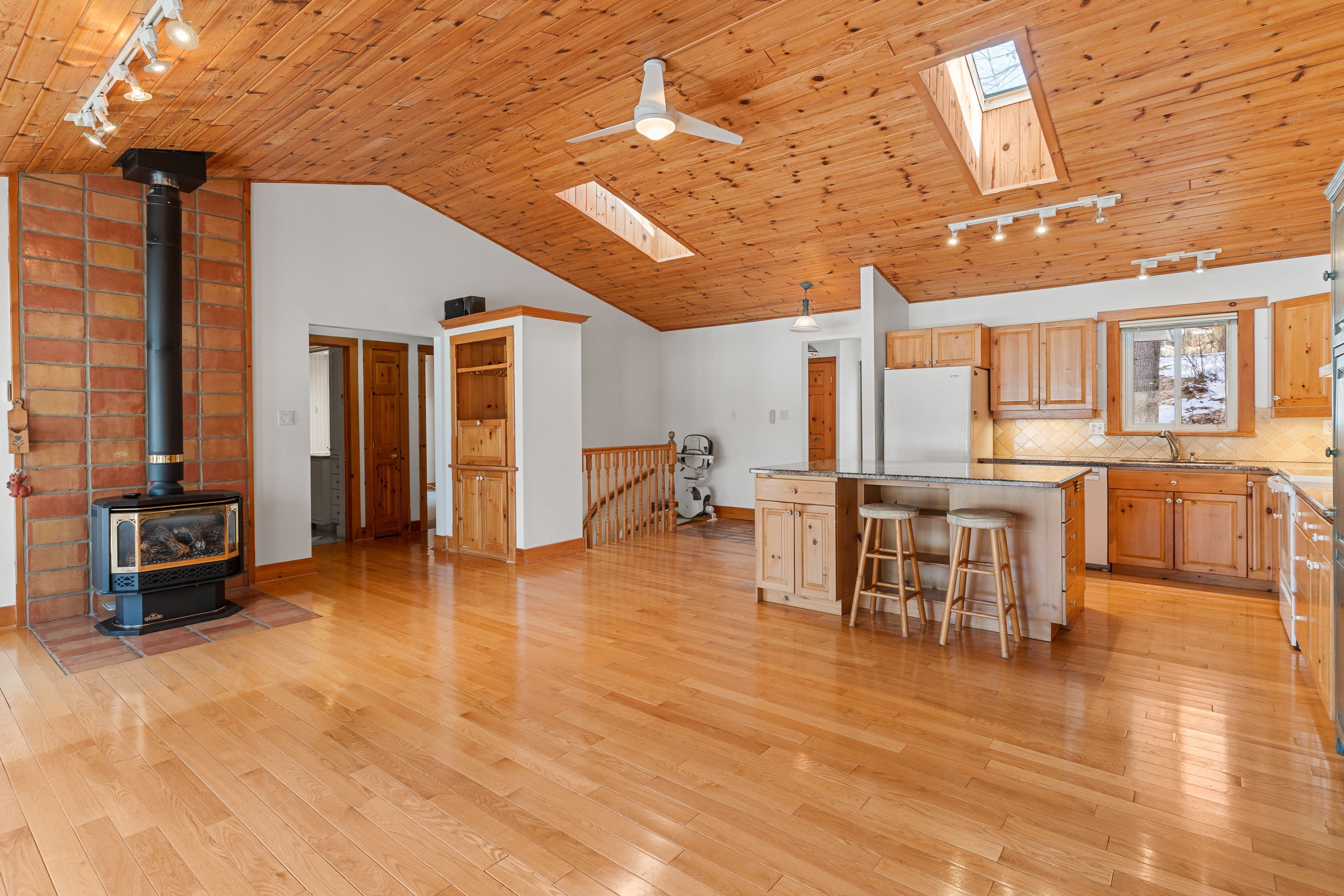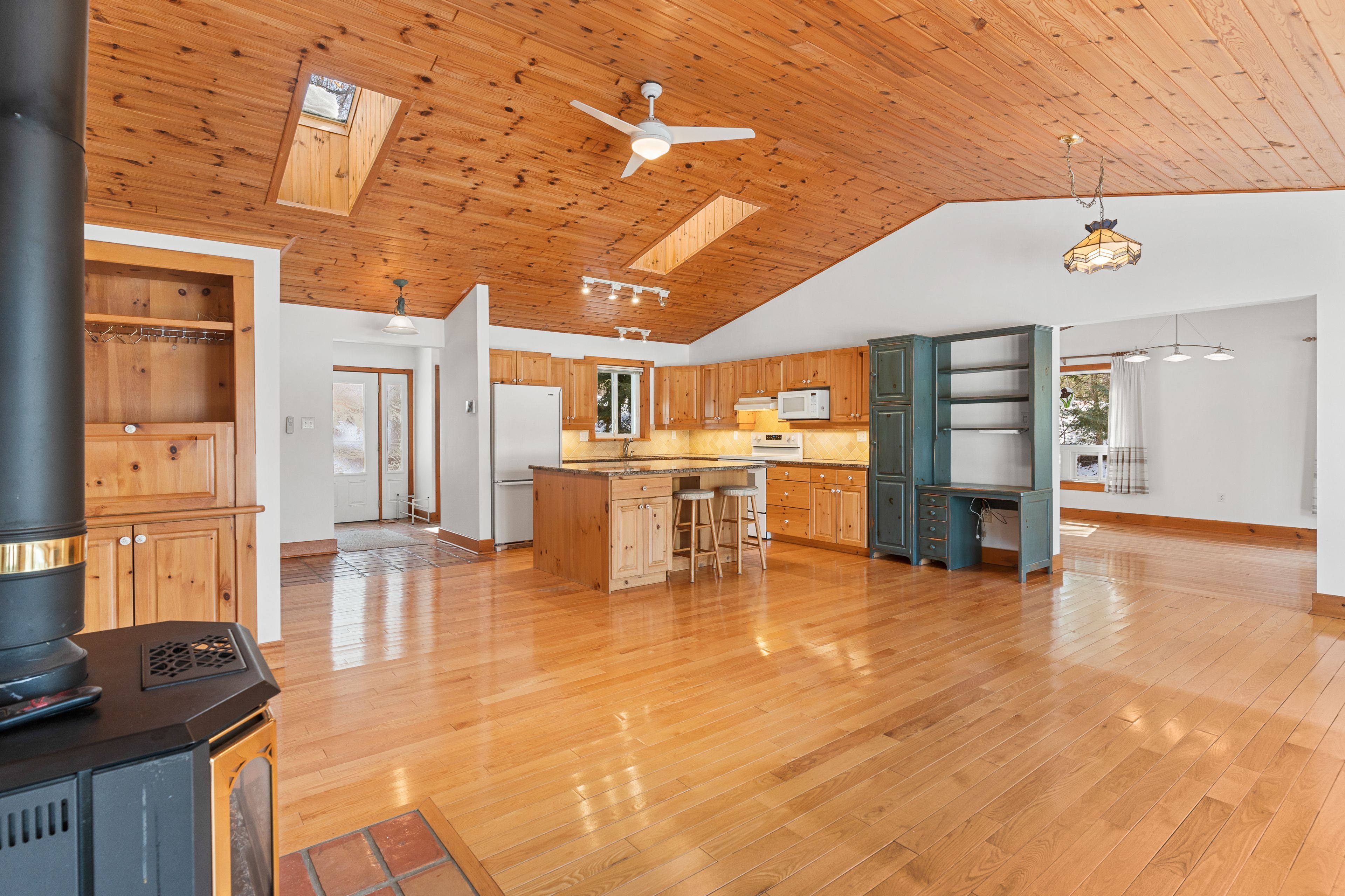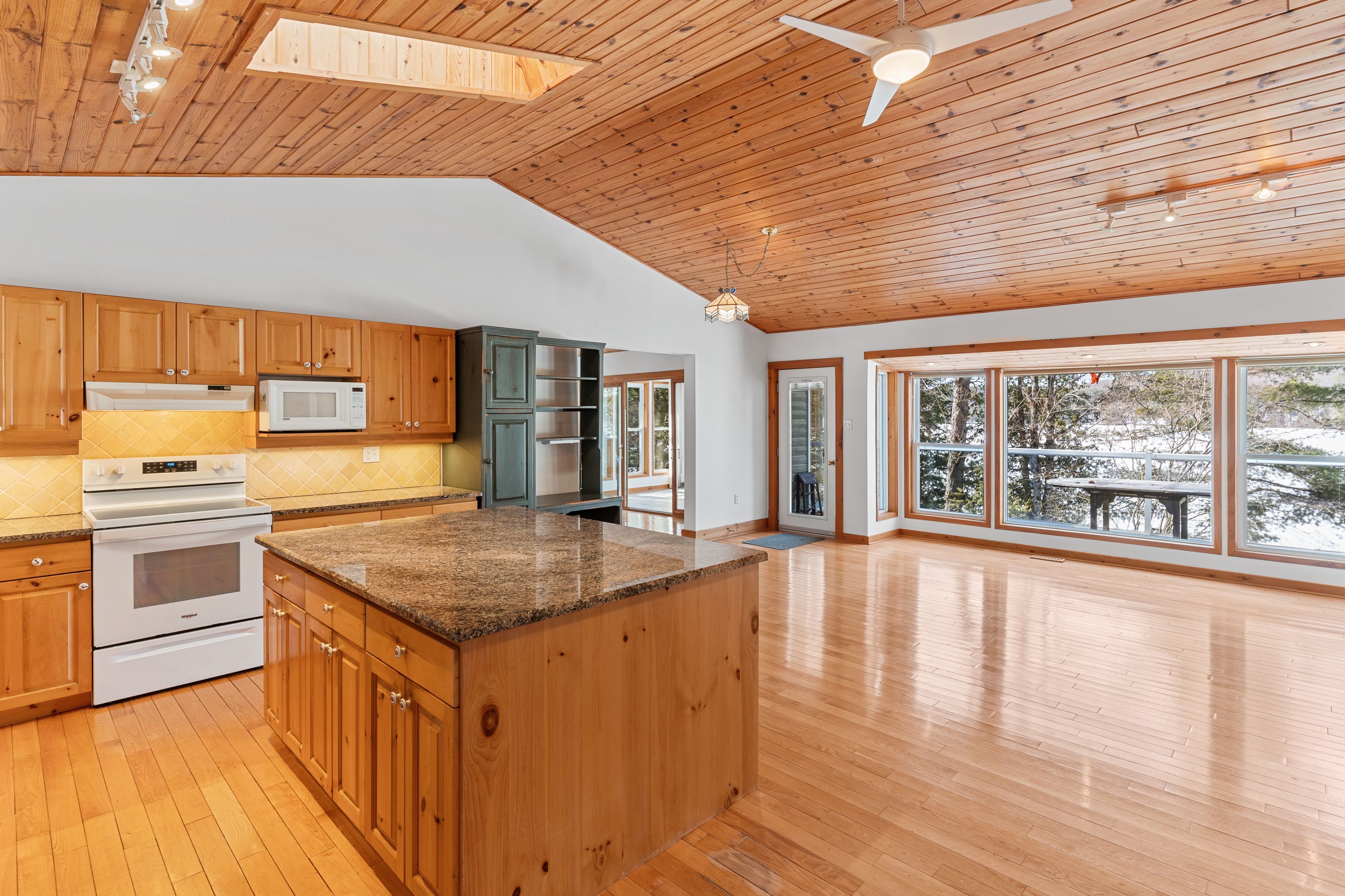 • Spacious open concept with lake views, skylights, and cathedral ceilings.