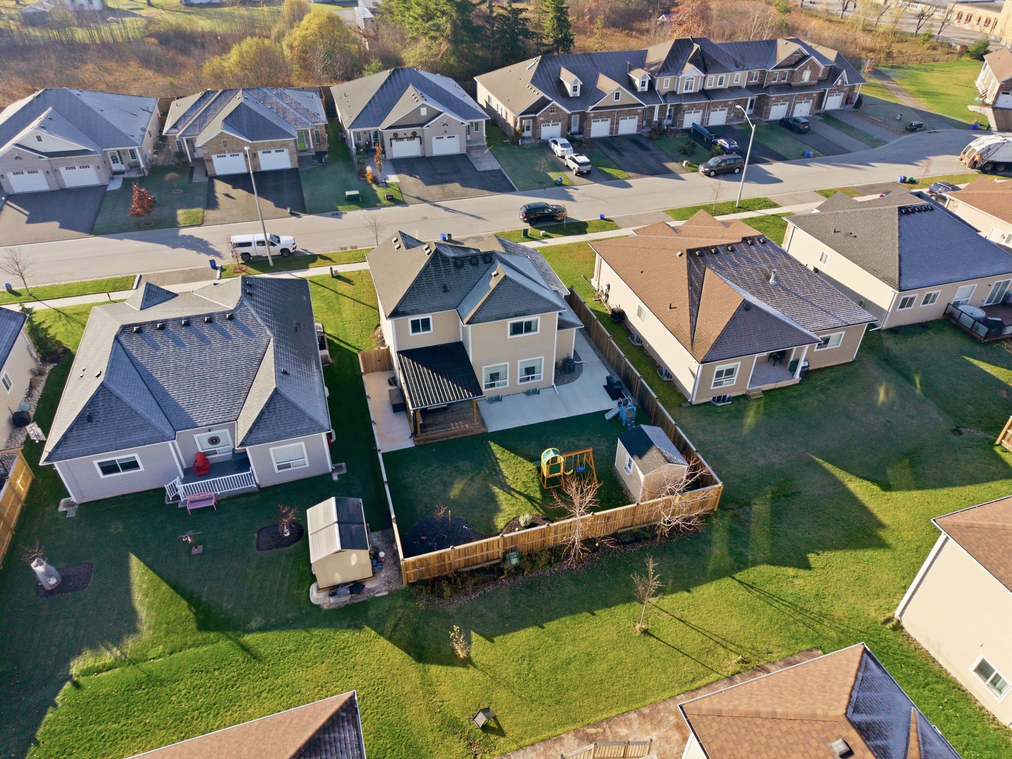 Welcome to 1058 meadowood st, located in a quiet subdivision. A well kept very clean 2 storey home with aprox 2600 sqft of finished living area, main floor 9ft ceilings, 2 car attached garage with inside entry. Over the last couple years there have been some upgrades here are a few, such as basement finished including 3 pc bath, and laundry room, custom blinds, upgraded light fixtures, outside covered deck with concrete patio and walk way to front of house, custom made shed , fully fenced yard. The neighborhood is 8 years old with a park . Home consist of 3 bedrooms 2. 5 bathrooms, kitchen with backsplash and island, living rm kitchen, and dining rm are open concept. Patio door leads out to covered deck for entertaining no matter what the weather. Just a few min to buffalo, and 20 min to niagara falls. Close to schools, shopping, restaurants, and beaches. Easy, to show, you wont be disappointed.