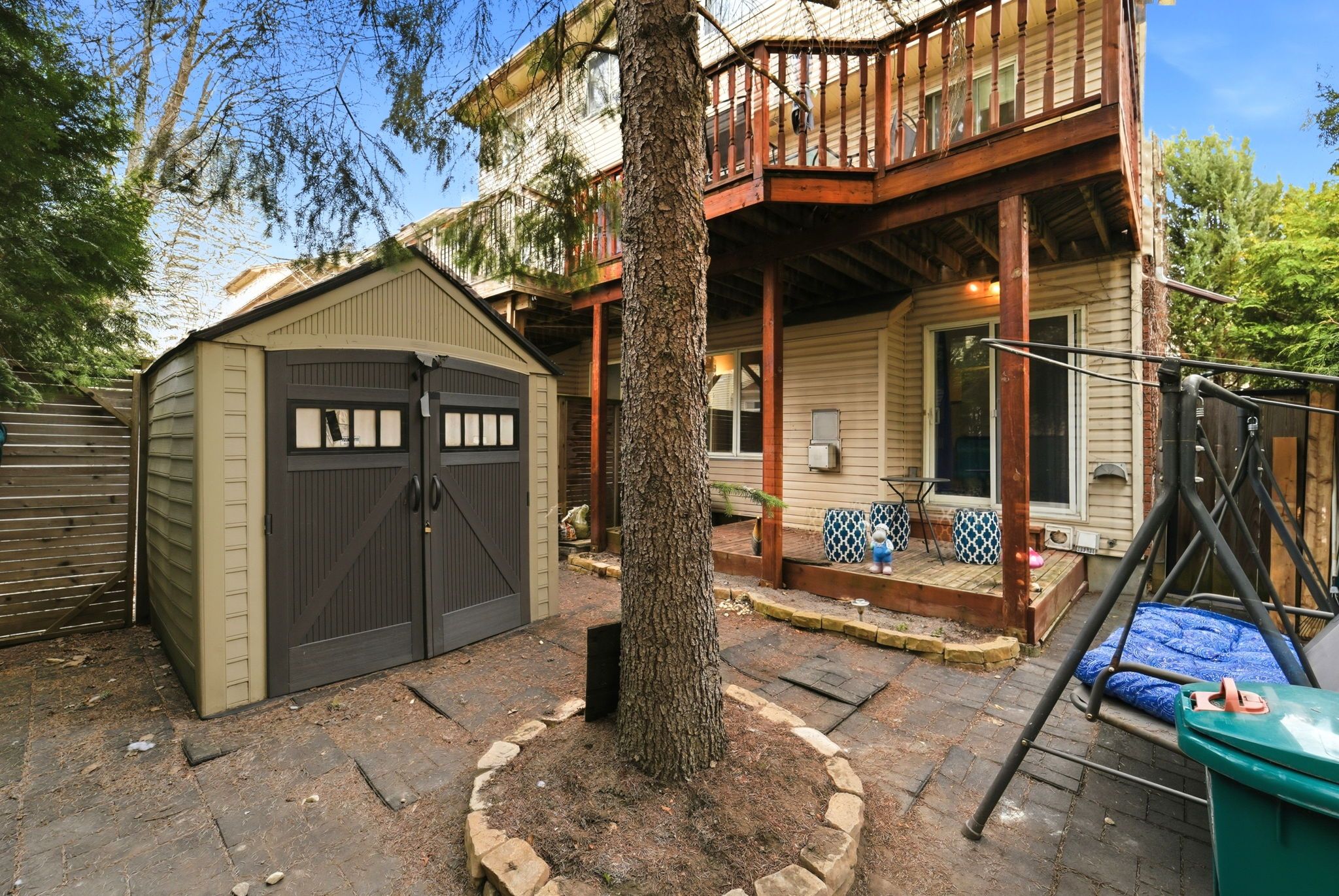 • Private, tree-lined backyard perfect for outdoor relaxation.
