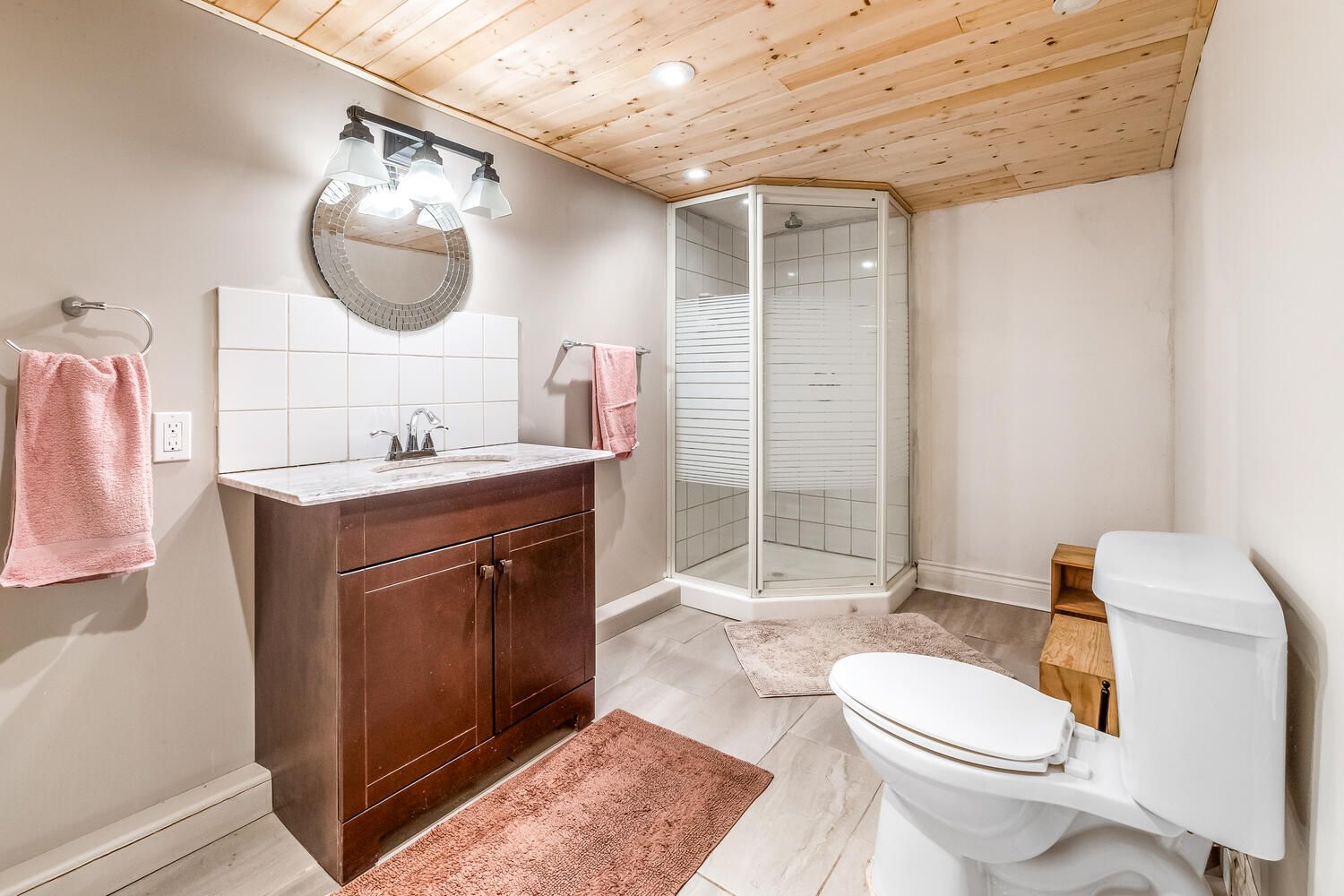 • Finished basement with extra living space, bedroom, and full bathroom.