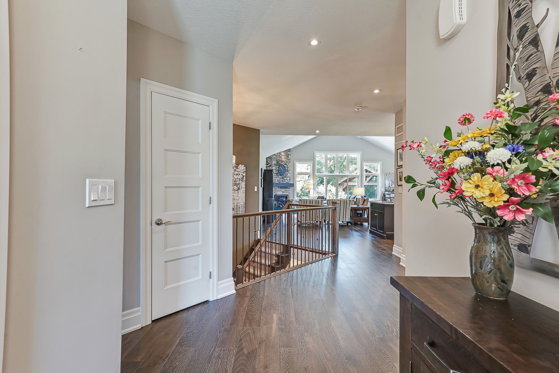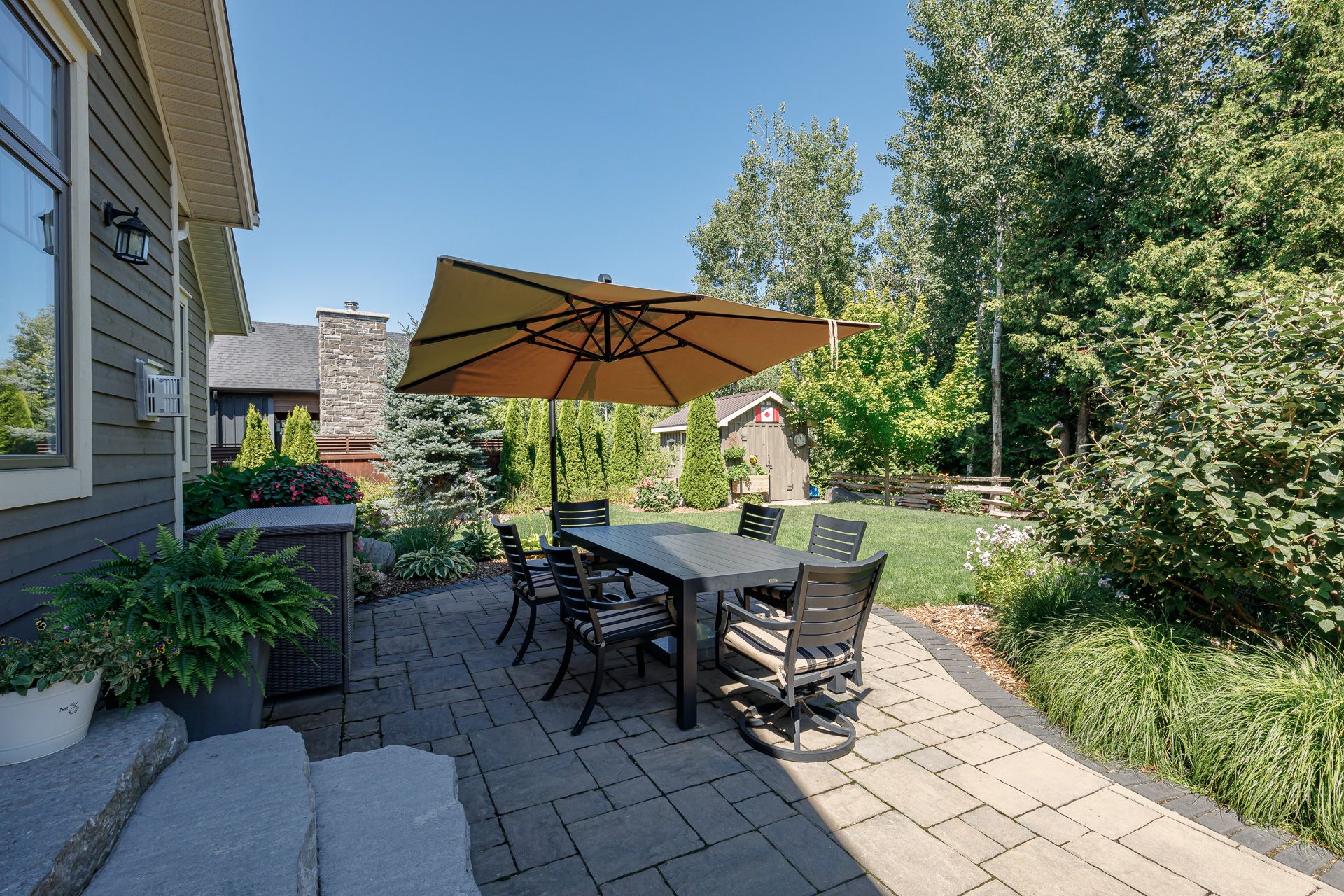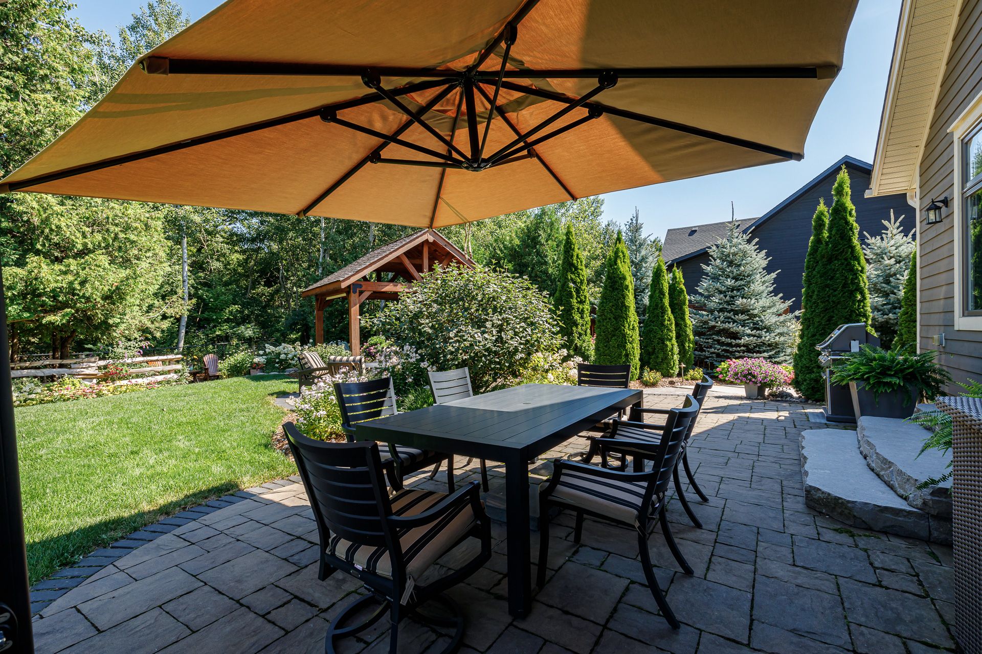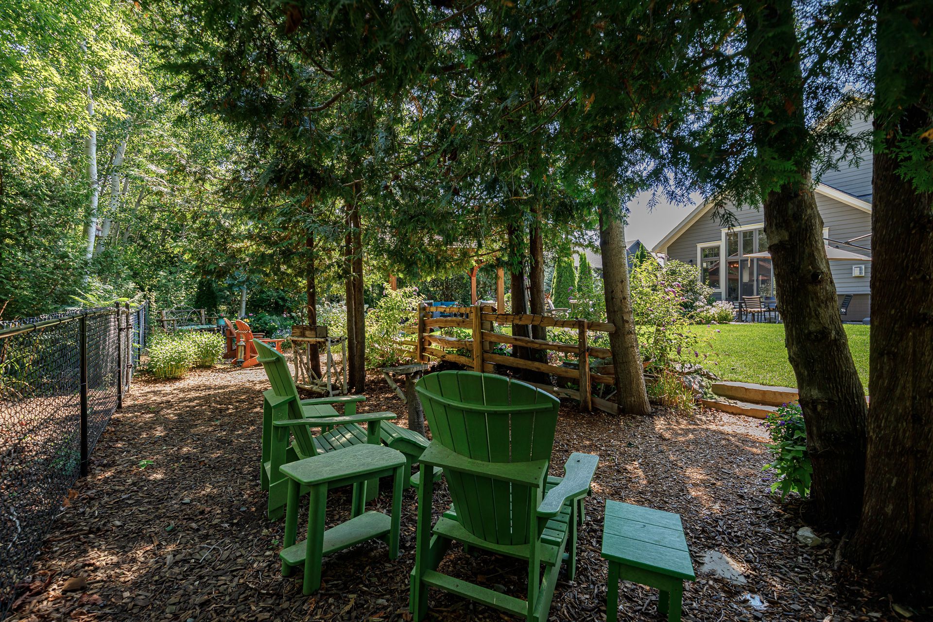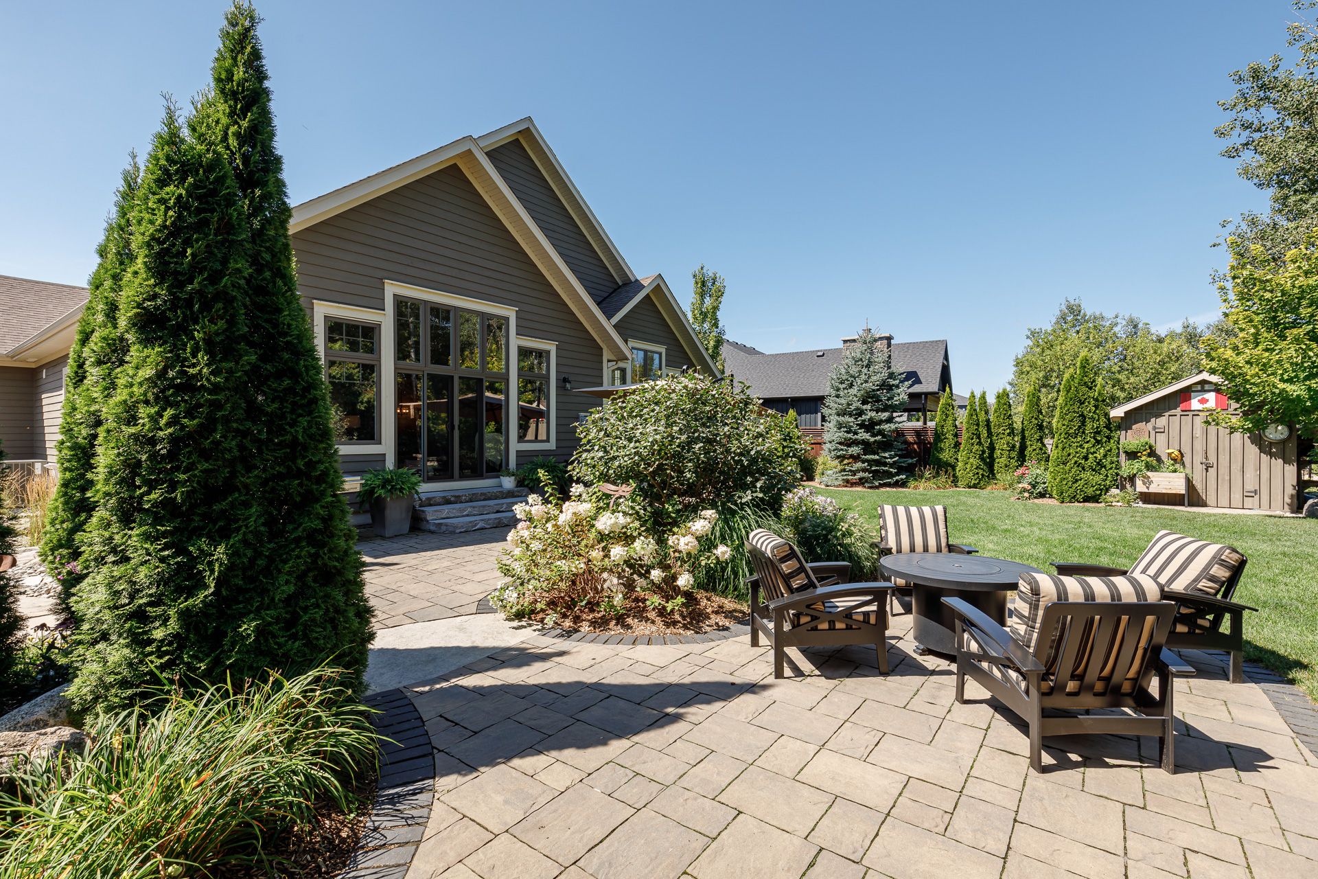 106 high bluff lane is located on one of the most sought after streets in thornbury. This 2+2 bedroom bungalow with a 3-car garage, and over 3600sqft of living space, is on a private, fully fenced, park-like, 1/4 acre lot backing onto greenspace and a ravine. It is a beautifully landscaped property with close to $200k spent on perennial gardens, mature trees, inground sprinkler system, low voltage landscape lighting, interlock driveway that can easily accommodate 5 cars, interlock patios, and a 12' x 14' pavilion. There is also a garden shed with separate electrical panel. The large front porch is a great place to sit and relax. The main floor consists of engineered hardwood floors and has a large open plan chef's dream kitchen with bosch appliances - 5 burner gas cooktop, built-in range µwave/convection oven, french 3-door fridge, dishwasher and a marvel beverage fridge. There is a cathedral ceiling in the dining room and great room with floor to ceiling stone gas fireplace and huge windows & sliding door looking out to the backyard. A large primary bedroom has an ensuite with heated floors and walk in closet. A front bedroom/office completes the main floor. The basement boasts 8. 5' ceilings with large, upgraded windows and the ultimate man cave with custom bar and a gas wood stove that keeps the basement comfortable all year long. There is also huge craft studio that could easily become a games room or gym space. 2 more nice sized bedrooms and a bathroom with heated floor complete the basement area. All the closets have been custom designed for the ultimate in storage solutions. Custom built-ins in the garage and a generac generator are just some of the extra features of this property. You will have a 2-minute walk to access the georgian trail, a 5-minute walk to goldsmith's farm market, a 20-minute walk to foodland & lcbo and a 30-minute walk to town to enjoy any of the many coffee shops and restaurants