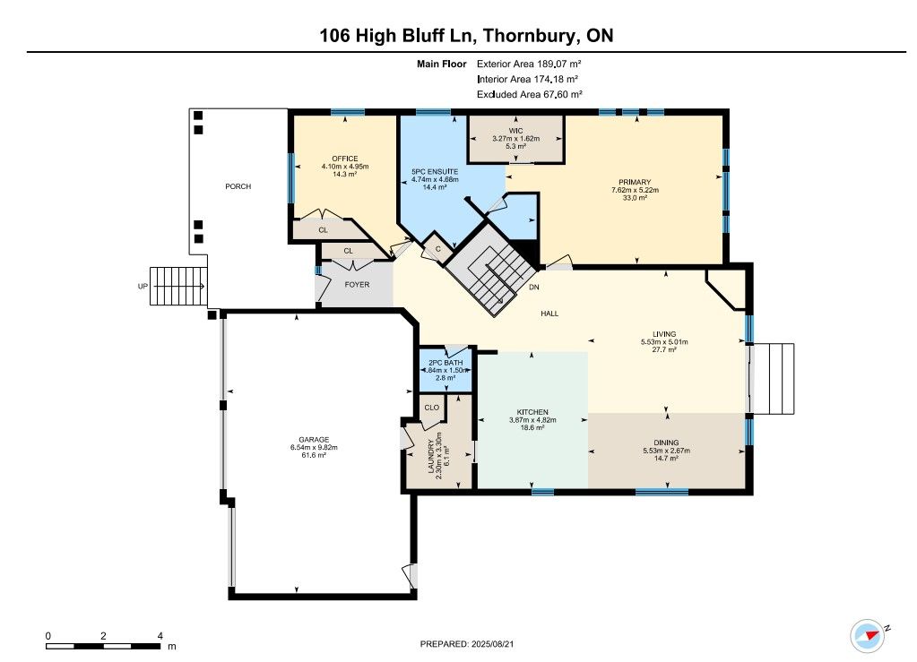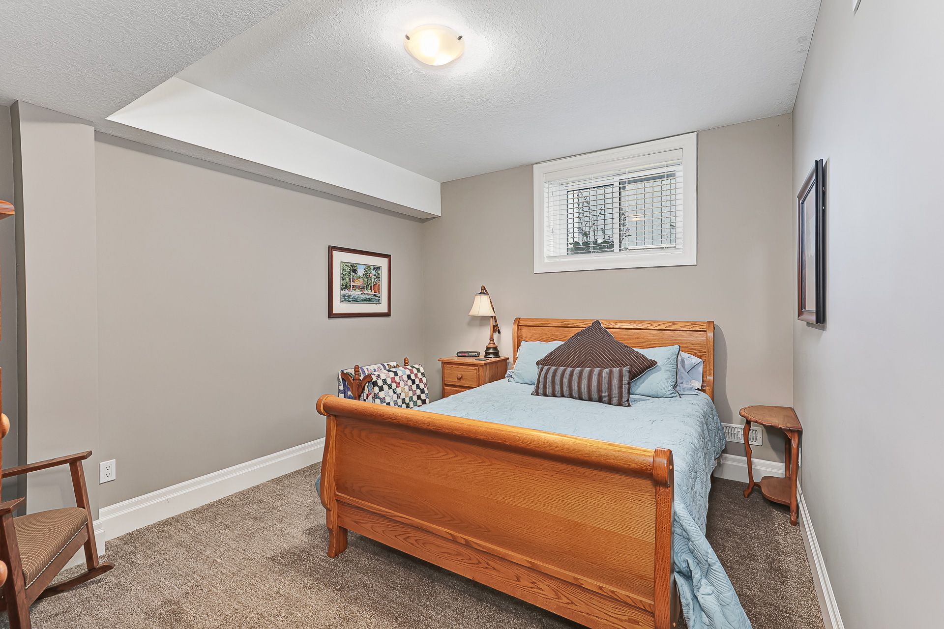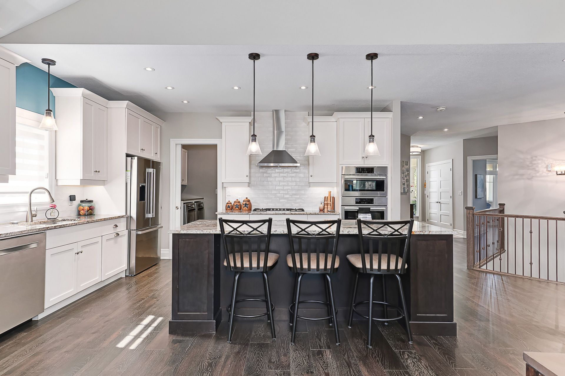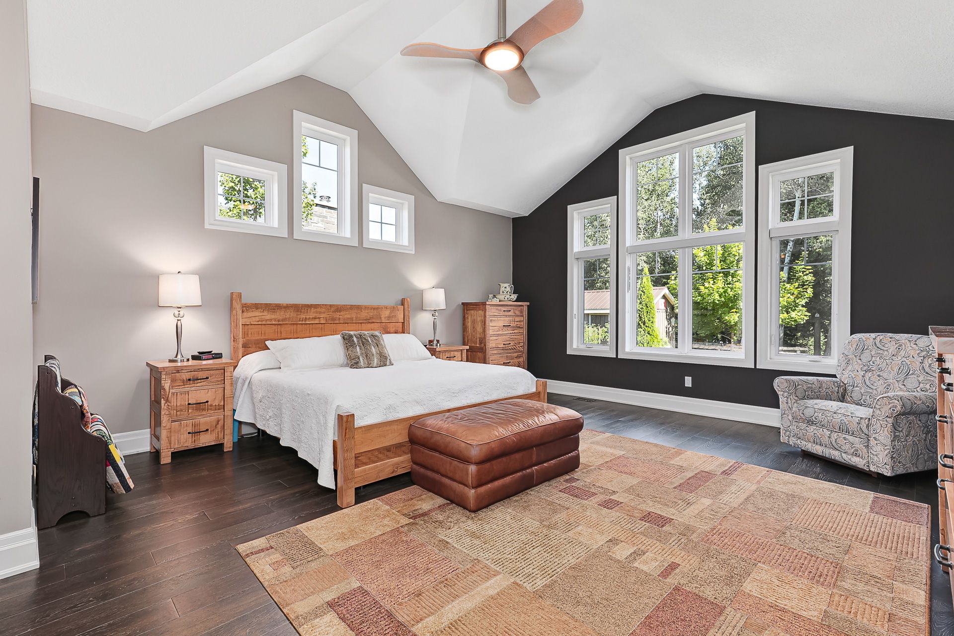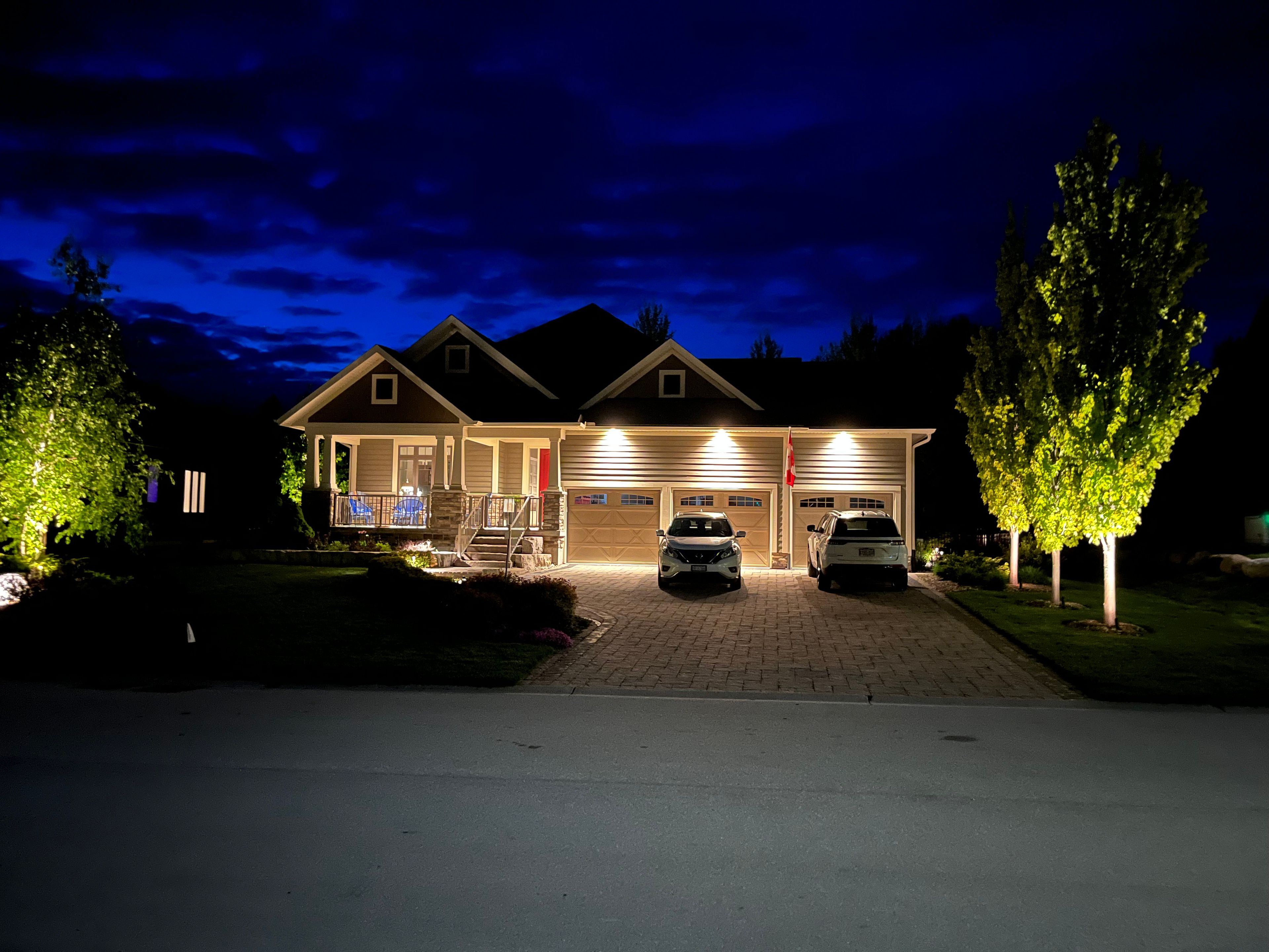 106 high bluff lane is located on one of the most sought after streets in thornbury. This 2+2 bedroom bungalow with a 3-car garage, and over 3600sqft of living space, is on a private, fully fenced, park-like, 1/4 acre lot backing onto greenspace and a ravine. It is a beautifully landscaped property with close to $200k spent on perennial gardens, mature trees, inground sprinkler system, low voltage landscape lighting, interlock driveway that can easily accommodate 5 cars, interlock patios, and a 12' x 14' pavilion. There is also a garden shed with separate electrical panel. The large front porch is a great place to sit and relax. The main floor consists of engineered hardwood floors and has a large open plan chef's dream kitchen with bosch appliances - 5 burner gas cooktop, built-in range µwave/convection oven, french 3-door fridge, dishwasher and a marvel beverage fridge. There is a cathedral ceiling in the dining room and great room with floor to ceiling stone gas fireplace and huge windows & sliding door looking out to the backyard. A large primary bedroom has an ensuite with heated floors and walk in closet. A front bedroom/office completes the main floor. The basement boasts 8. 5' ceilings with large, upgraded windows and the ultimate man cave with custom bar and a gas wood stove that keeps the basement comfortable all year long. There is also huge craft studio that could easily become a games room or gym space. 2 more nice sized bedrooms and a bathroom with heated floor complete the basement area. All the closets have been custom designed for the ultimate in storage solutions. Custom built-ins in the garage and a generac generator are just some of the extra features of this property. You will have a 2-minute walk to access the georgian trail, a 5-minute walk to goldsmith's farm market, a 20-minute walk to foodland & lcbo and a 30-minute walk to town to enjoy any of the many coffee shops and restaurants