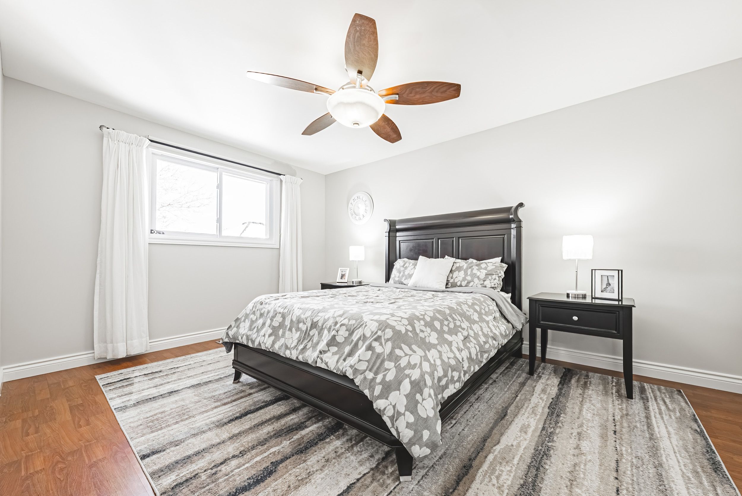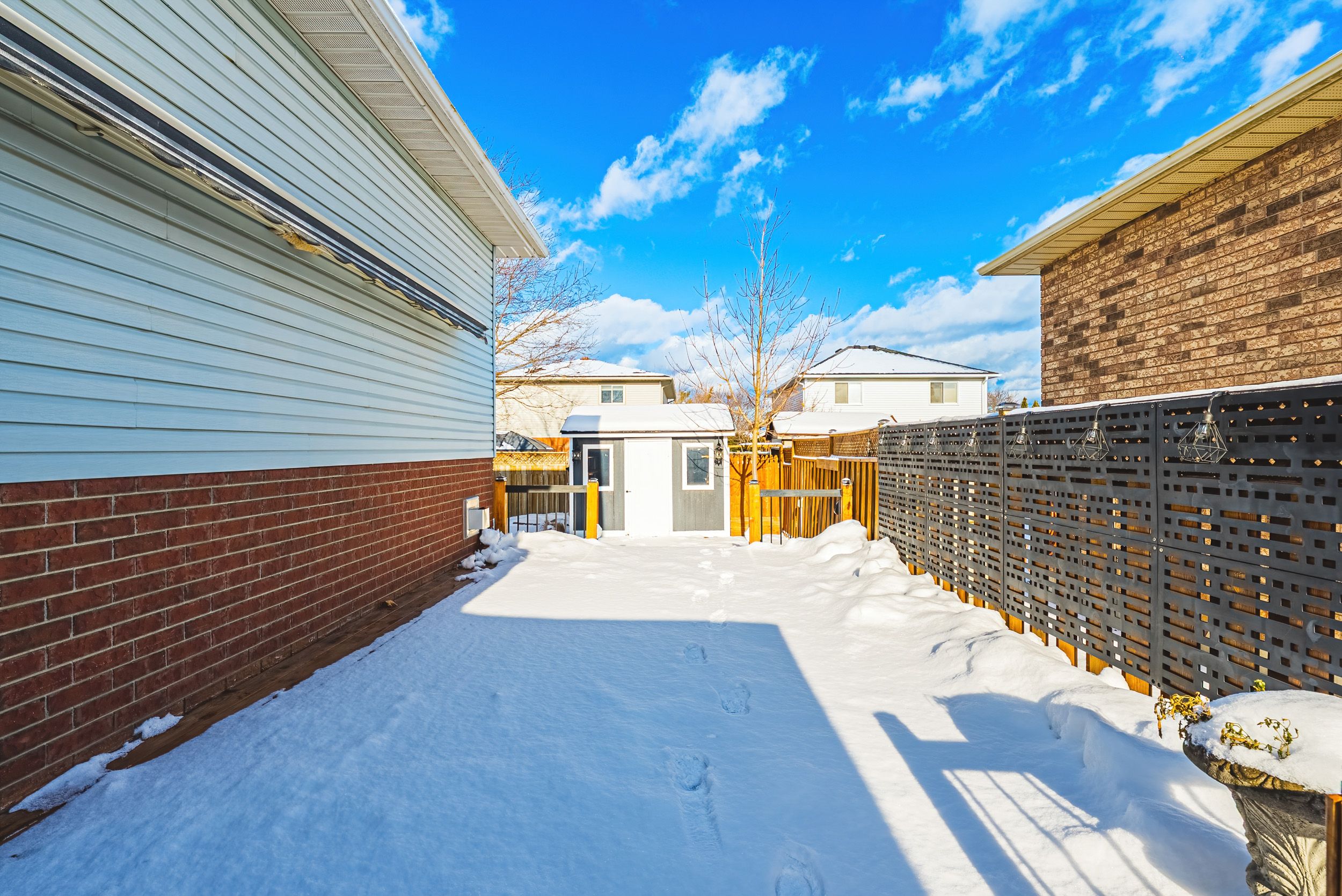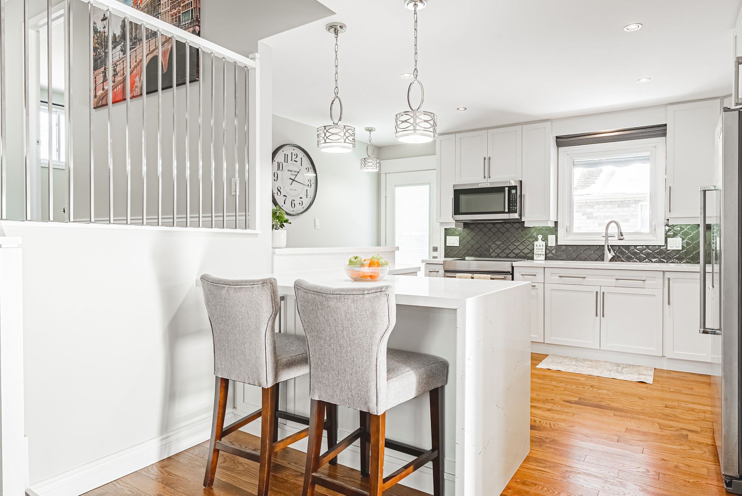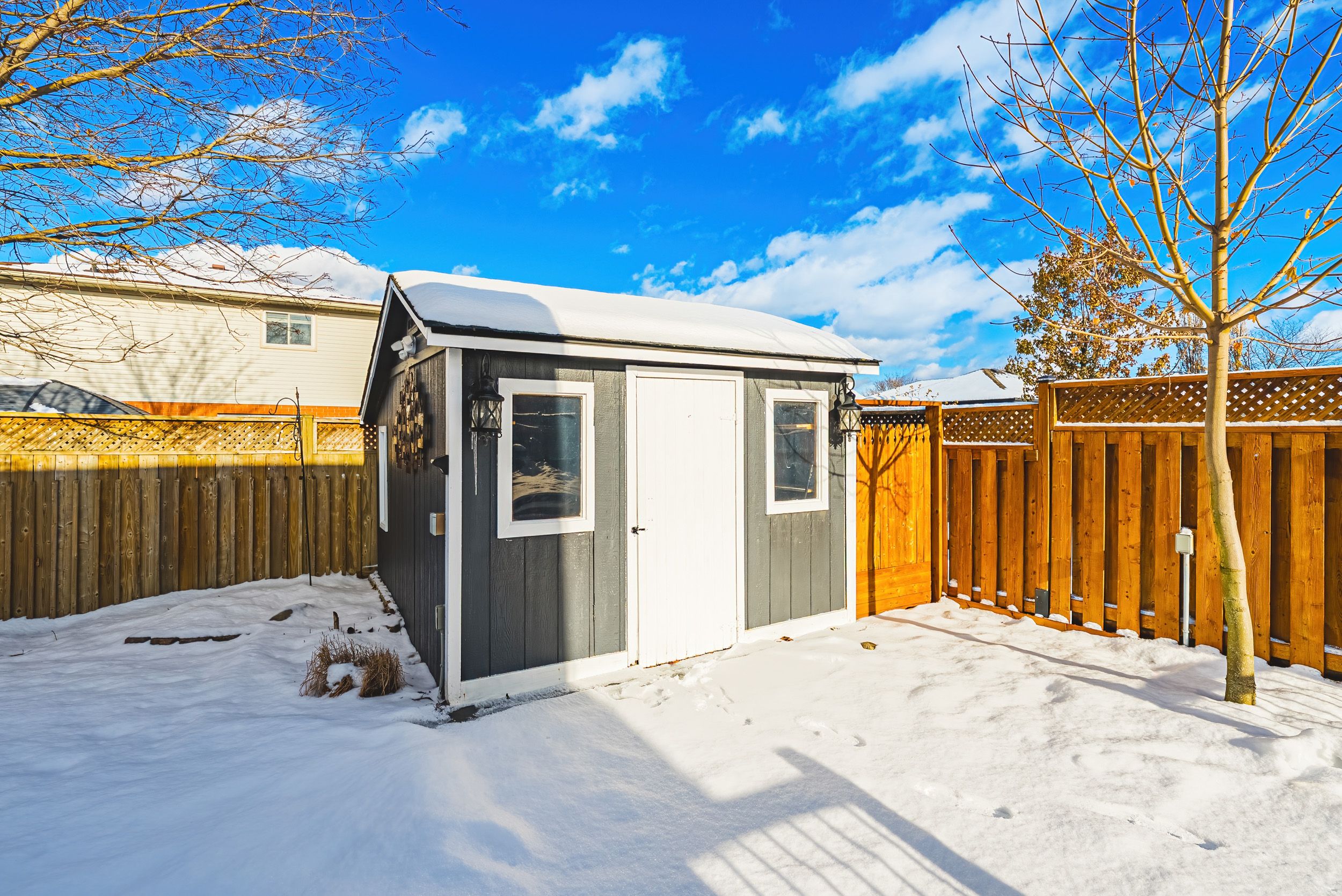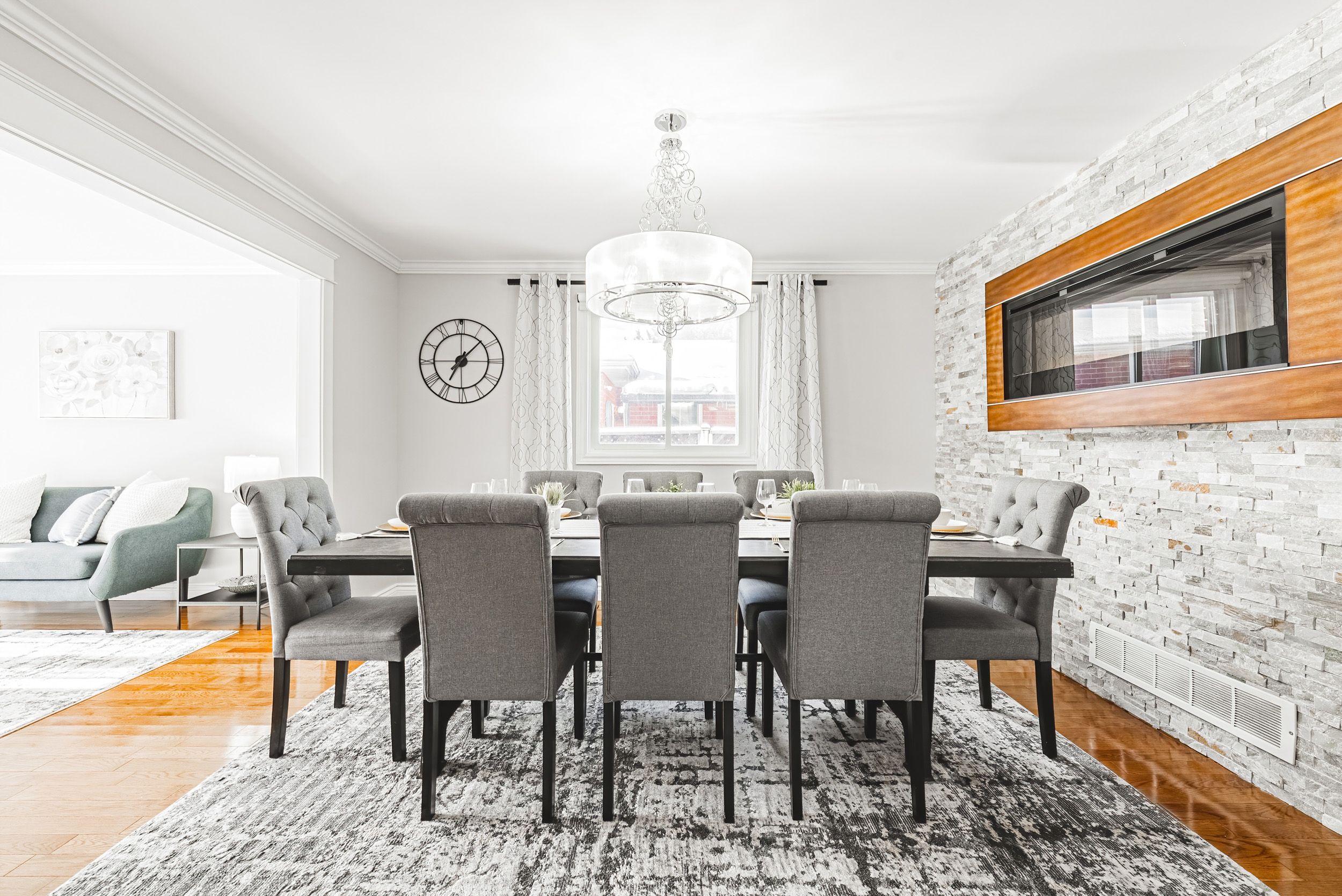 Beautifully maintained 4-bedroom, 2-bathroom backsplit with double garage, offering an impressive amount of finished living space across four levels in the prestigious leckie park community of upper stoney creek. This home delivers a bright, functional layout with designated living, dining, and kitchen areas that create an ideal flow for everyday living and entertaining. The updated white kitchen showcases quartz countertops, stainless steel appliances, an island, custom cabinetry, crown moulding, and thoughtful storage touches, including a built-in spice drawer. The dining area is warm and inviting with hardwood floors throughout and ambient fireplace providing a turnkey setup for hosting family and friends. The upper level offers three comfortable bedrooms and a stylish 4-piece bathroom. The lower levels offer exceptional versatility, featuring a spacious family room with a gas fireplace, an additional bedroom, and a full 4-piece bathroom. The basement continues to impress with an updated laundry room, separate utility room, and an additional recreation space. Outside, the property boasts excellent curb appeal with a double-wide driveway and a fully fenced backyard complete with cedar decking, green space, garden shed and two electric retractable awnings for effortless comfort. The attached double garage is a standout feature with its epoxy finished flooring, clean, durable and ideal for storage or a workshop setup. Ideally located near parks, trails, grocery stores, restaurants, community centre, cineplex theatres, and offering quick access to the linc, redhill, and qew.