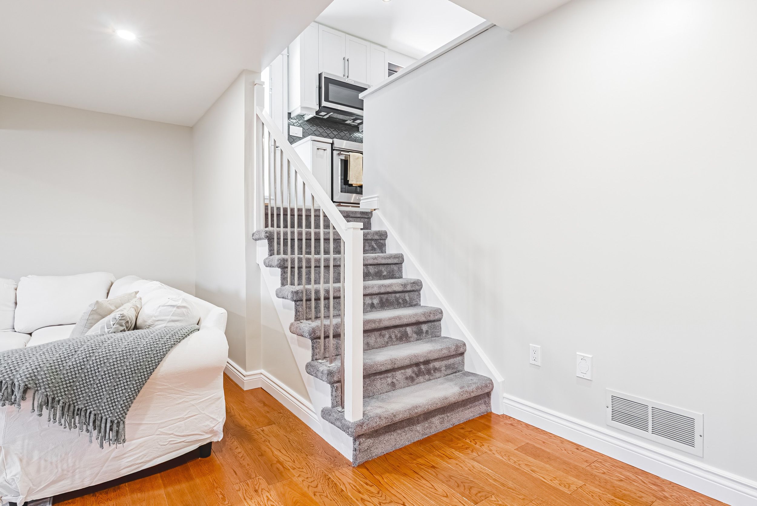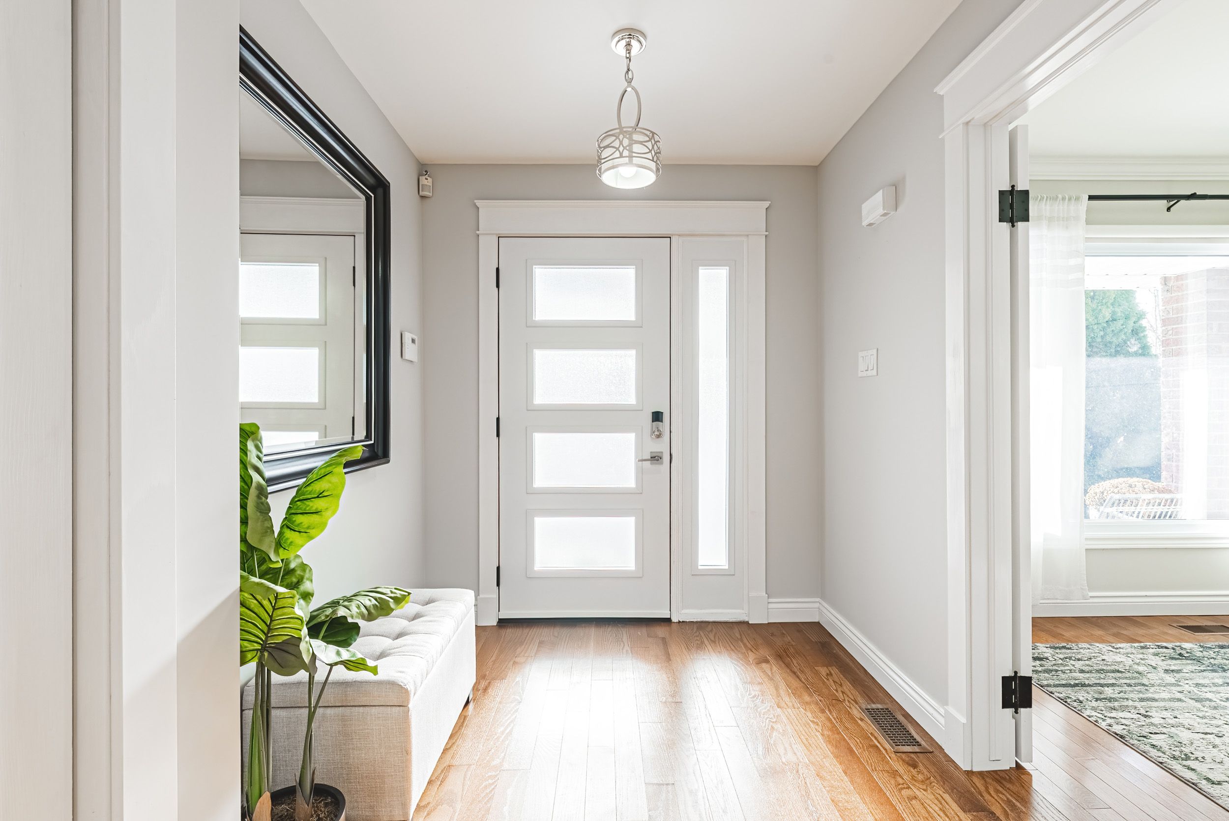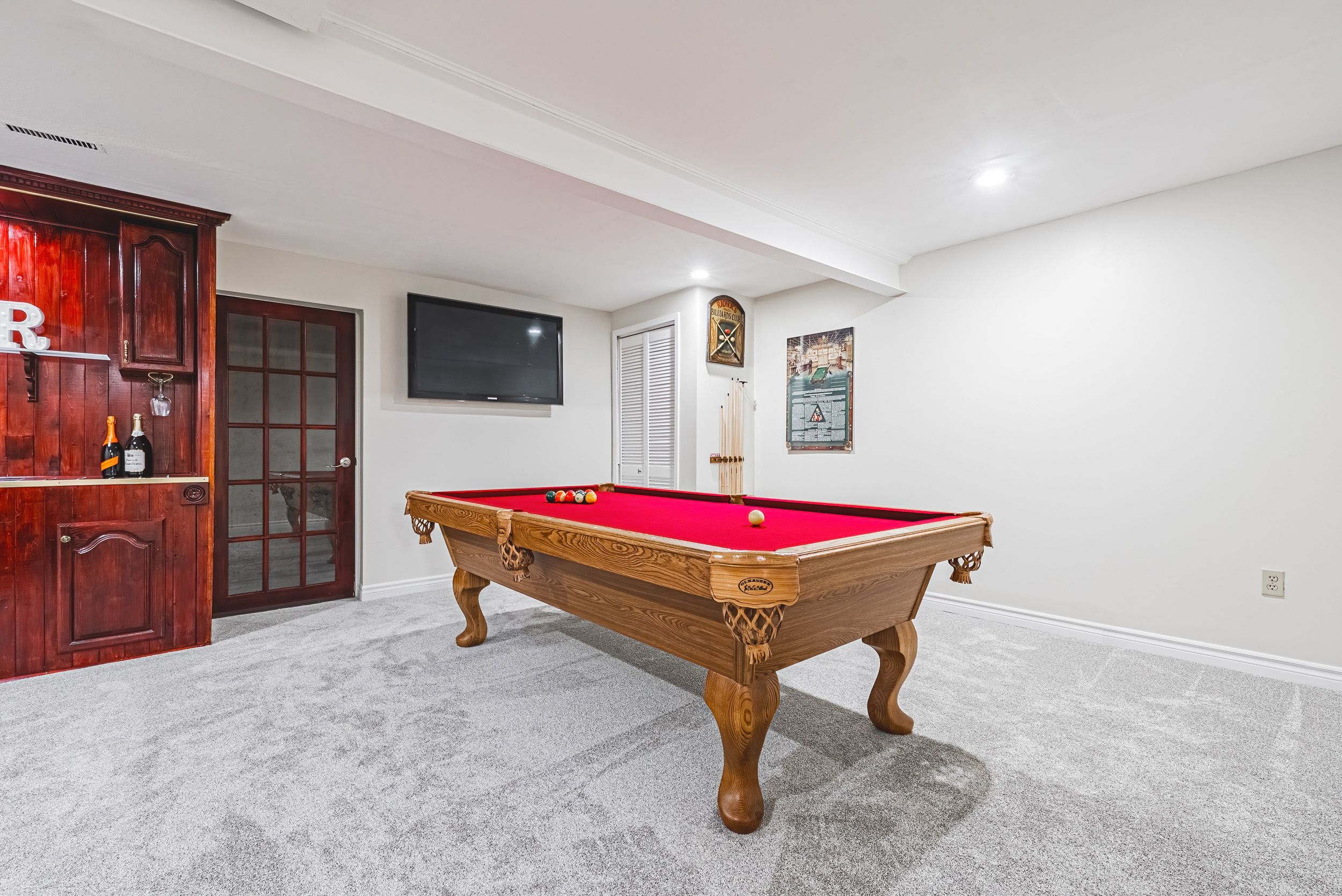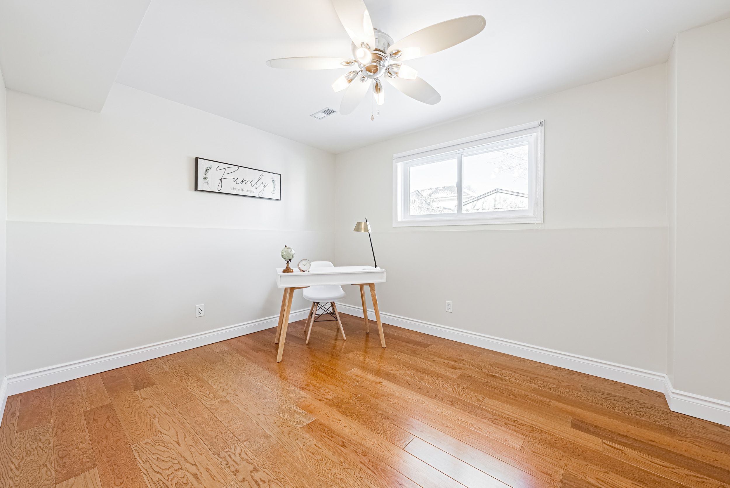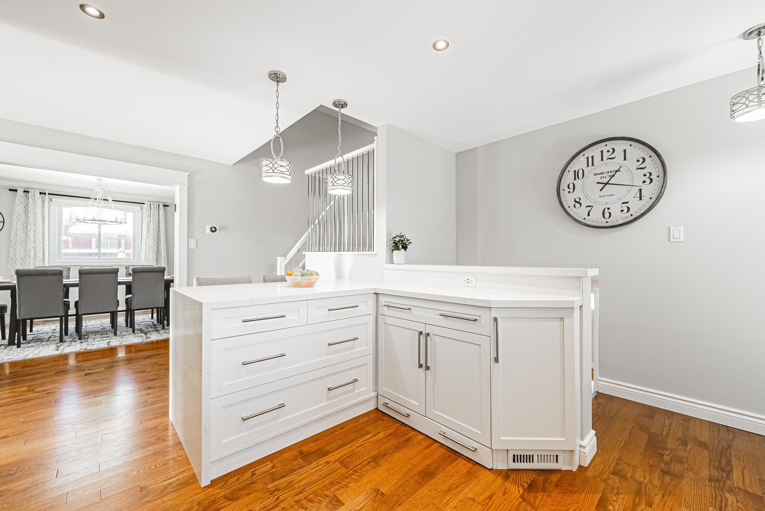 Beautifully maintained 4-bedroom, 2-bathroom backsplit with double garage, offering an impressive amount of finished living space across four levels in the prestigious leckie park community of upper stoney creek. This home delivers a bright, functional layout with designated living, dining, and kitchen areas that create an ideal flow for everyday living and entertaining. The updated white kitchen showcases quartz countertops, stainless steel appliances, an island, custom cabinetry, crown moulding, and thoughtful storage touches, including a built-in spice drawer. The dining area is warm and inviting with hardwood floors throughout and ambient fireplace providing a turnkey setup for hosting family and friends. The upper level offers three comfortable bedrooms and a stylish 4-piece bathroom. The lower levels offer exceptional versatility, featuring a spacious family room with a gas fireplace, an additional bedroom, and a full 4-piece bathroom. The basement continues to impress with an updated laundry room, separate utility room, and an additional recreation space. Outside, the property boasts excellent curb appeal with a double-wide driveway and a fully fenced backyard complete with cedar decking, green space, garden shed and two electric retractable awnings for effortless comfort. The attached double garage is a standout feature with its epoxy finished flooring, clean, durable and ideal for storage or a workshop setup. Ideally located near parks, trails, grocery stores, restaurants, community centre, cineplex theatres, and offering quick access to the linc, redhill, and qew.
