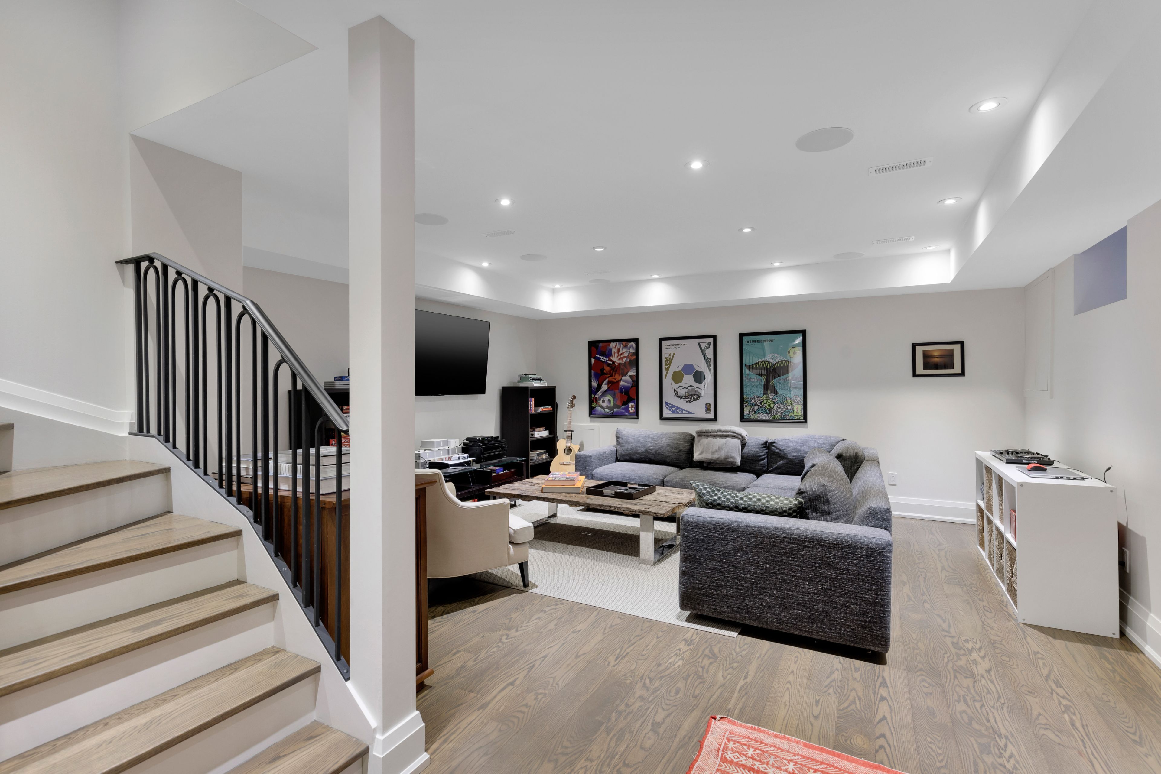 • Open concept main floor filled with natural light and a cozy fireplace.