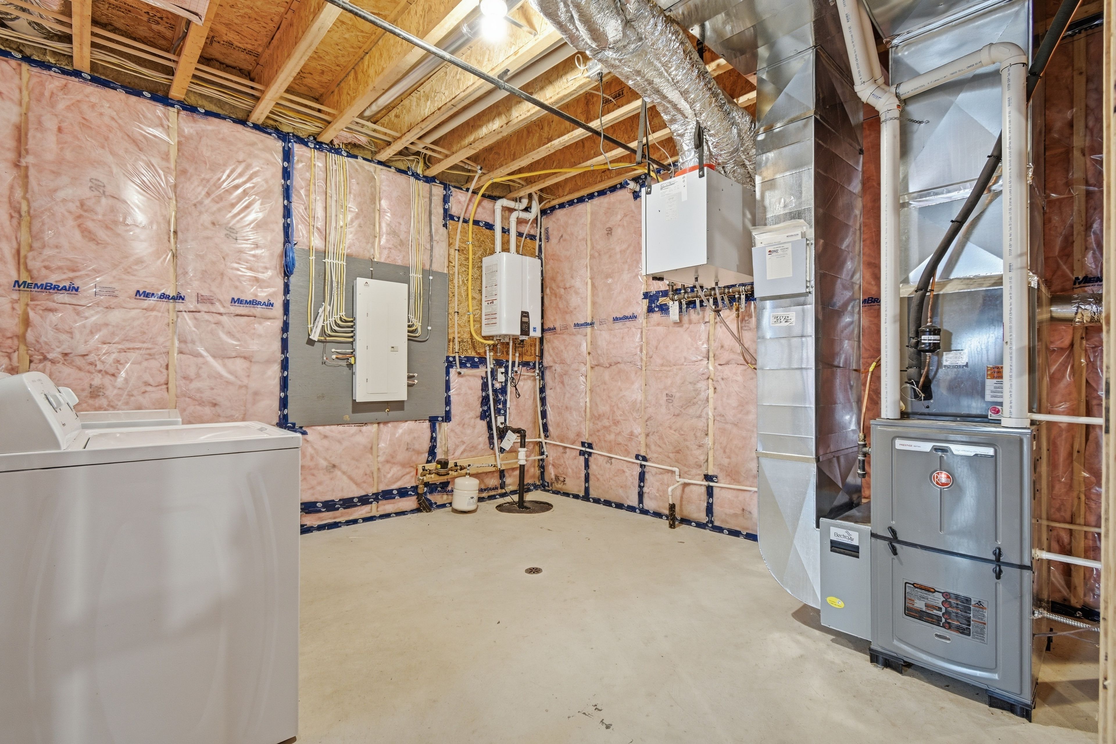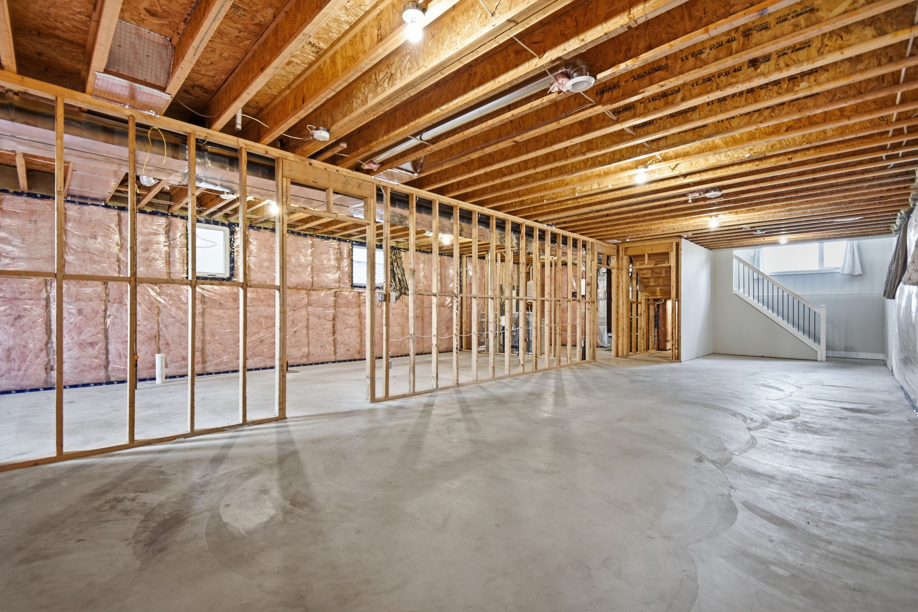 • Unfinished basement with high ceilings offers potential for additional living space.