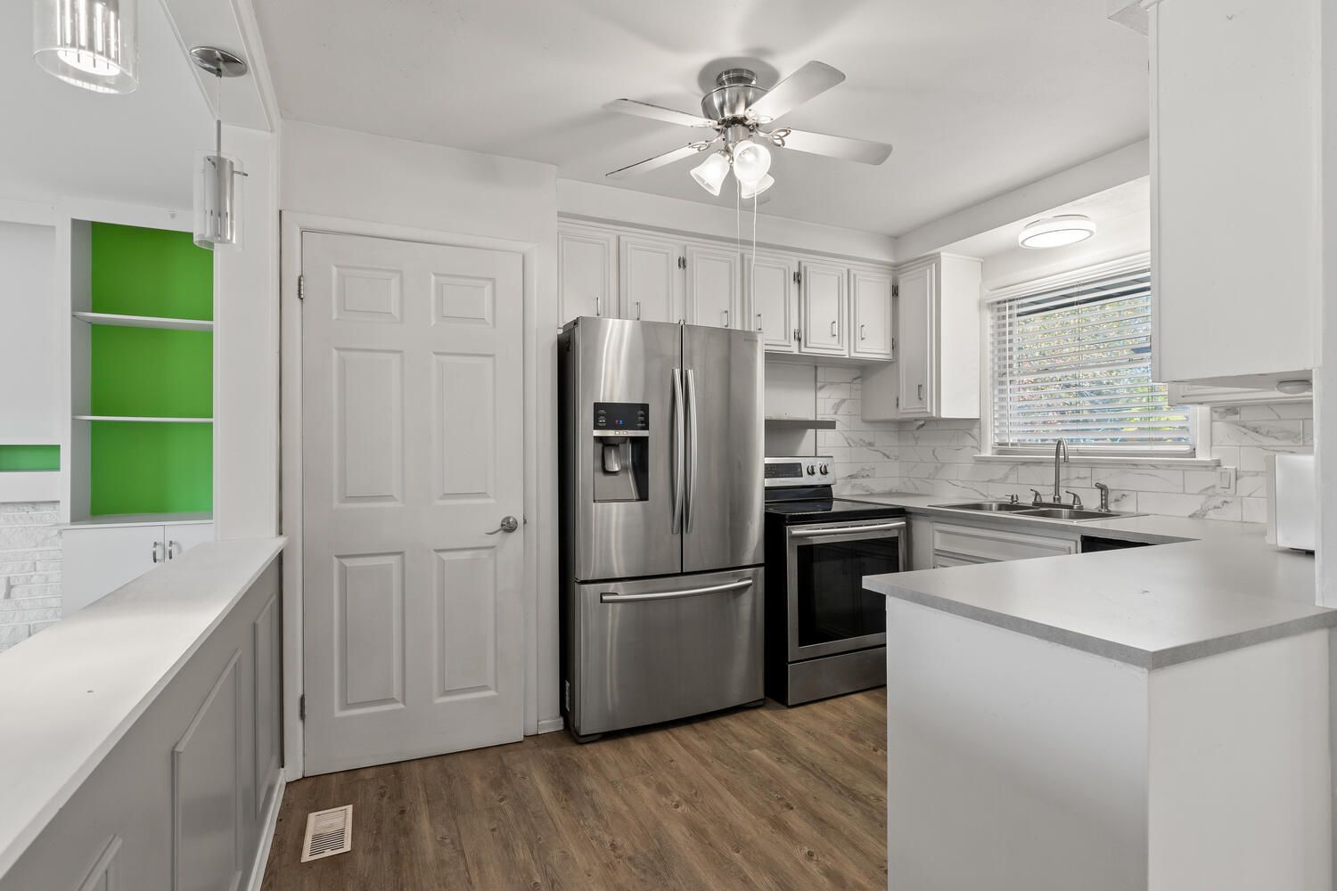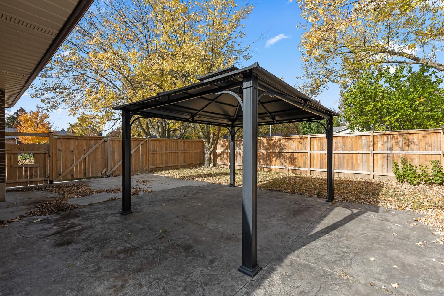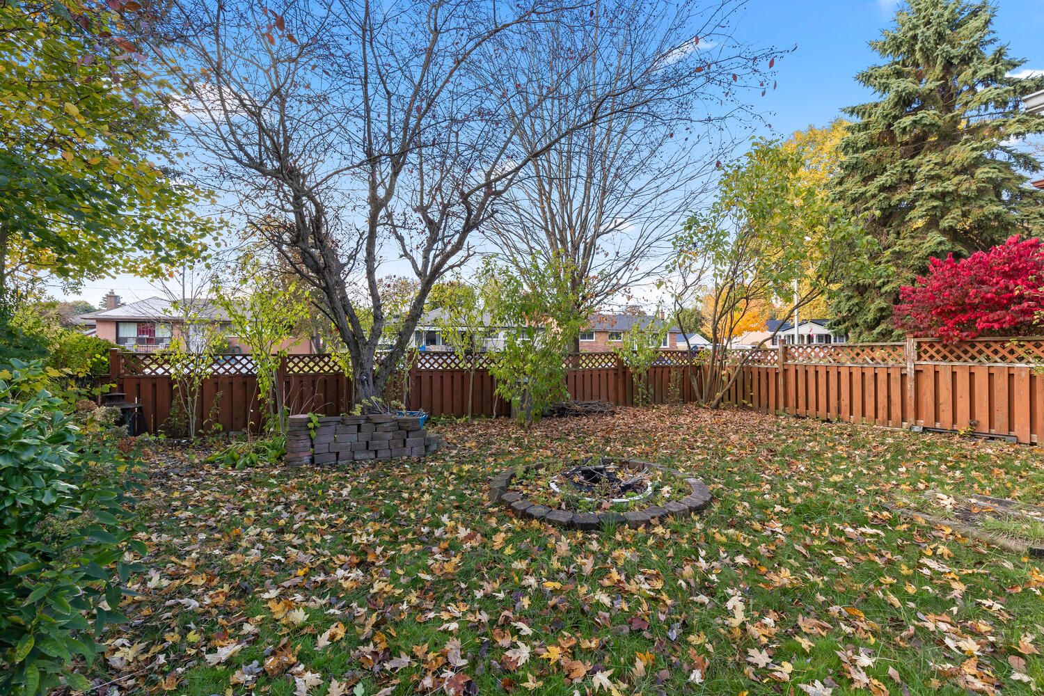 • Spacious, fully fenced yard with patio and ample green space.