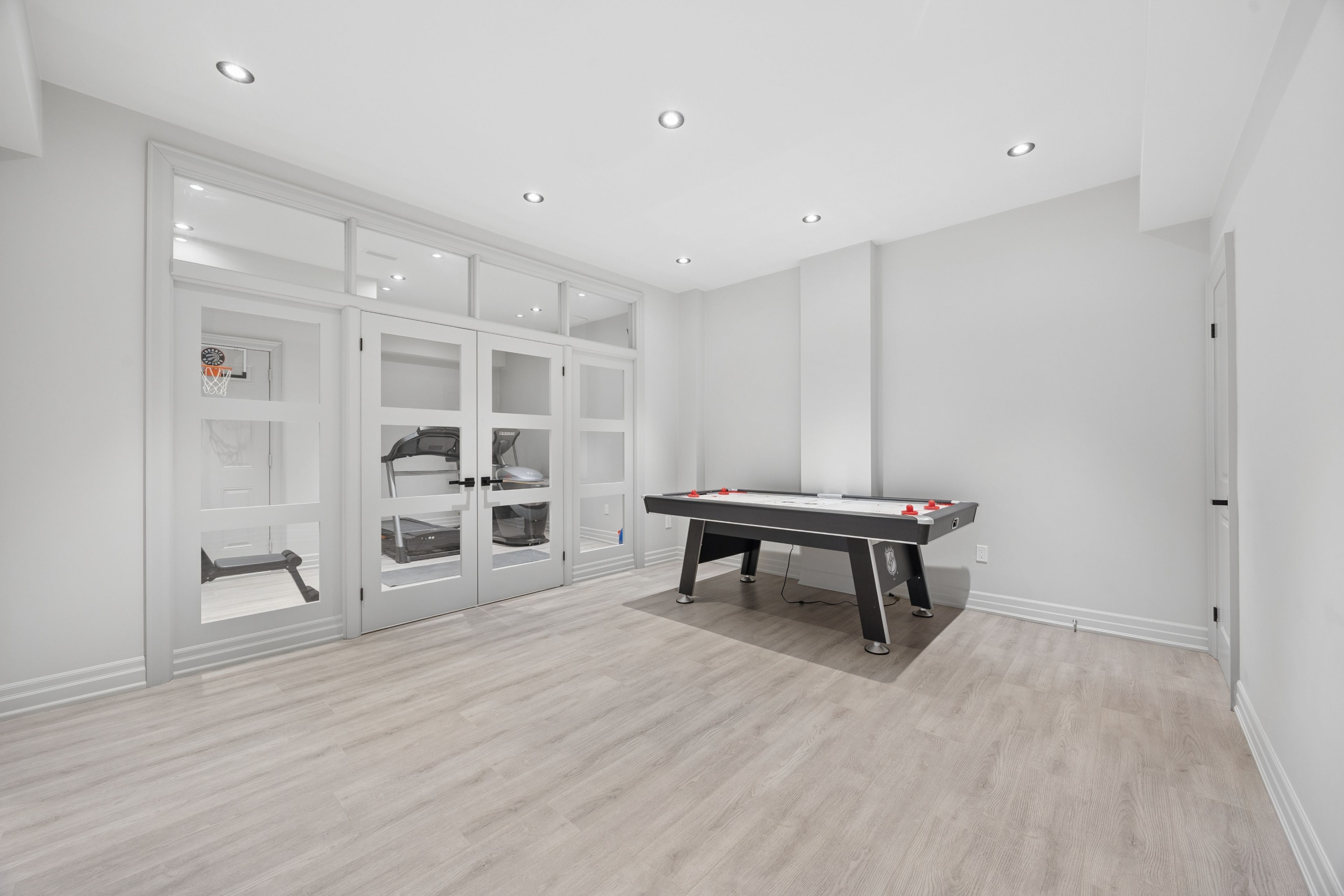 • Finished lower level featuring a home theater, gym, and wet bar.