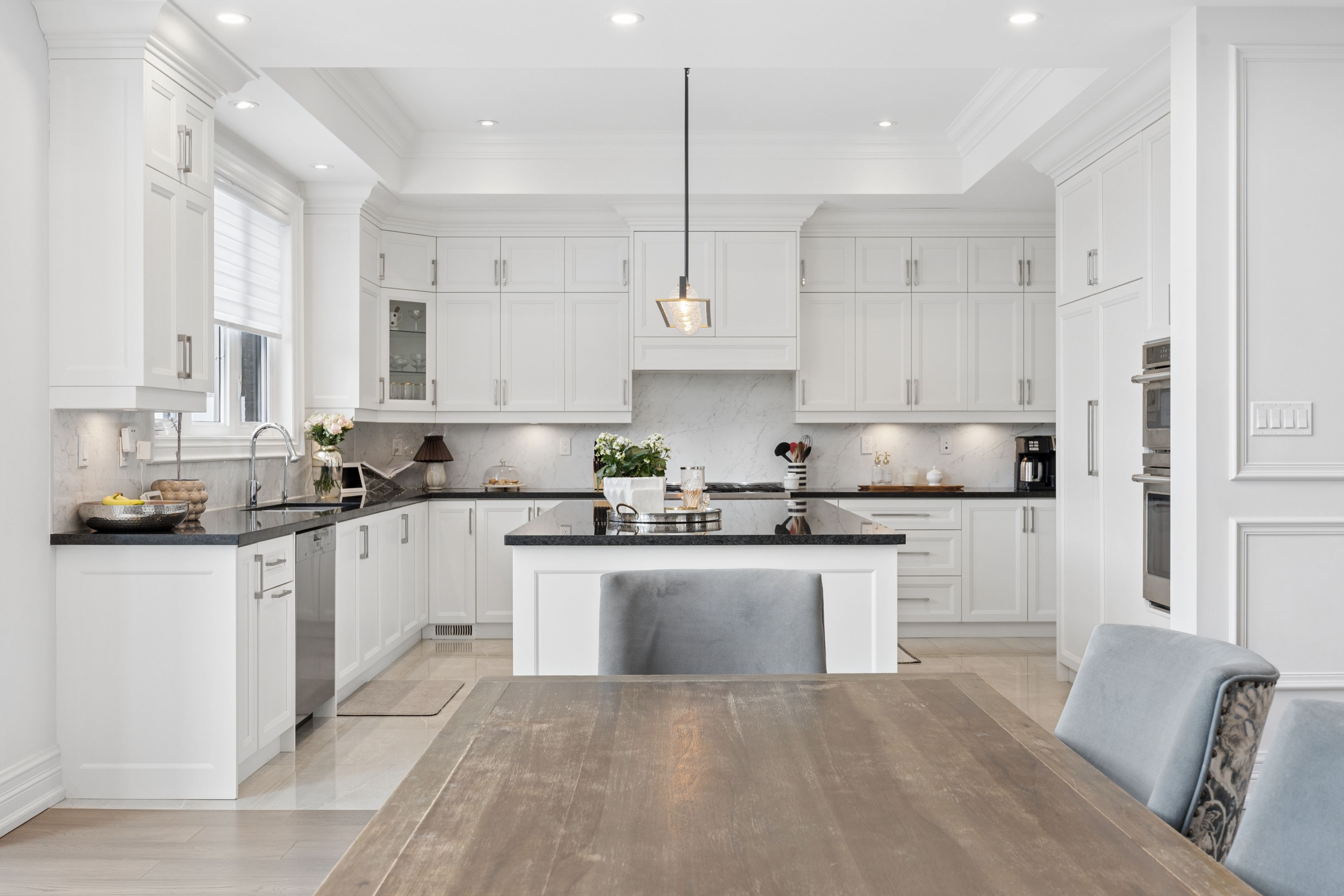 • Gourmet kitchen with high-end appliances and a large center island.