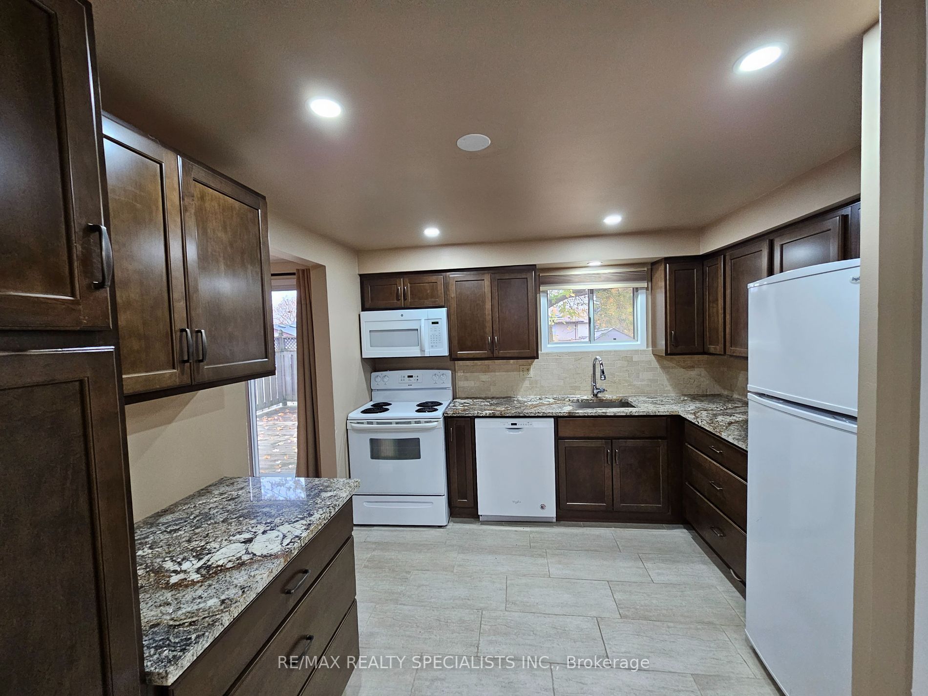 • Newly renovated kitchen with granite countertops and modern cabinets.