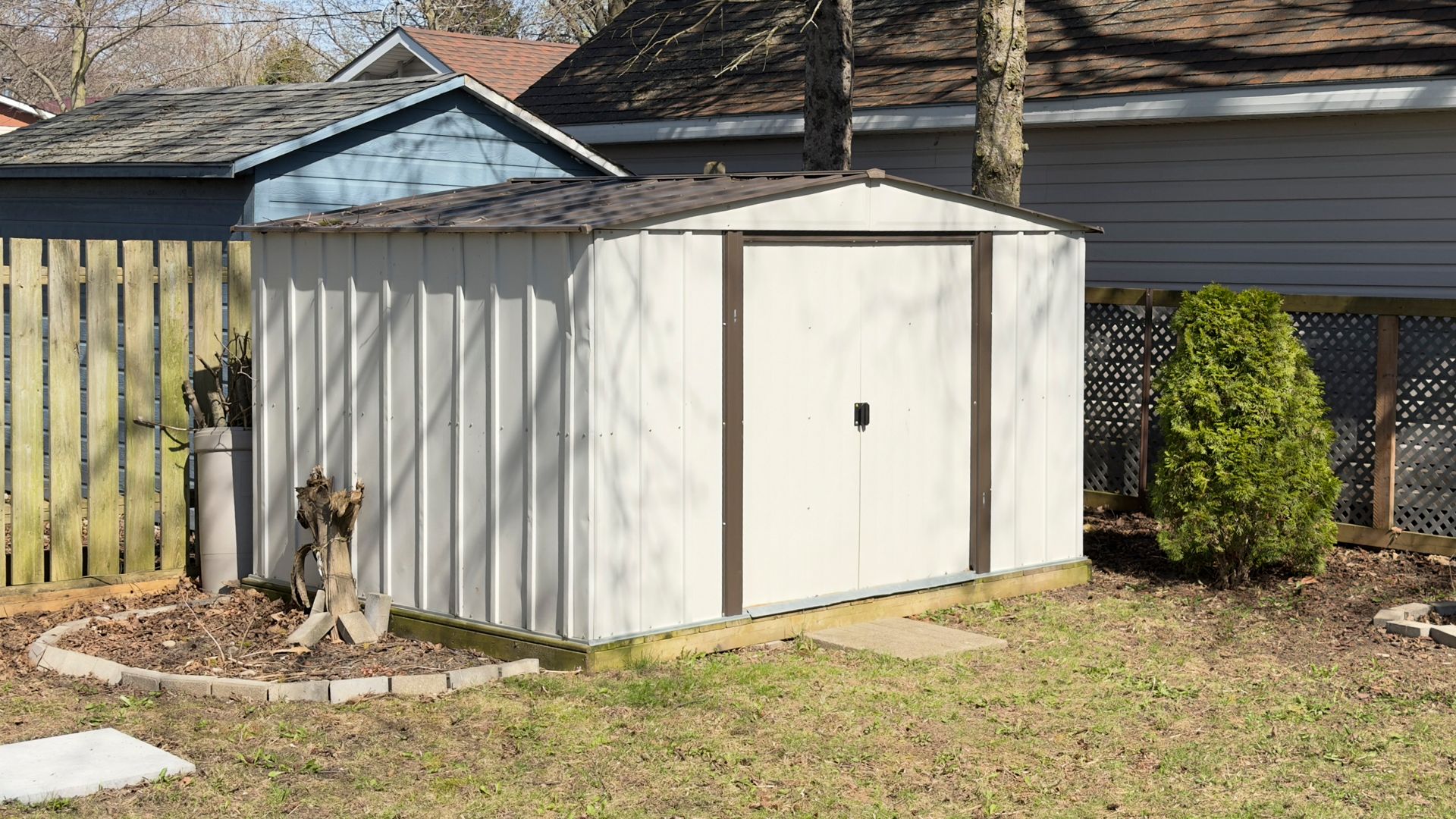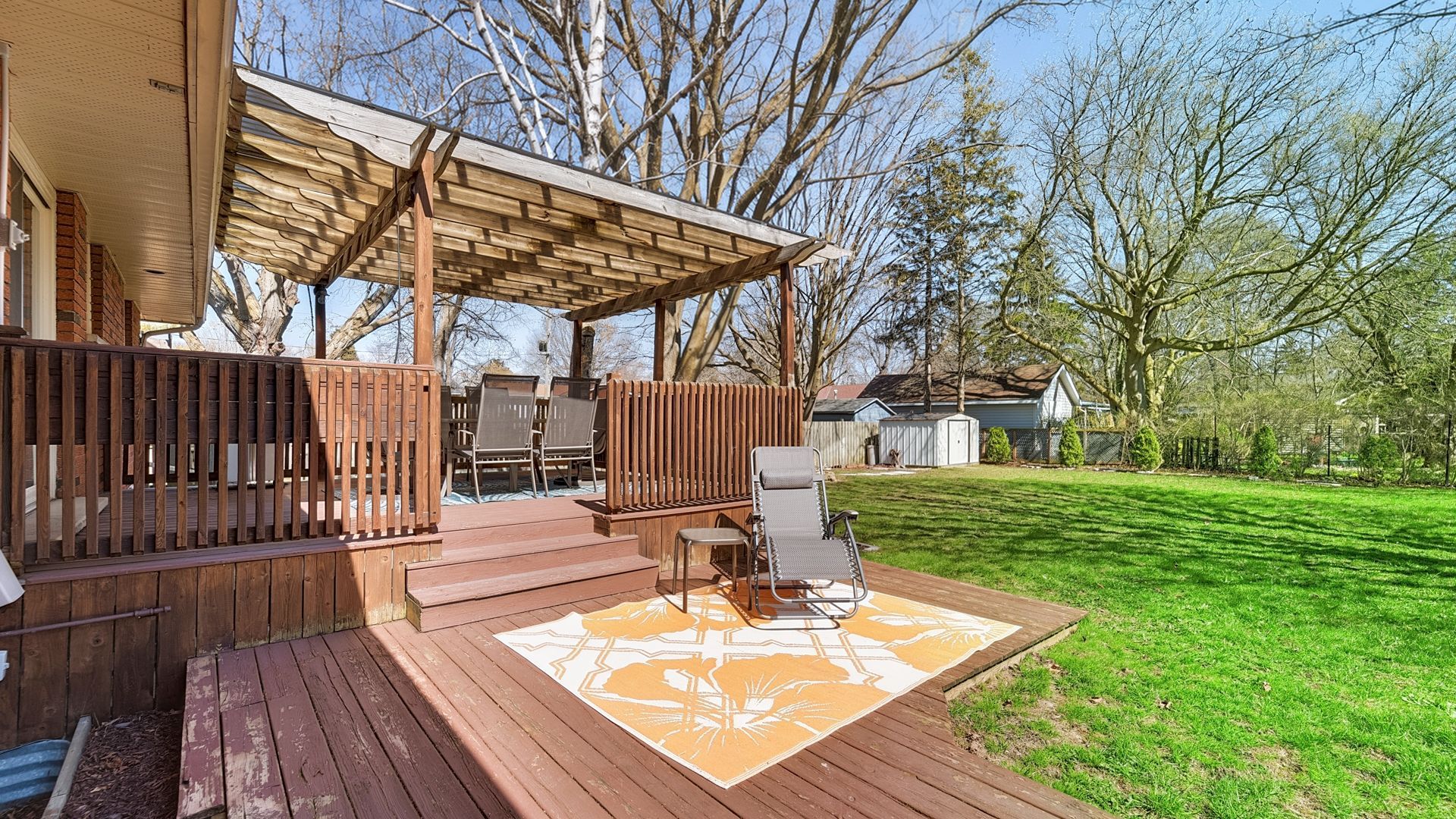 • Fenced backyard with storage sheds, ideal for pets and entertaining.