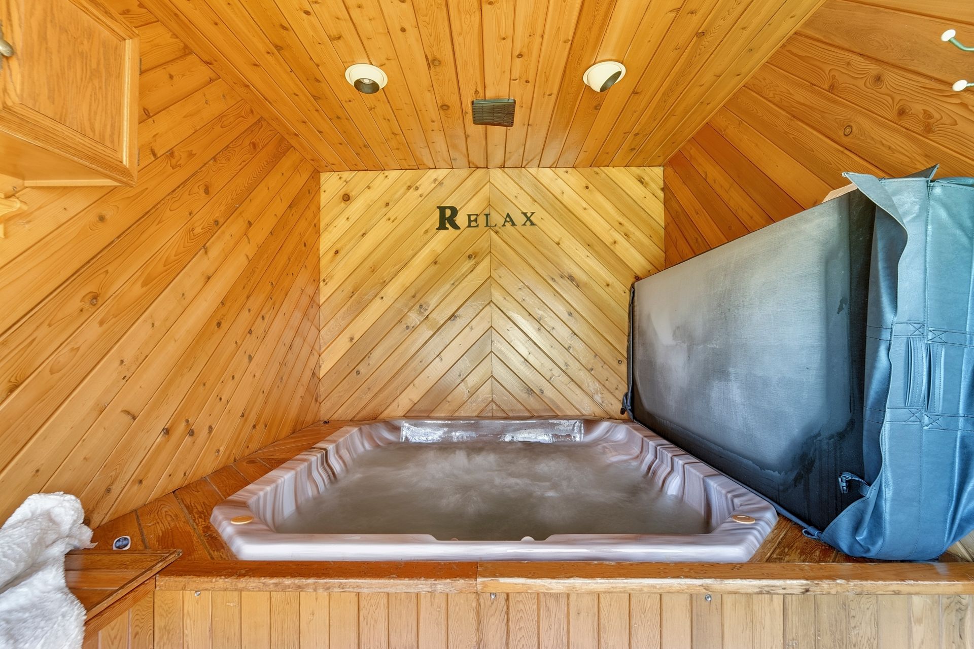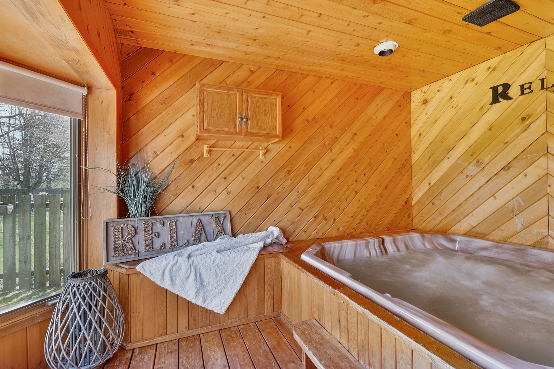• Private indoor hot tub room for relaxation and unwinding.