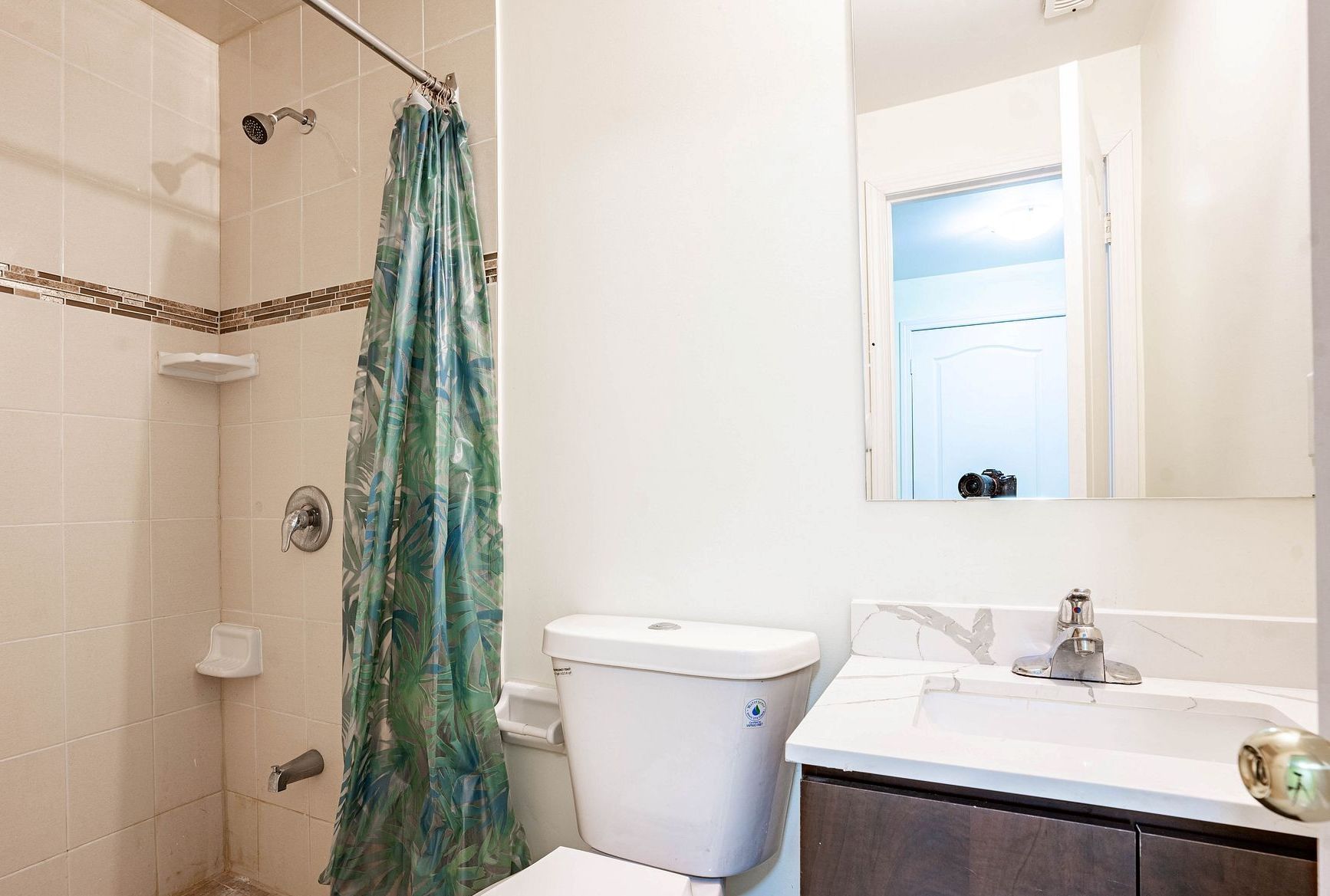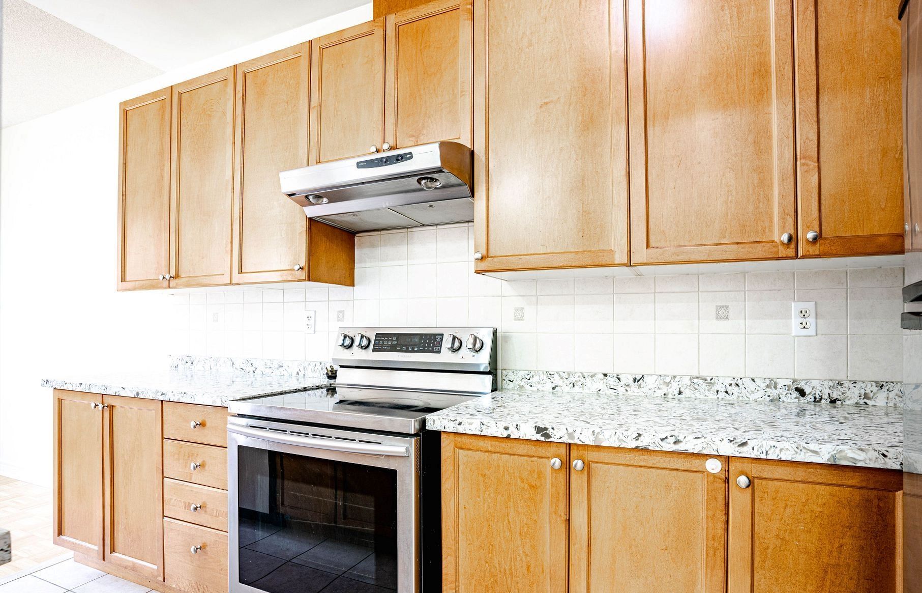 • Modern kitchen with quartz countertops and bright breakfast area for family gatherings.