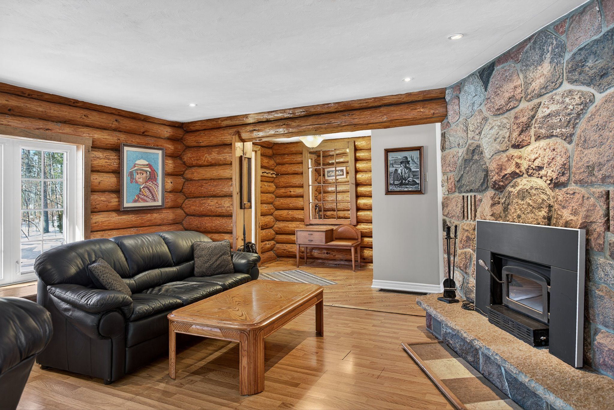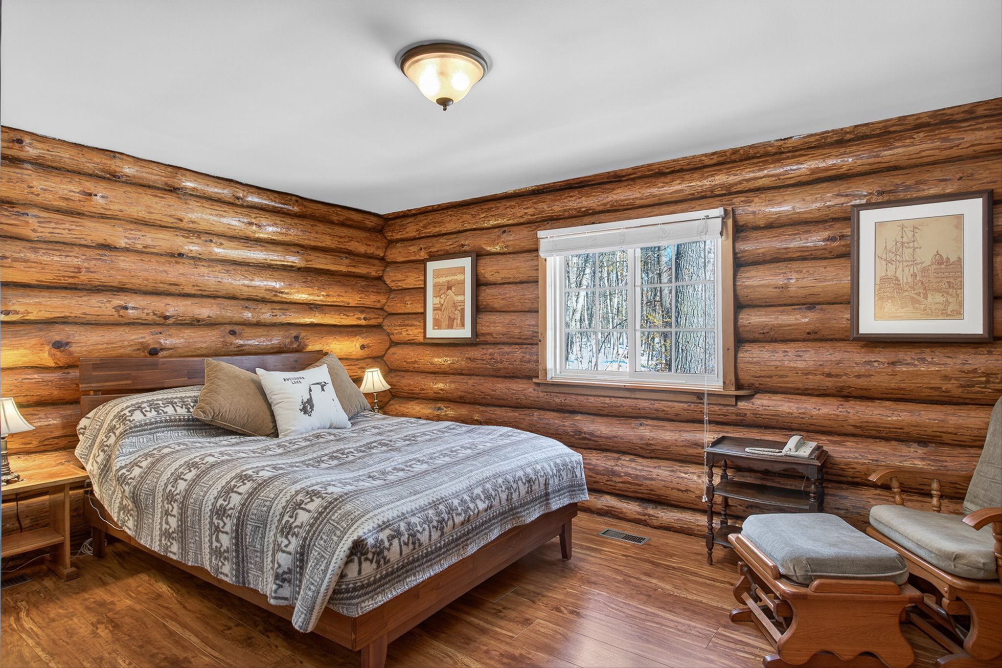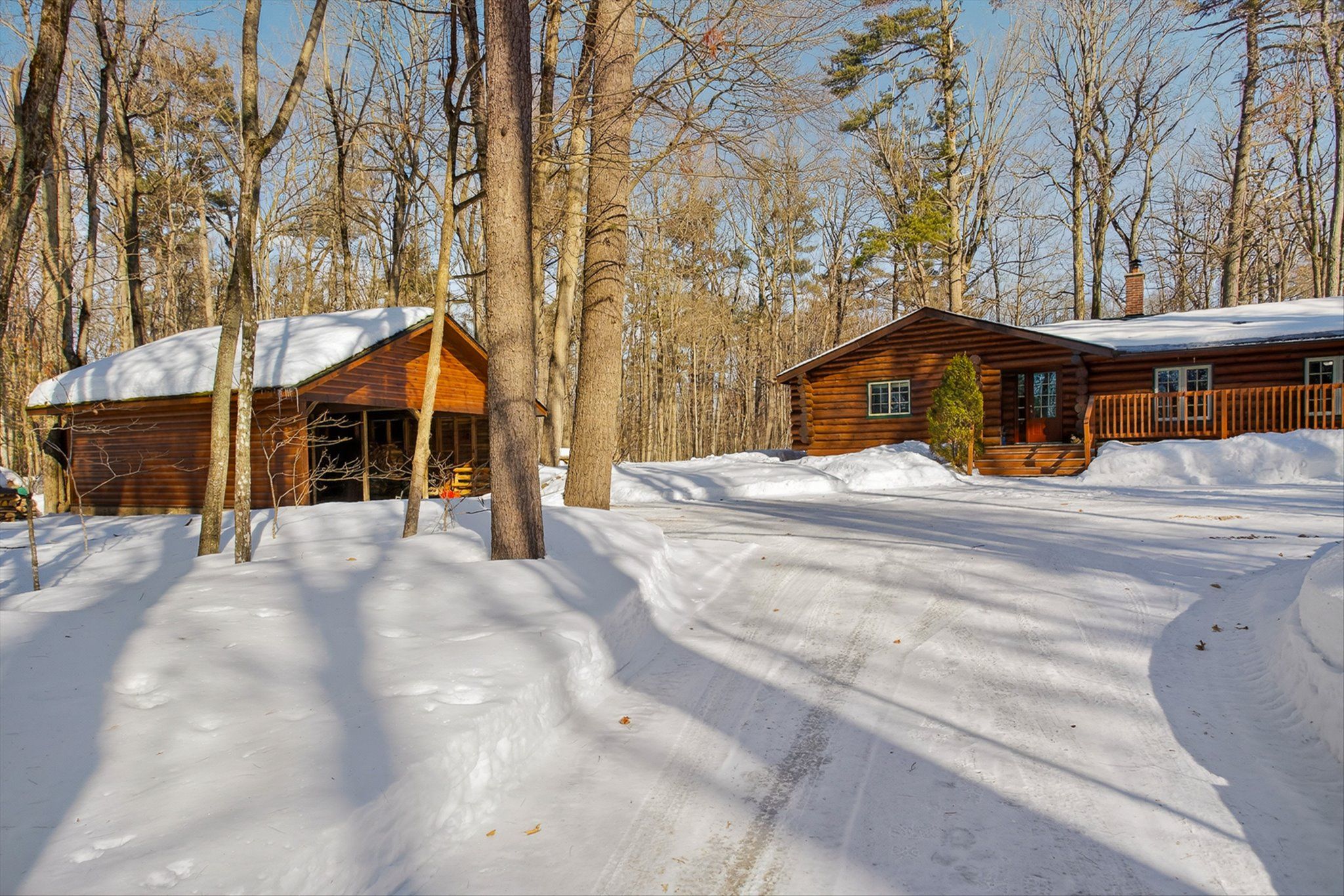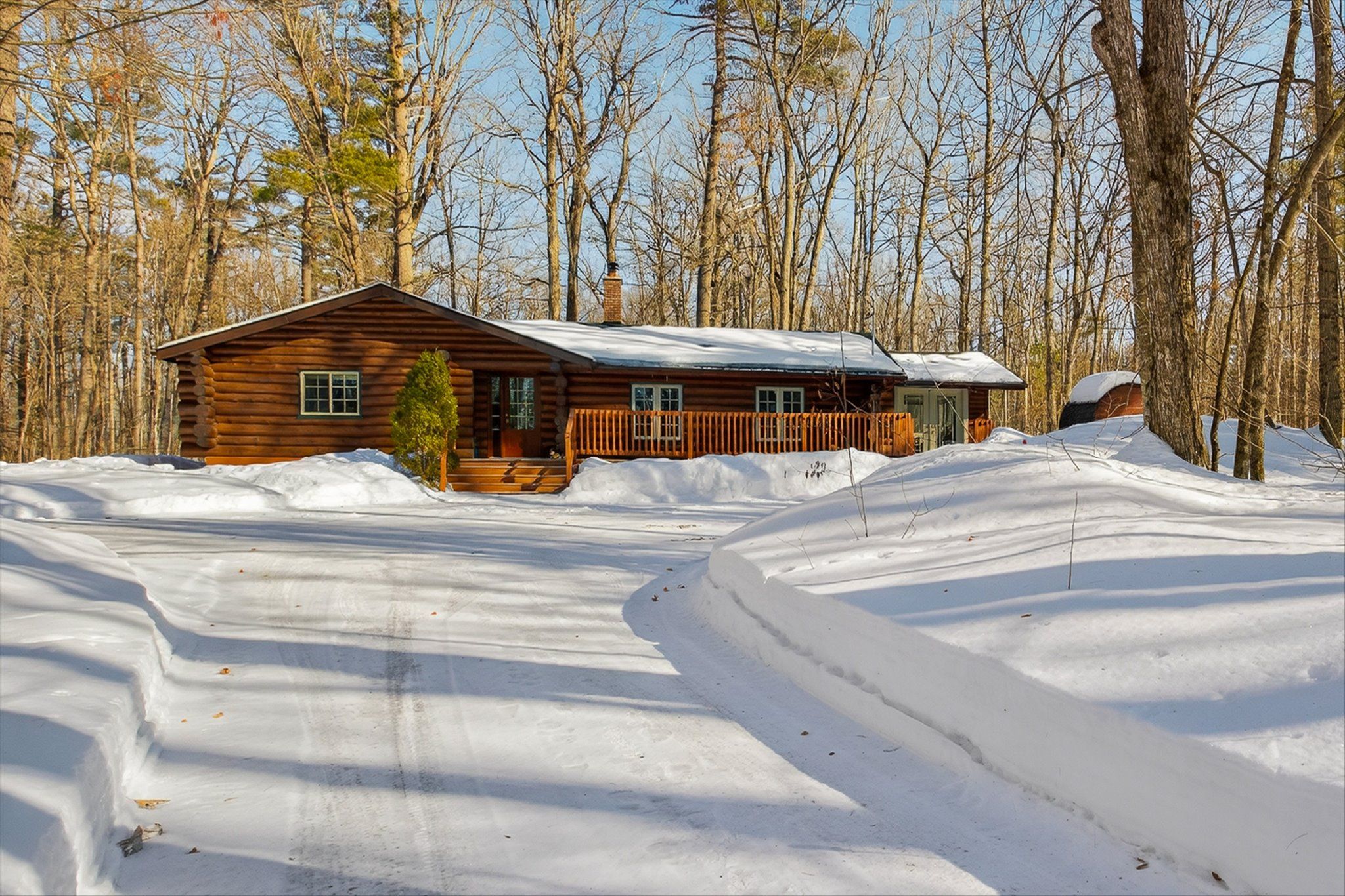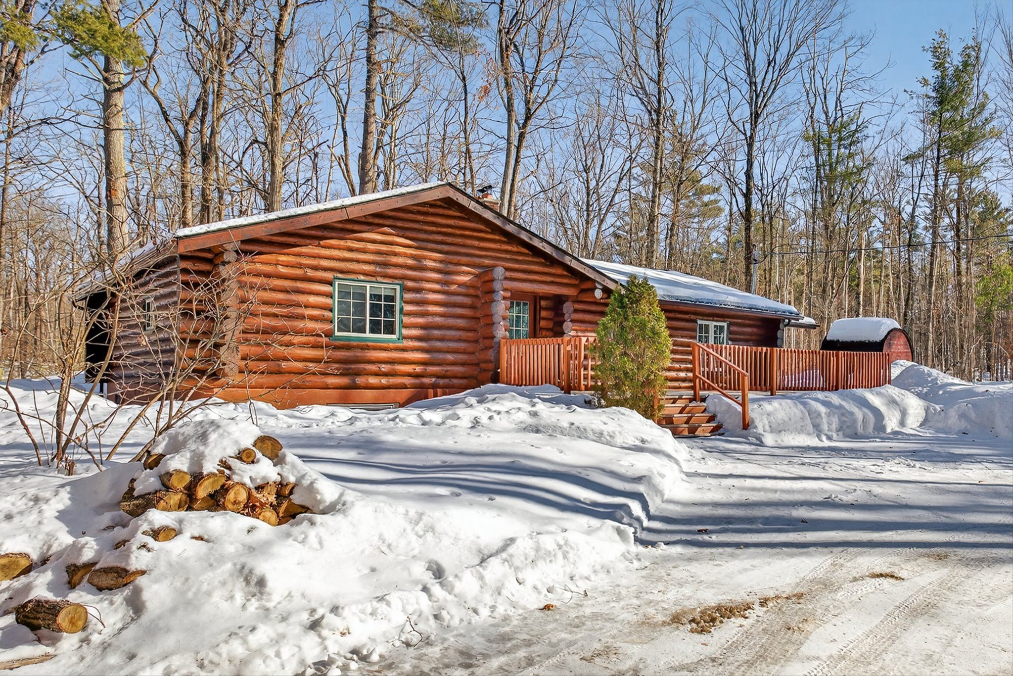 • Charming log home on over an acre of private, treed property.