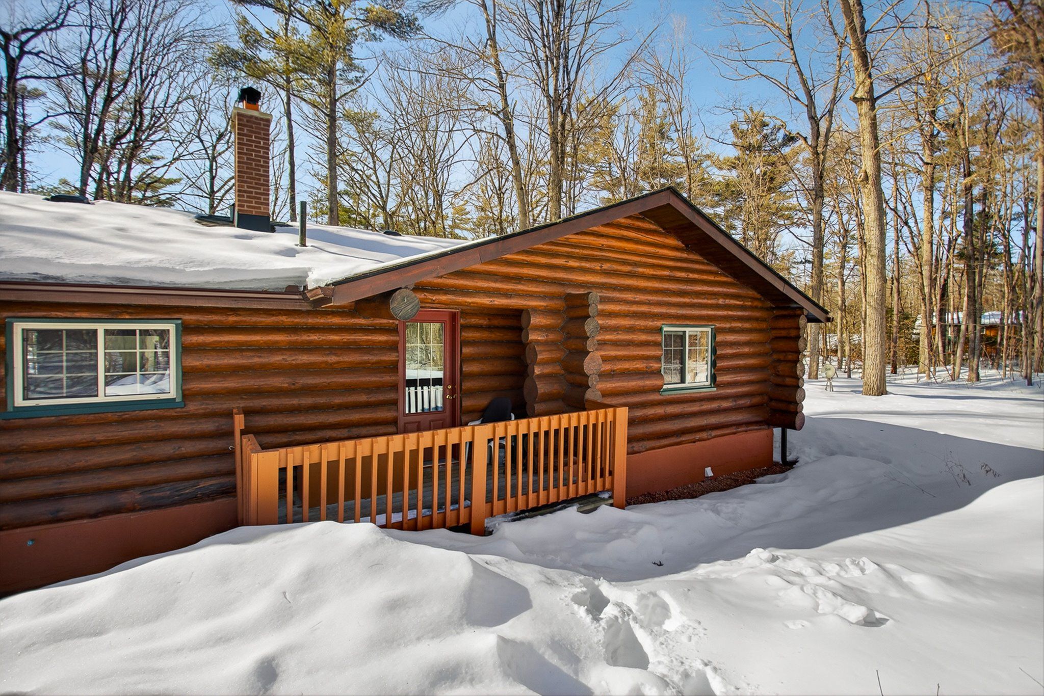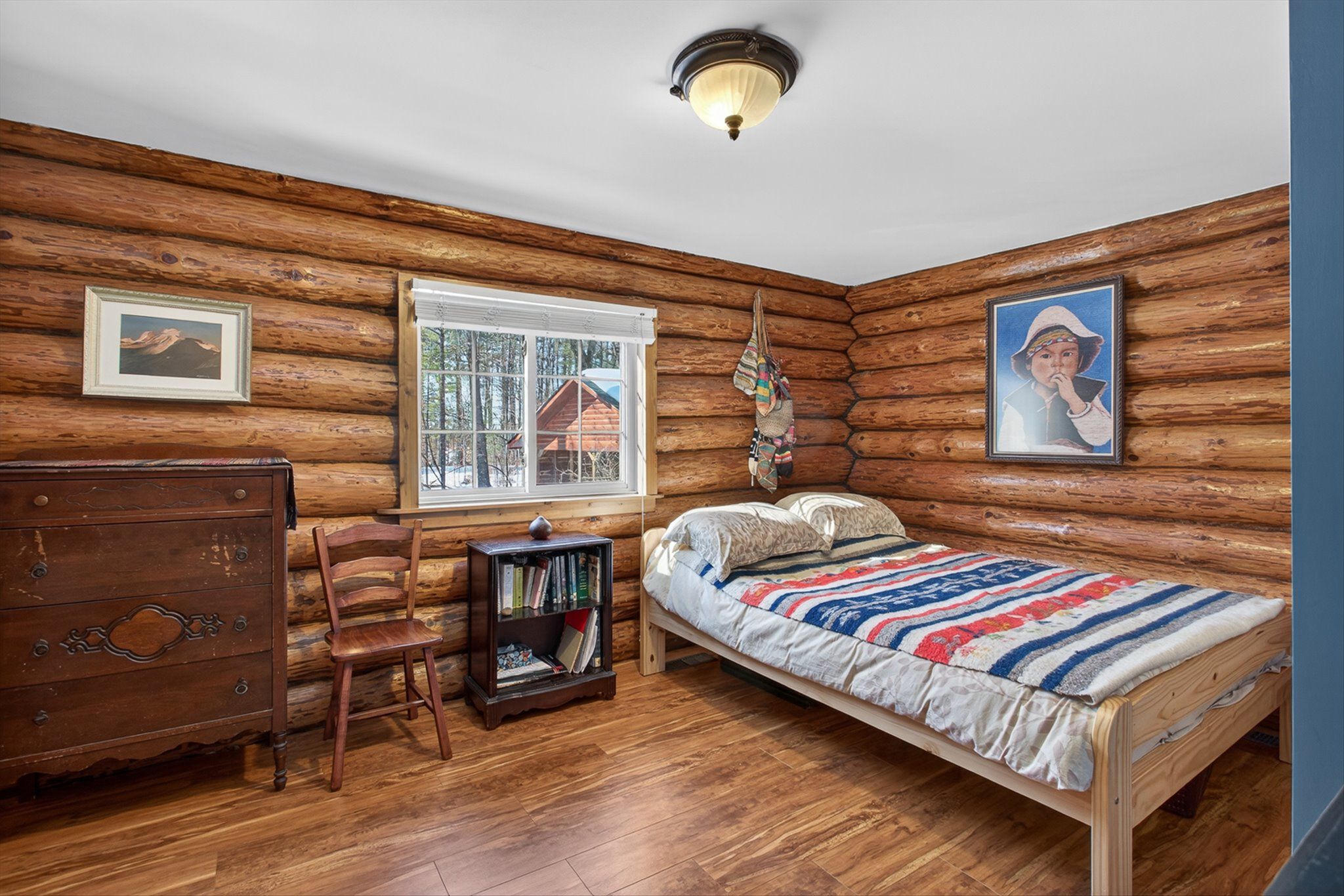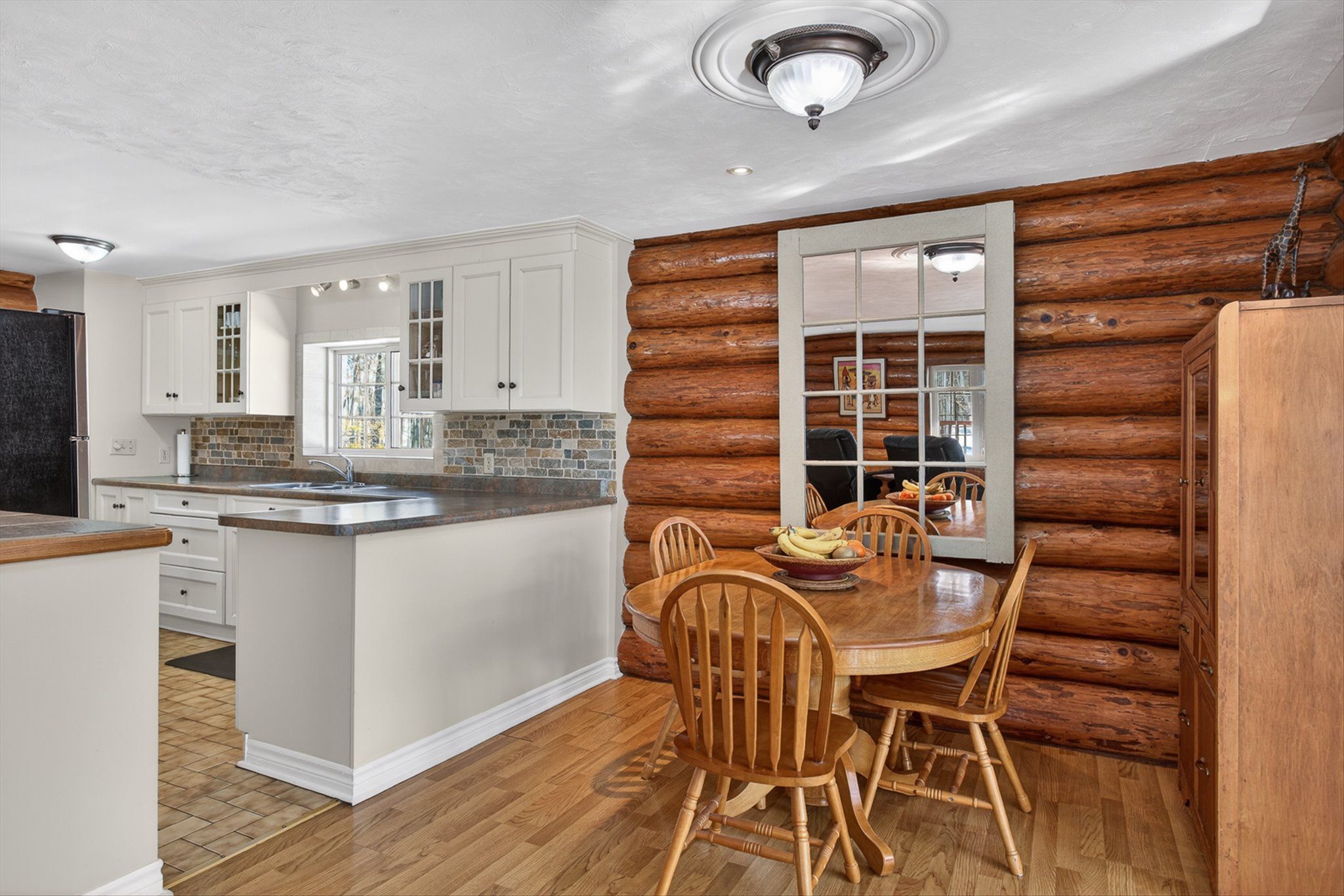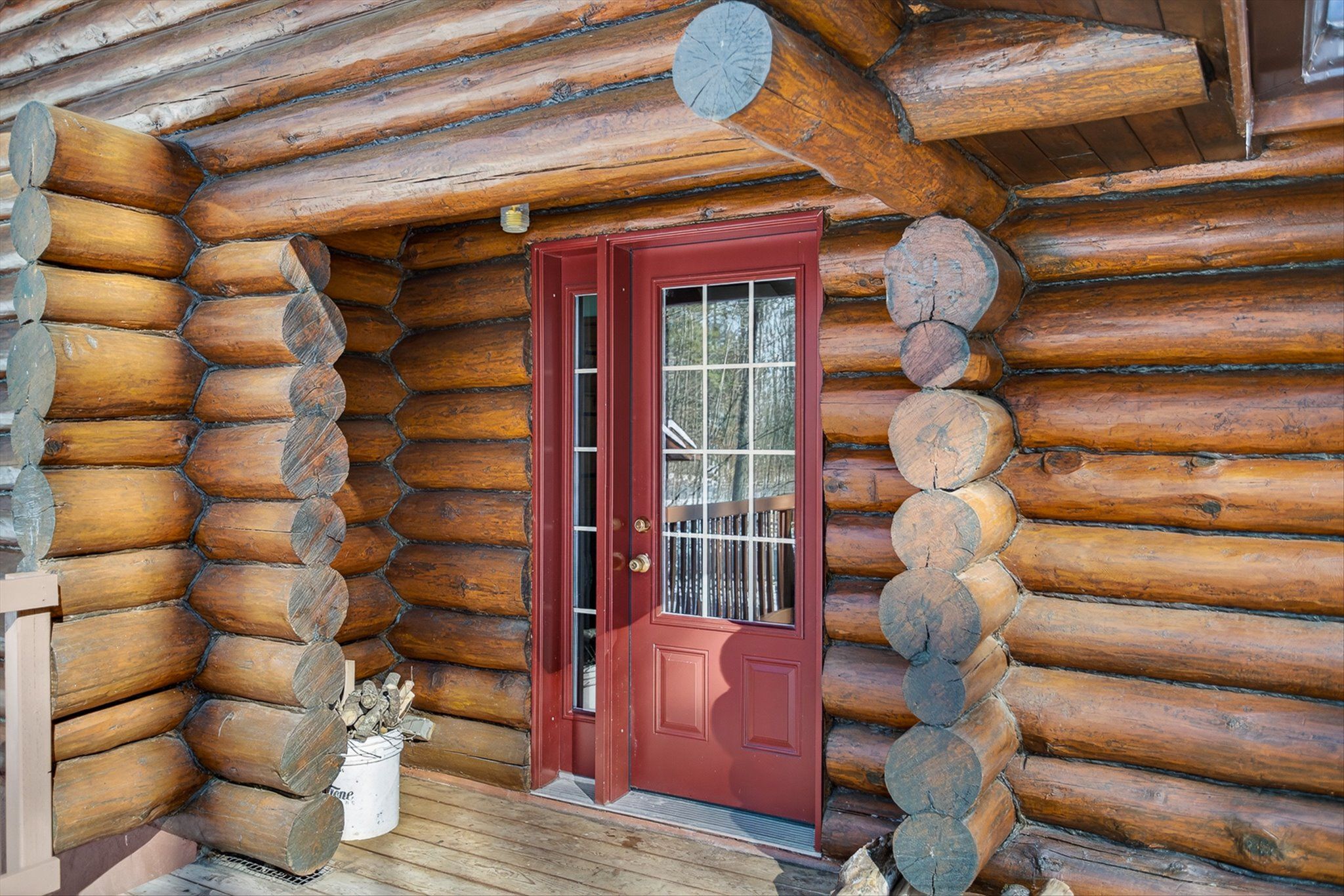 • Charming log home on over an acre of private, treed property.