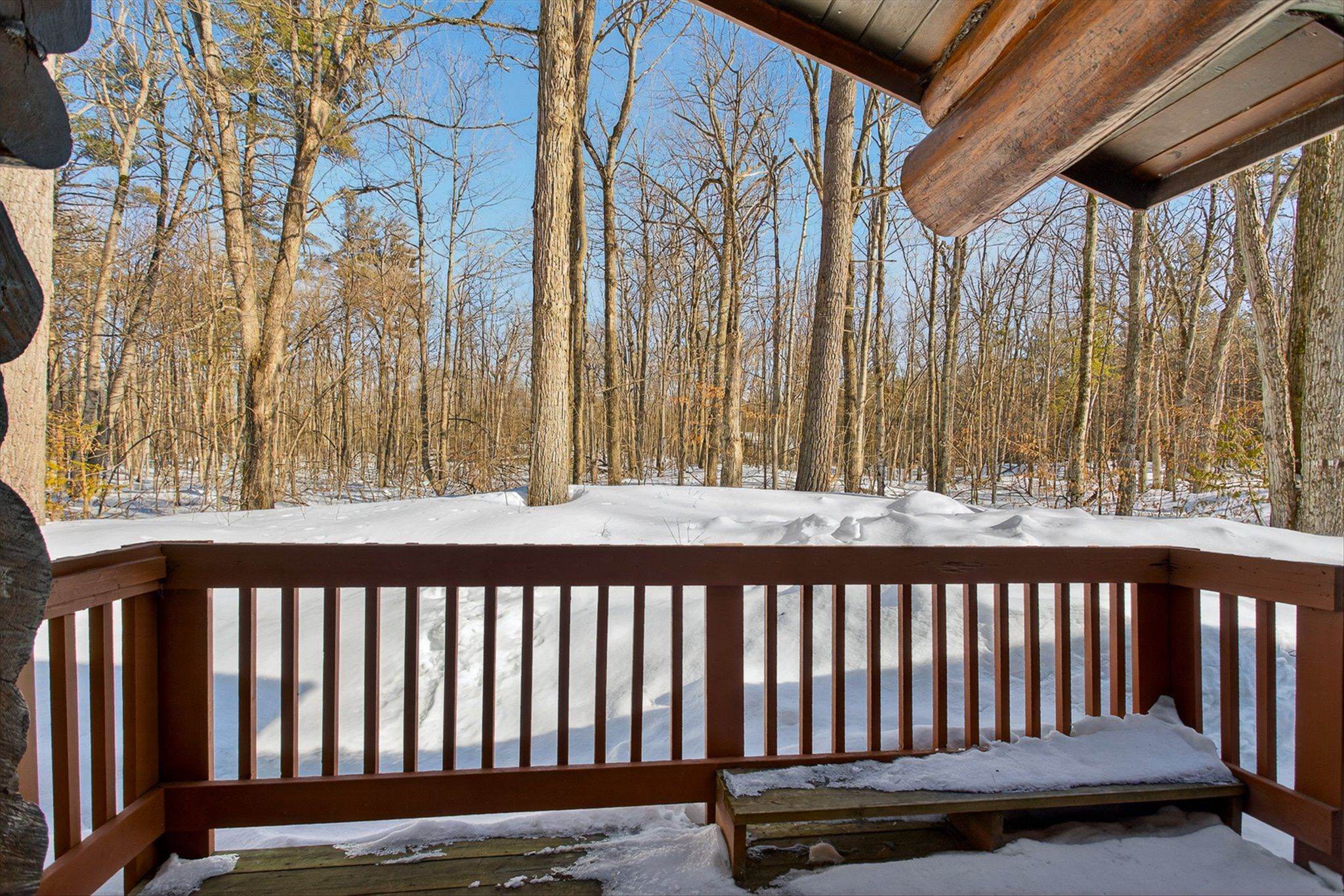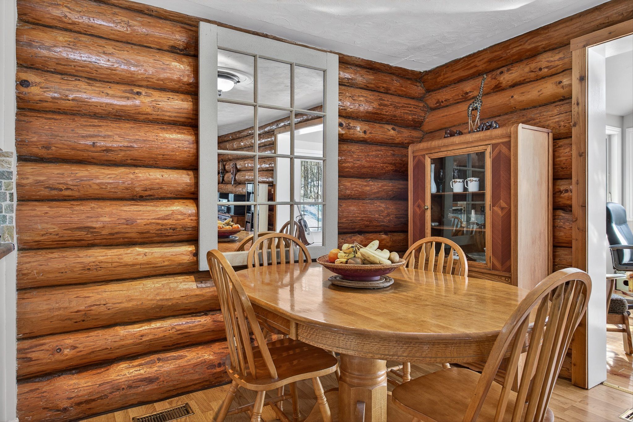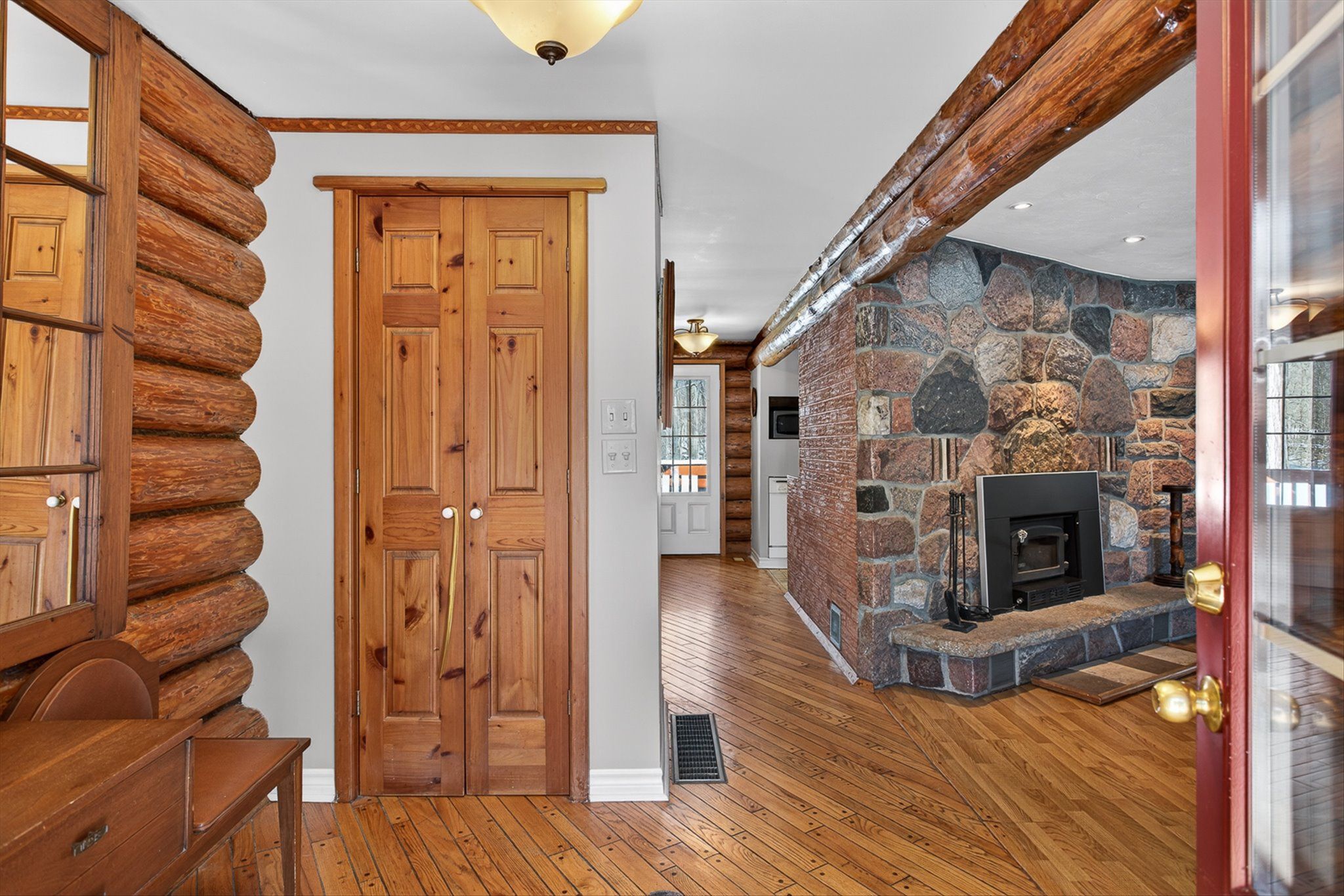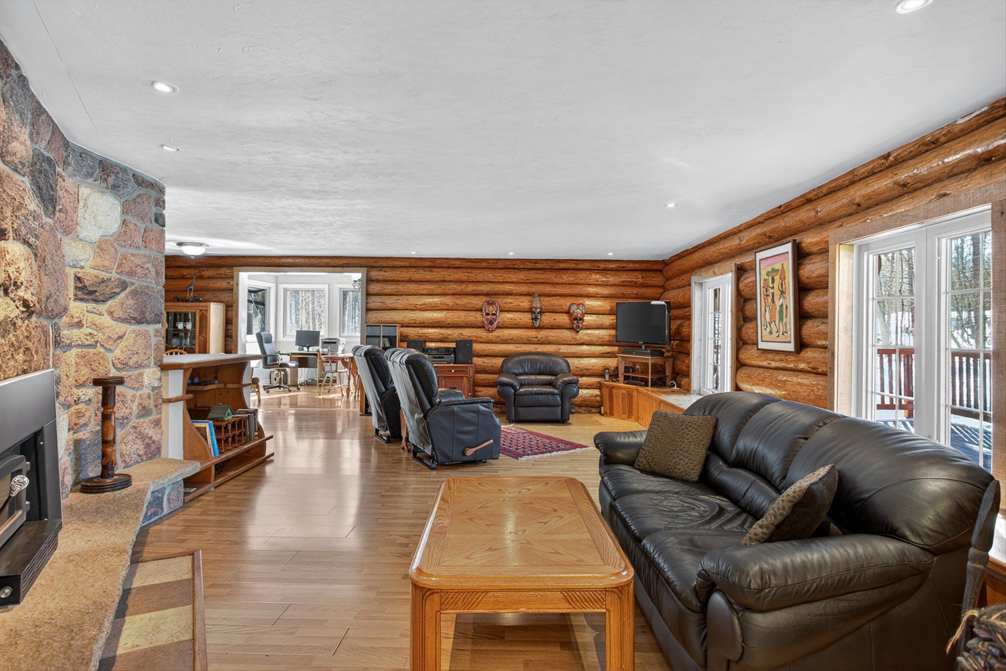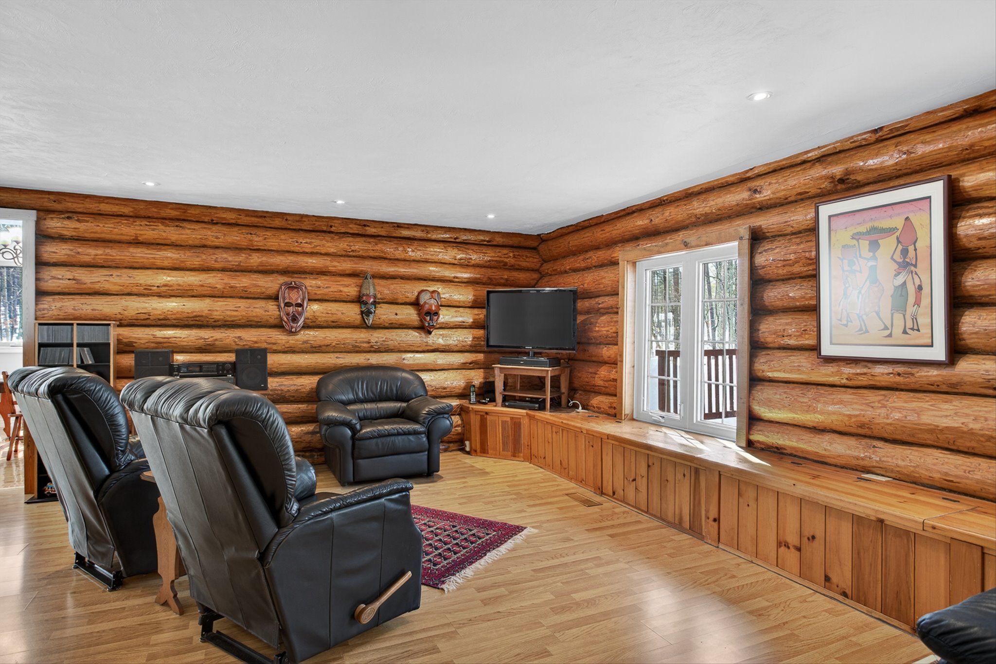 • Charming log home on over an acre of private, treed property.