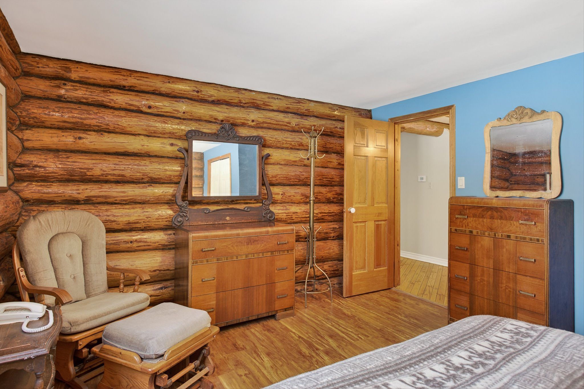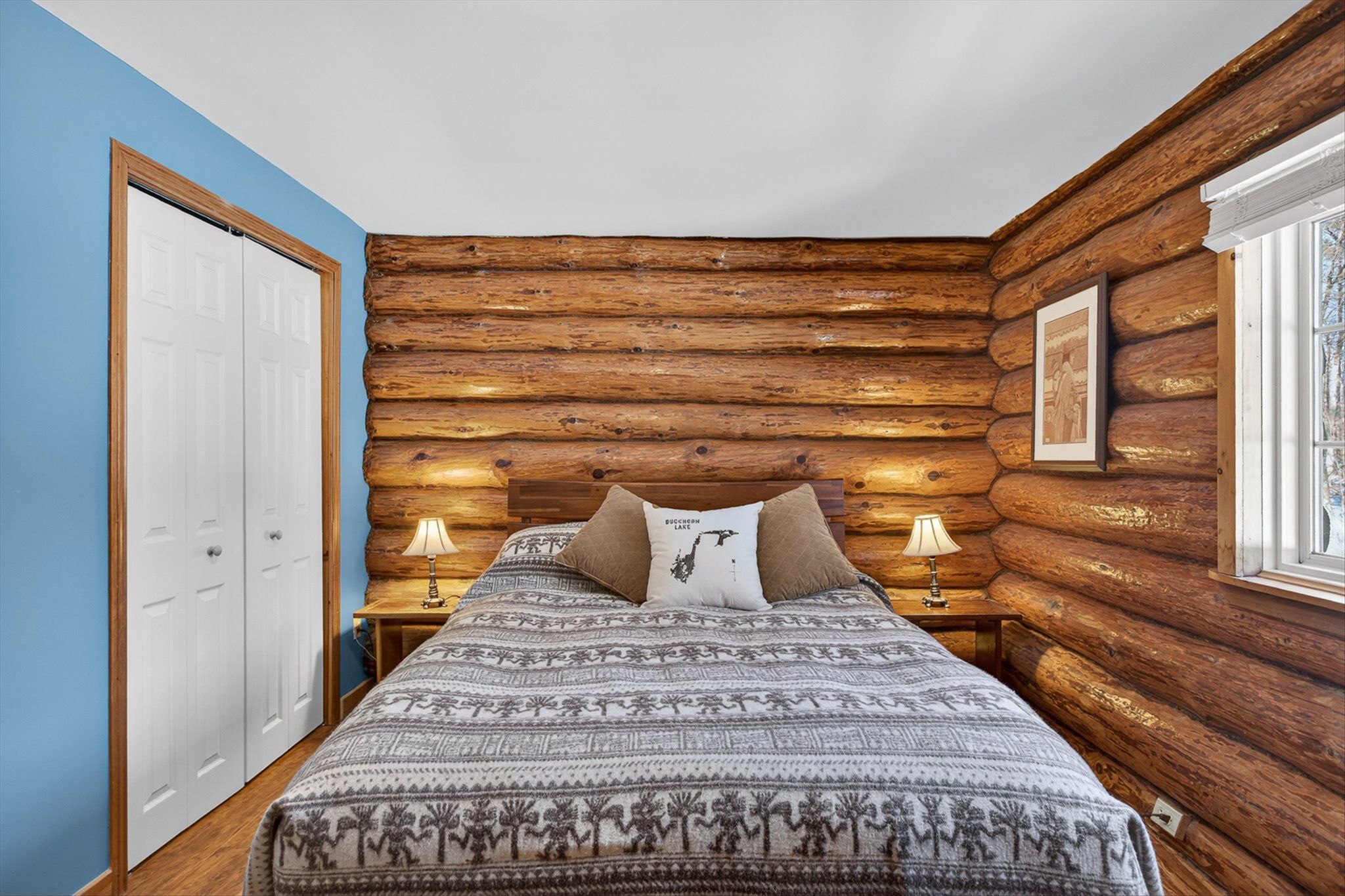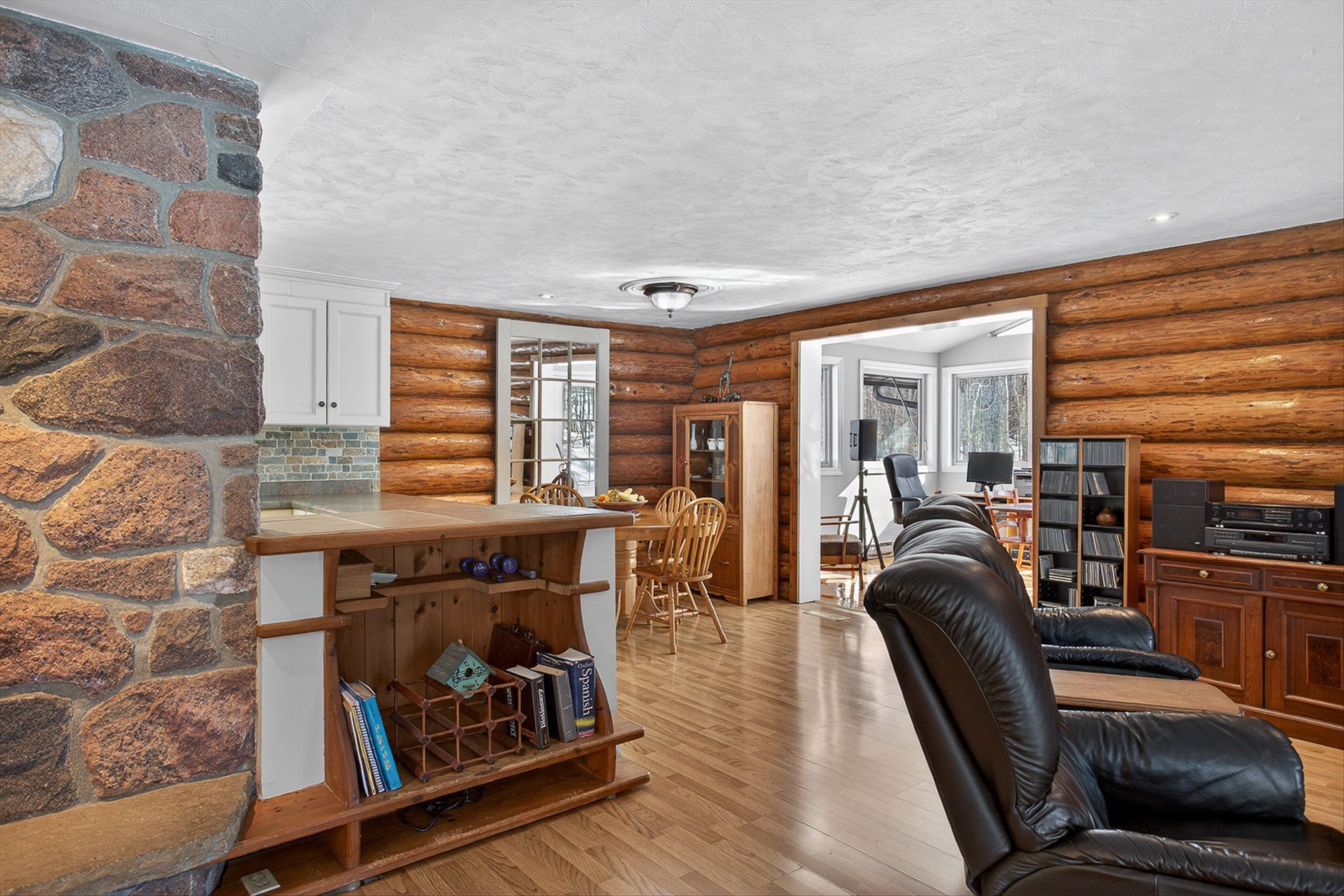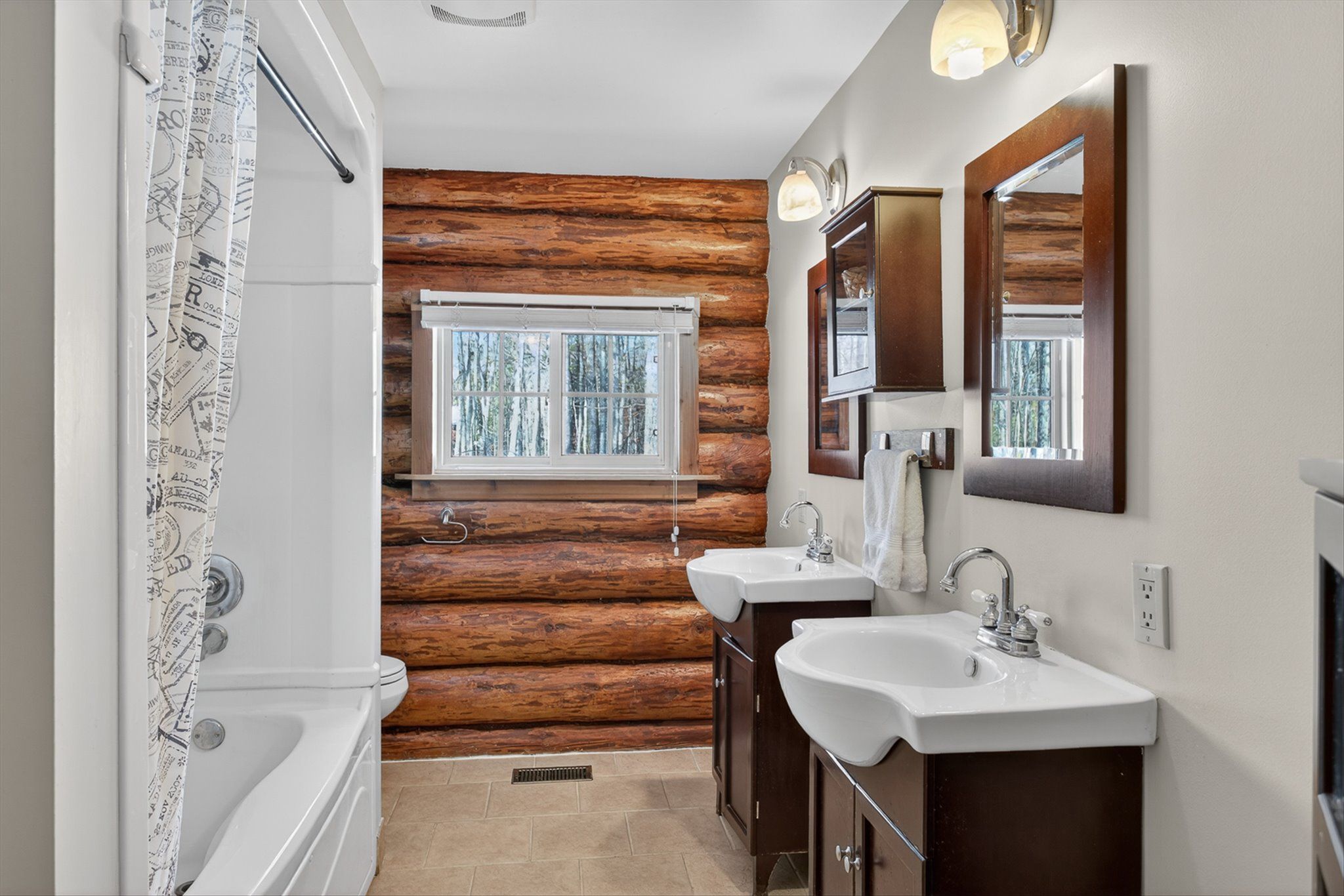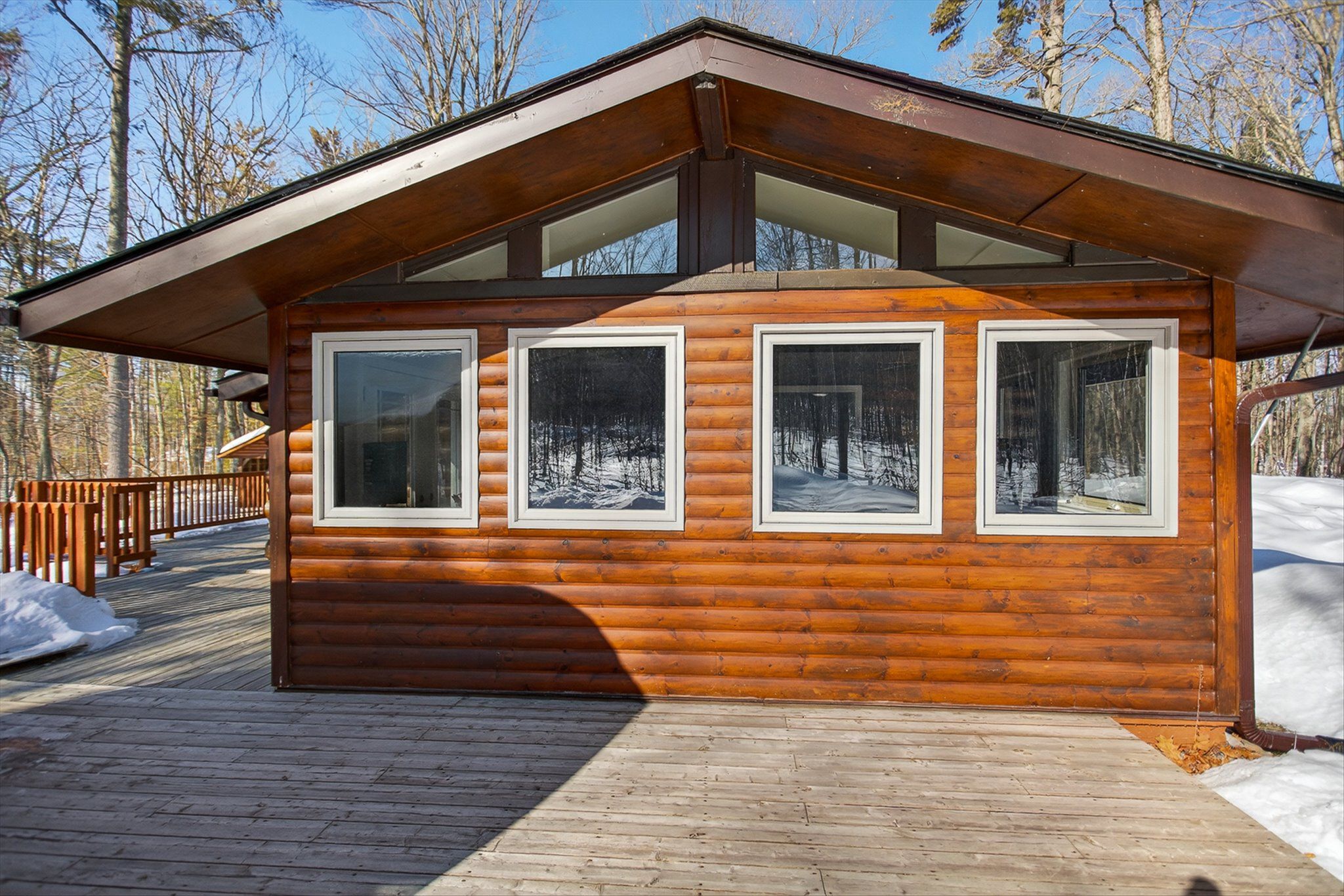 • Charming log home on over an acre of private, treed property.