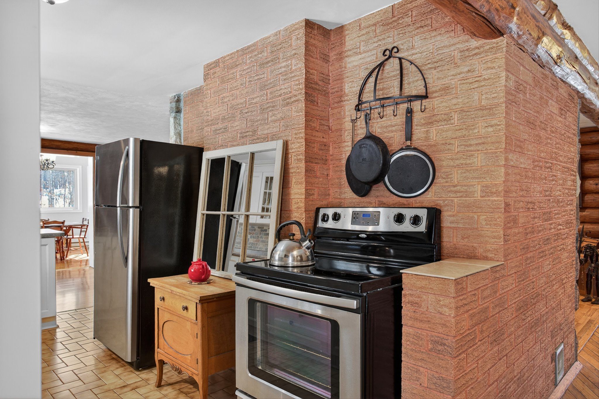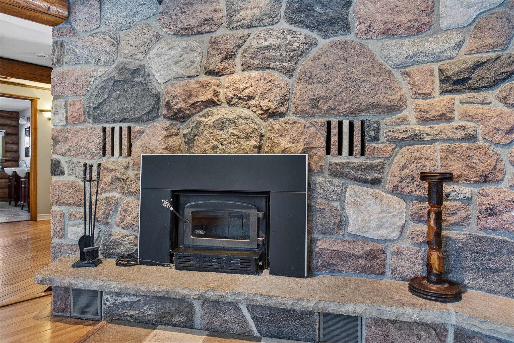 • Well-maintained interior with hardwood floors and granite fireplace.