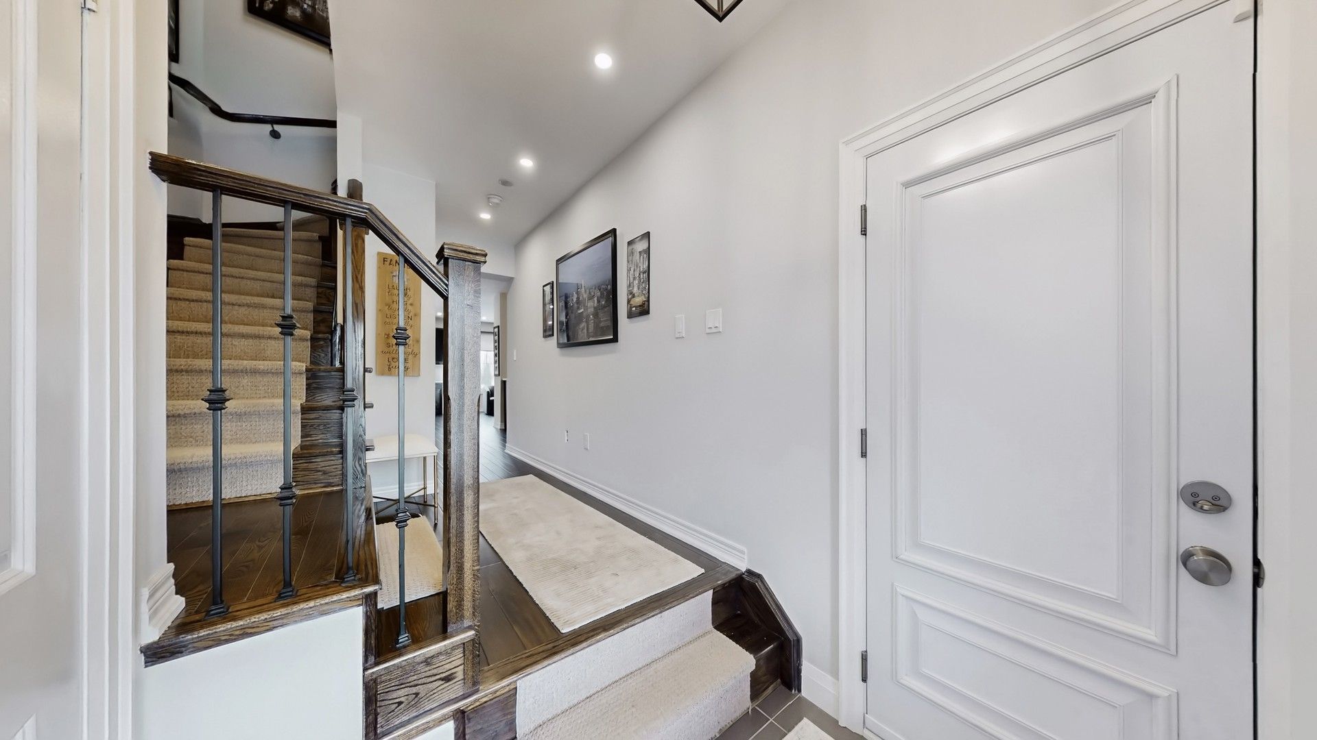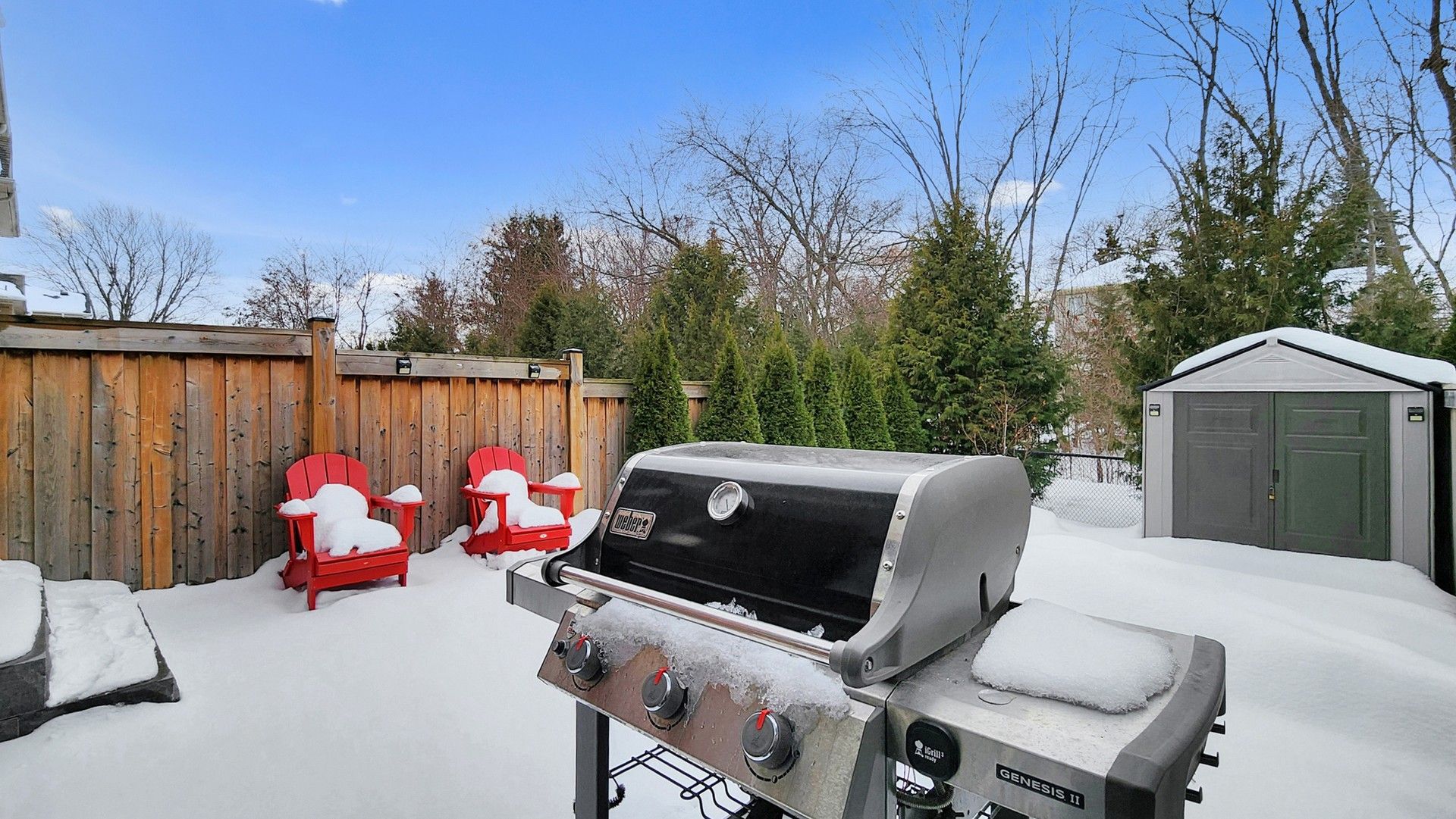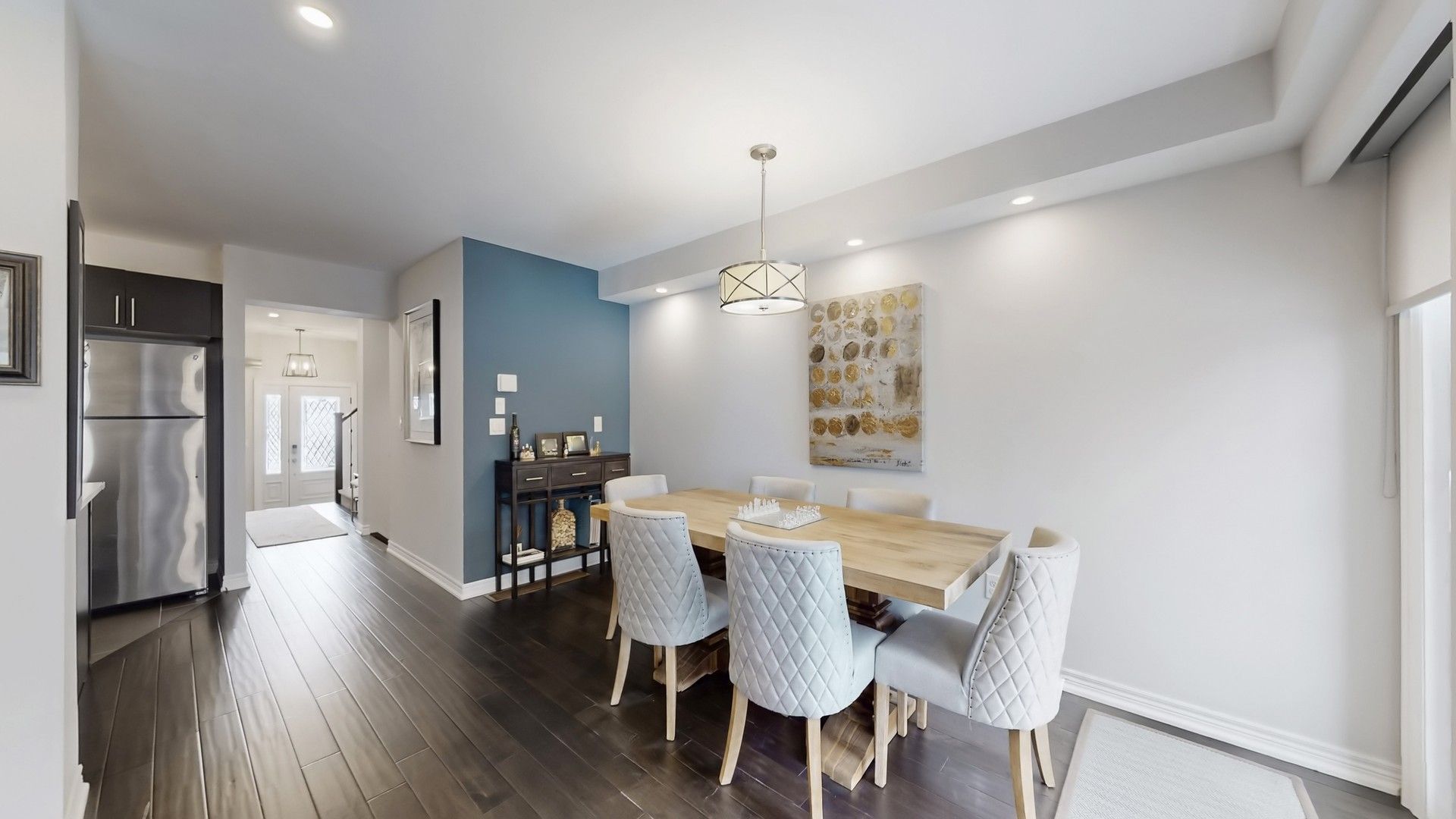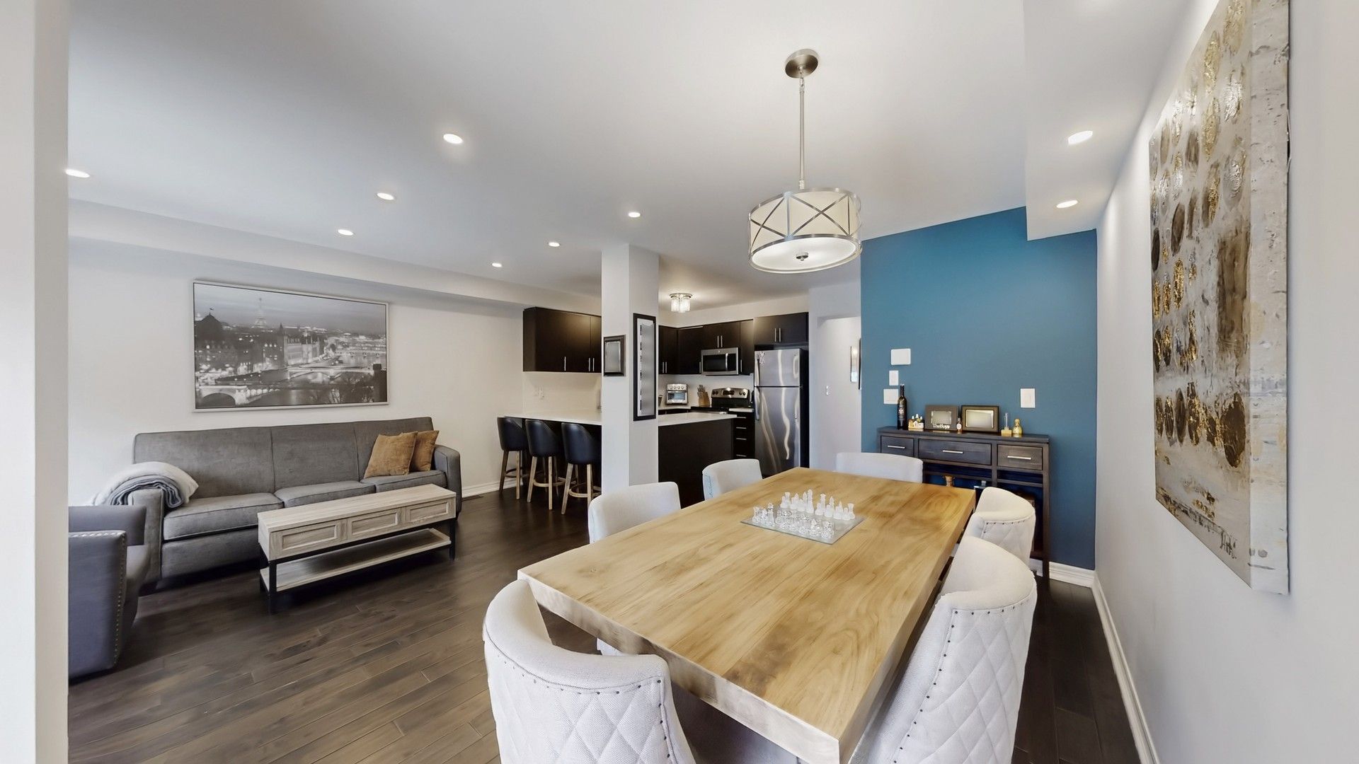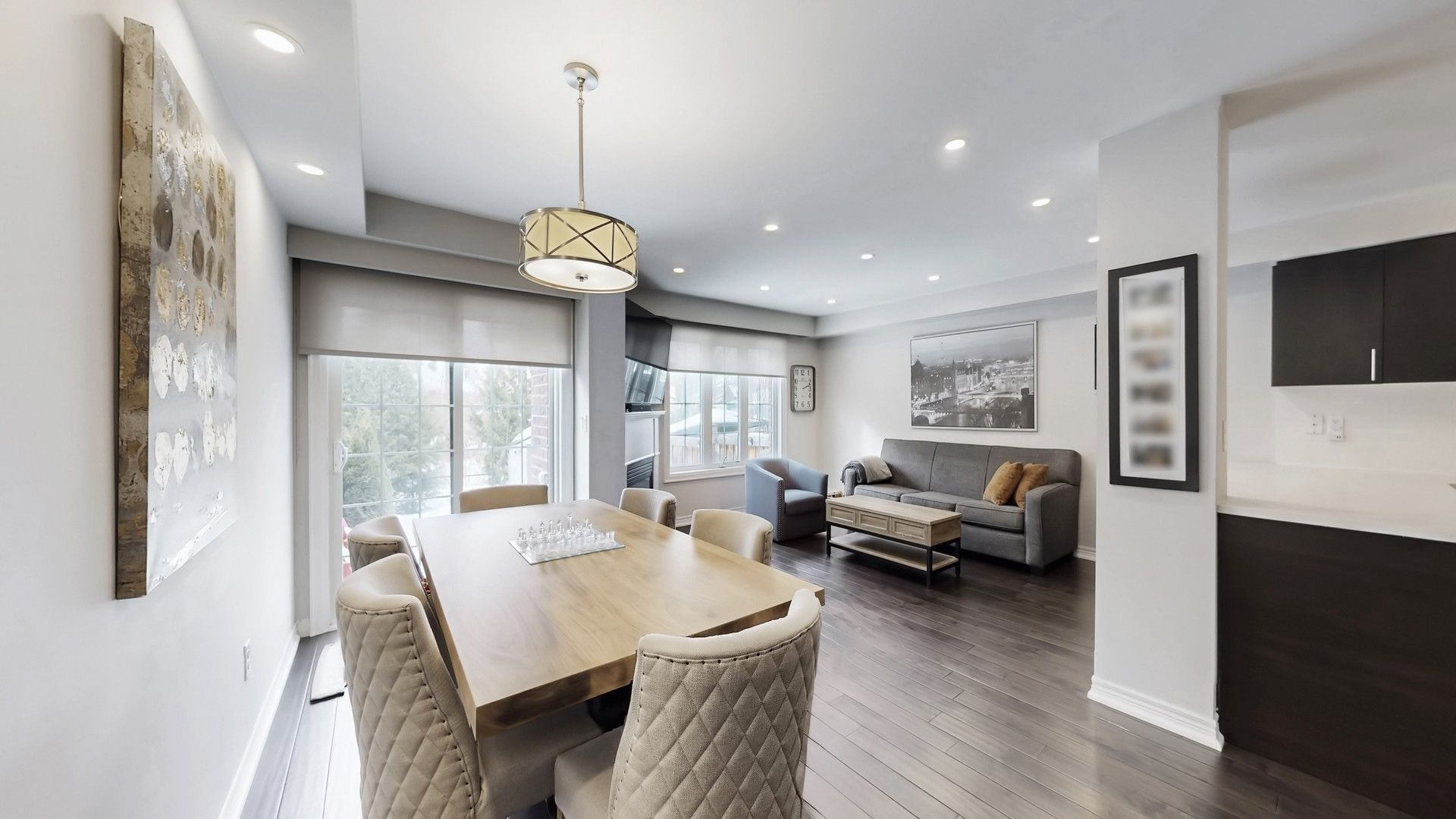 Step into the sought-after brooklyn model freehold townhome located in the highly desirable brooklin community of north whitby, known for its family-friendly streets, newer homes, top schools, and easy access to hwy 407 & 412. This stunning 3-bedroom home offers a fantastic open layout with extensive upgrades throughout. The main floor features smooth ceilings, gorgeous hand-scraped hardwood flooring, and a cozy gas fireplace, creating the perfect space for entertaining or relaxing. The upgraded chef's kitchen includes quartz countertops, undermount sink, crackled pearl backsplash, stainless steel appliances, and upgraded faucet, all thoughtfully designed for style and functionality. Upstairs you'll find spacious bedrooms, an elegant oak staircase with wrought iron pickets, upgraded trim, fresh professional paint, and premium custom window coverings including sunscreen roller shades on the main floor, vinyl plantation shutters in the front bedrooms, and custom roman shades in the primary bedroom and ensuite. The finished garage is ideal for any car enthusiast with epoxy floors and metal checker-plate baseboards, plus extra driveway parking. The basement is 95% complete, needing only doors and paint - perfect for a future rec room, gym, or in-law space. Step outside to your private backyard retreat featuring a stone patio (2017), storage shed, mature trees, and no rear neighbours. The home has been professionally landscaped front and back with lovely stonework, offering incredible curb appeal and low-maintenance outdoor living. Located close to schools, parks, public transit, shopping, ems & police services, this home shows true pride of ownership and is completely move-in ready.