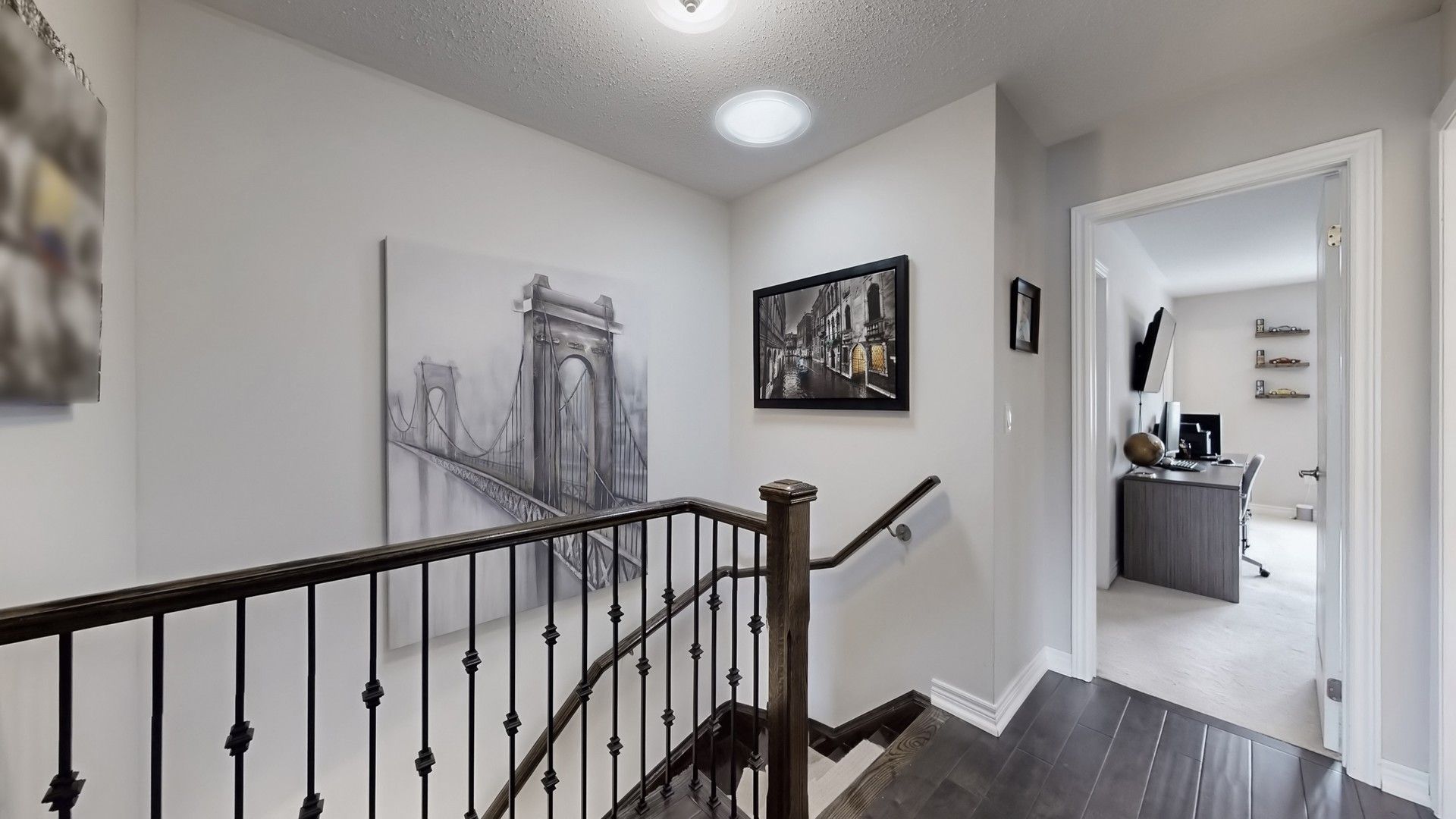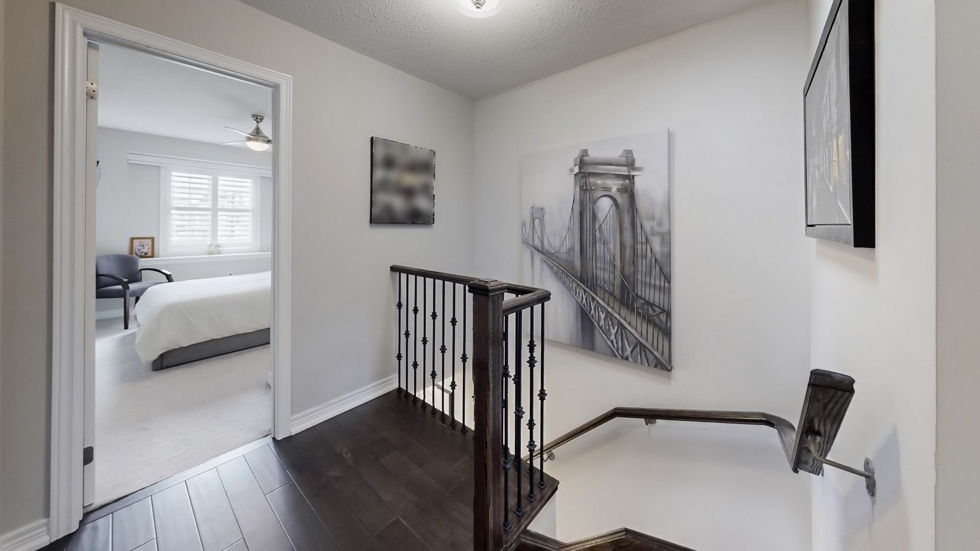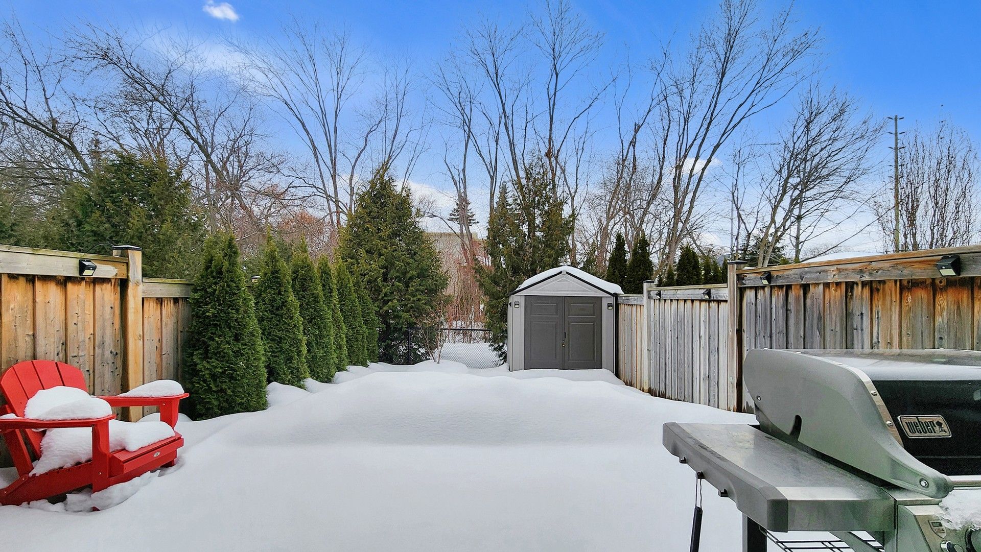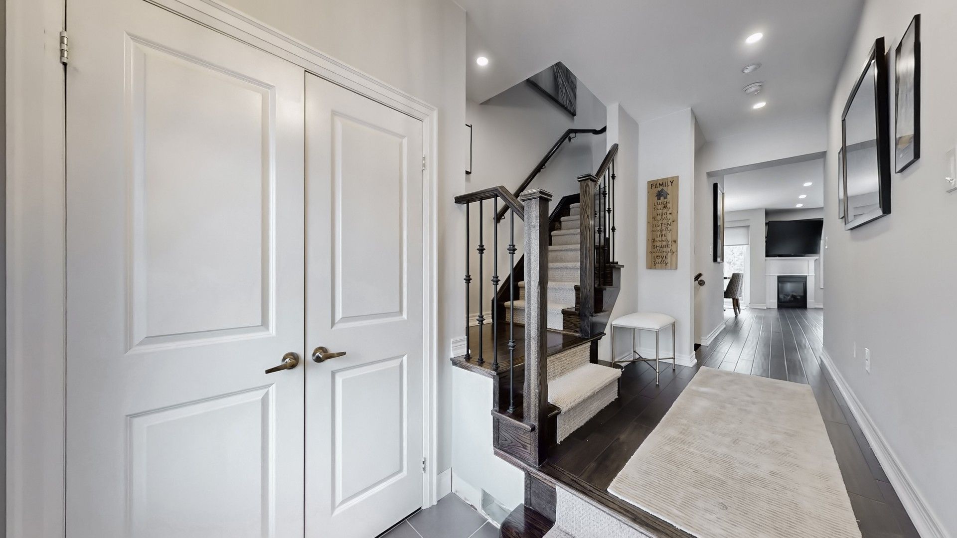 Step into the sought-after brooklyn model freehold townhome located in the highly desirable brooklin community of north whitby, known for its family-friendly streets, newer homes, top schools, and easy access to hwy 407 & 412. This stunning 3-bedroom home offers a fantastic open layout with extensive upgrades throughout. The main floor features smooth ceilings, gorgeous hand-scraped hardwood flooring, and a cozy gas fireplace, creating the perfect space for entertaining or relaxing. The upgraded chef's kitchen includes quartz countertops, undermount sink, crackled pearl backsplash, stainless steel appliances, and upgraded faucet, all thoughtfully designed for style and functionality. Upstairs you'll find spacious bedrooms, an elegant oak staircase with wrought iron pickets, upgraded trim, fresh professional paint, and premium custom window coverings including sunscreen roller shades on the main floor, vinyl plantation shutters in the front bedrooms, and custom roman shades in the primary bedroom and ensuite. The finished garage is ideal for any car enthusiast with epoxy floors and metal checker-plate baseboards, plus extra driveway parking. The basement is 95% complete, needing only doors and paint - perfect for a future rec room, gym, or in-law space. Step outside to your private backyard retreat featuring a stone patio (2017), storage shed, mature trees, and no rear neighbours. The home has been professionally landscaped front and back with lovely stonework, offering incredible curb appeal and low-maintenance outdoor living. Located close to schools, parks, public transit, shopping, ems & police services, this home shows true pride of ownership and is completely move-in ready.