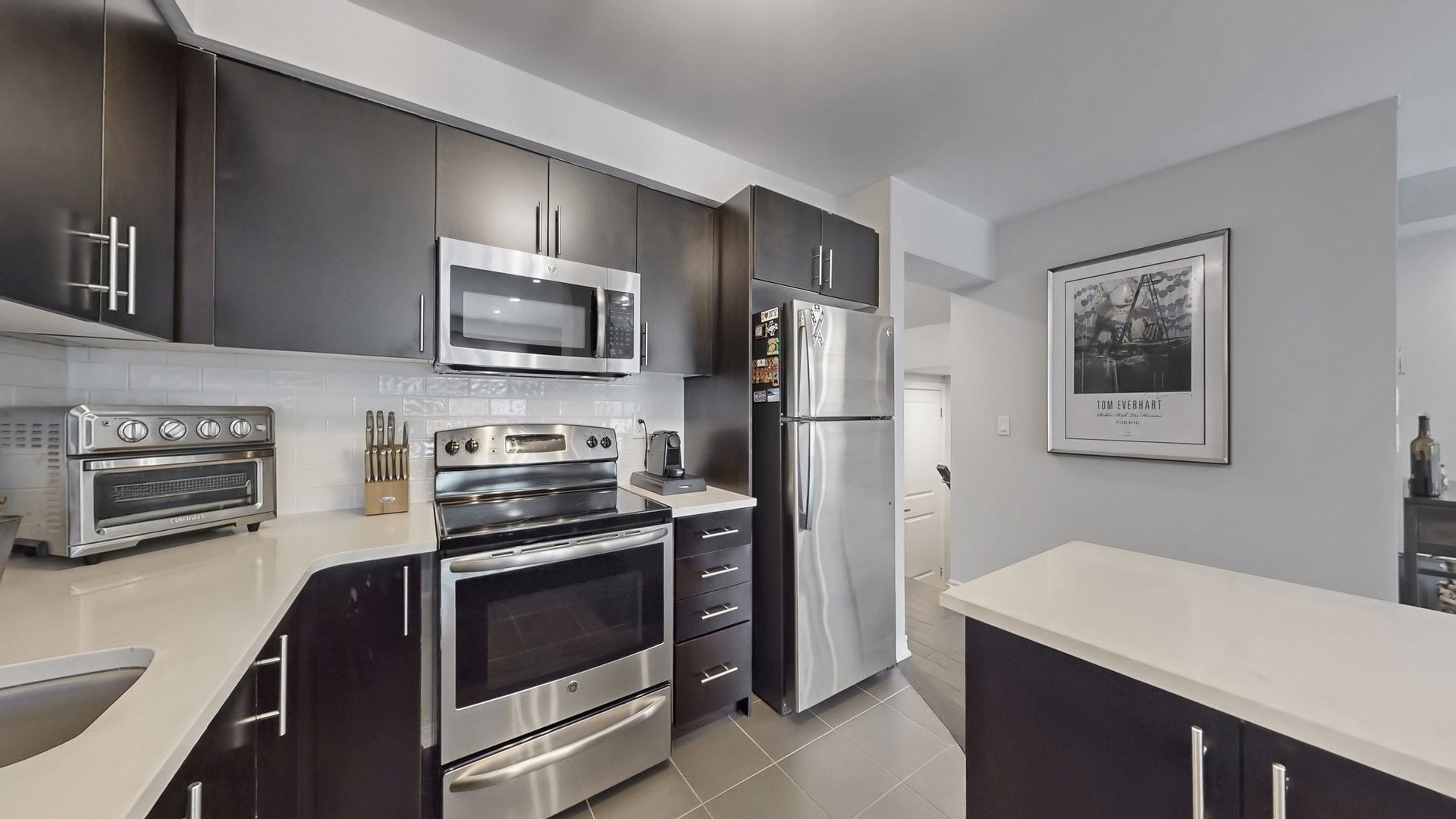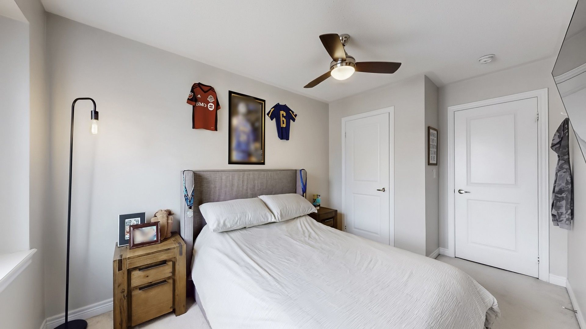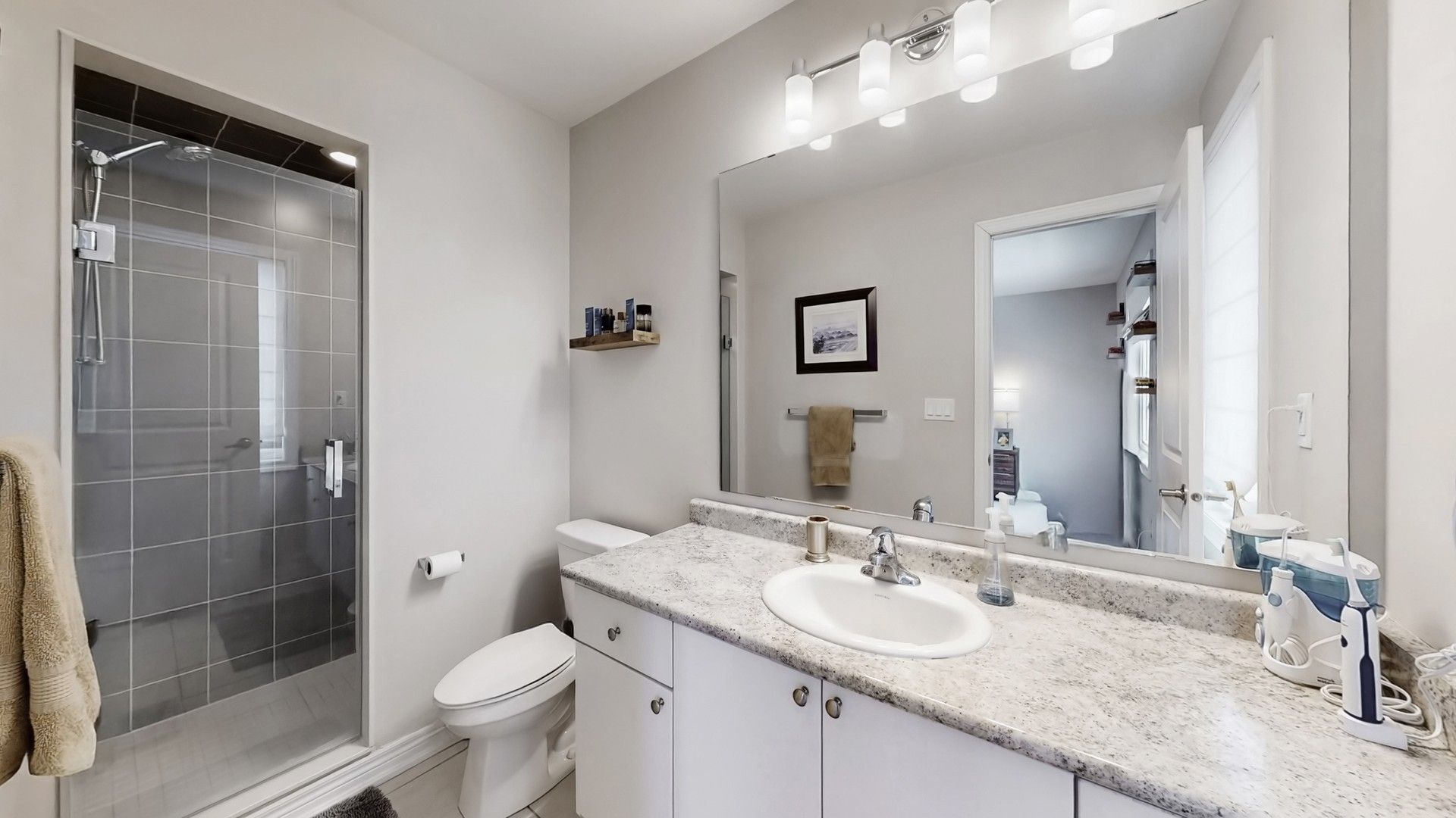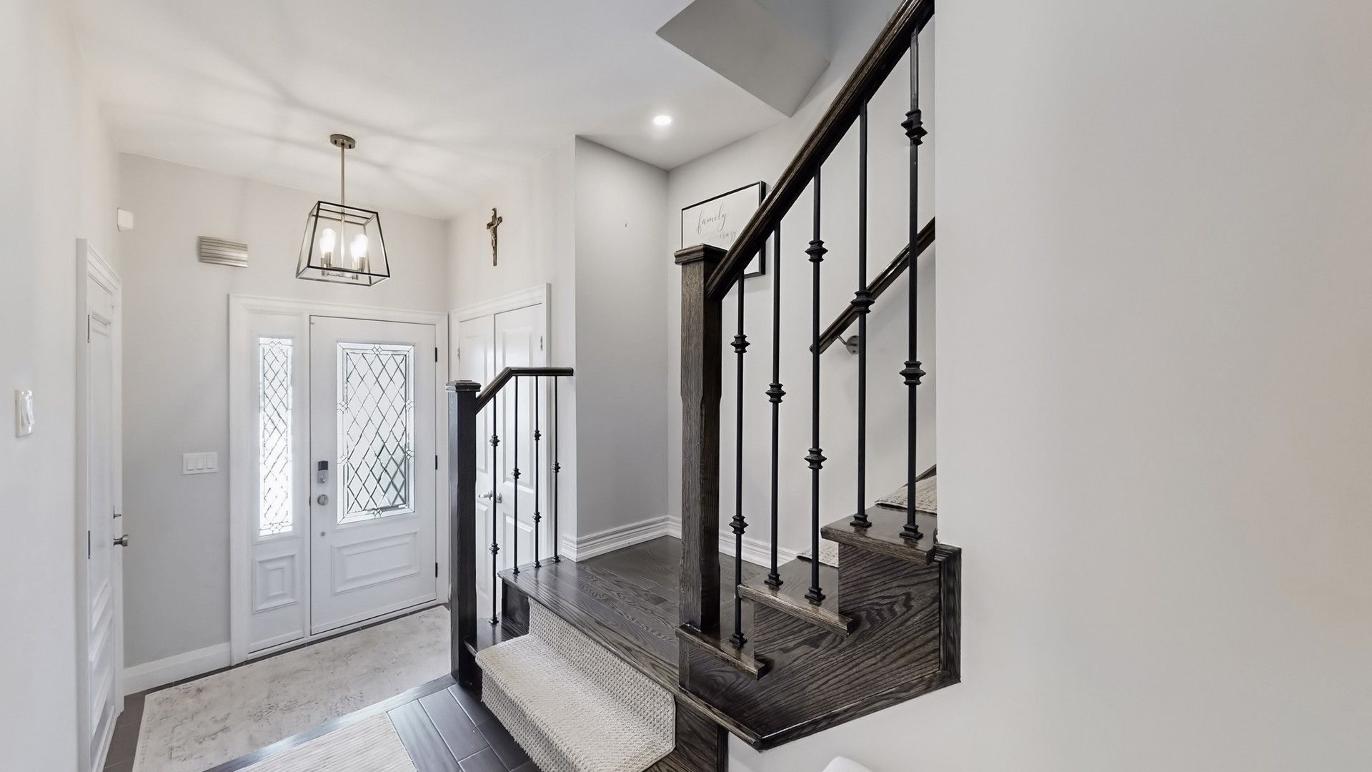 Step into the sought-after brooklyn model freehold townhome located in the highly desirable brooklin community of north whitby, known for its family-friendly streets, newer homes, top schools, and easy access to hwy 407 & 412. This stunning 3-bedroom home offers a fantastic open layout with extensive upgrades throughout. The main floor features smooth ceilings, gorgeous hand-scraped hardwood flooring, and a cozy gas fireplace, creating the perfect space for entertaining or relaxing. The upgraded chef's kitchen includes quartz countertops, undermount sink, crackled pearl backsplash, stainless steel appliances, and upgraded faucet, all thoughtfully designed for style and functionality. Upstairs you'll find spacious bedrooms, an elegant oak staircase with wrought iron pickets, upgraded trim, fresh professional paint, and premium custom window coverings including sunscreen roller shades on the main floor, vinyl plantation shutters in the front bedrooms, and custom roman shades in the primary bedroom and ensuite. The finished garage is ideal for any car enthusiast with epoxy floors and metal checker-plate baseboards, plus extra driveway parking. The basement is 95% complete, needing only doors and paint - perfect for a future rec room, gym, or in-law space. Step outside to your private backyard retreat featuring a stone patio (2017), storage shed, mature trees, and no rear neighbours. The home has been professionally landscaped front and back with lovely stonework, offering incredible curb appeal and low-maintenance outdoor living. Located close to schools, parks, public transit, shopping, ems & police services, this home shows true pride of ownership and is completely move-in ready.