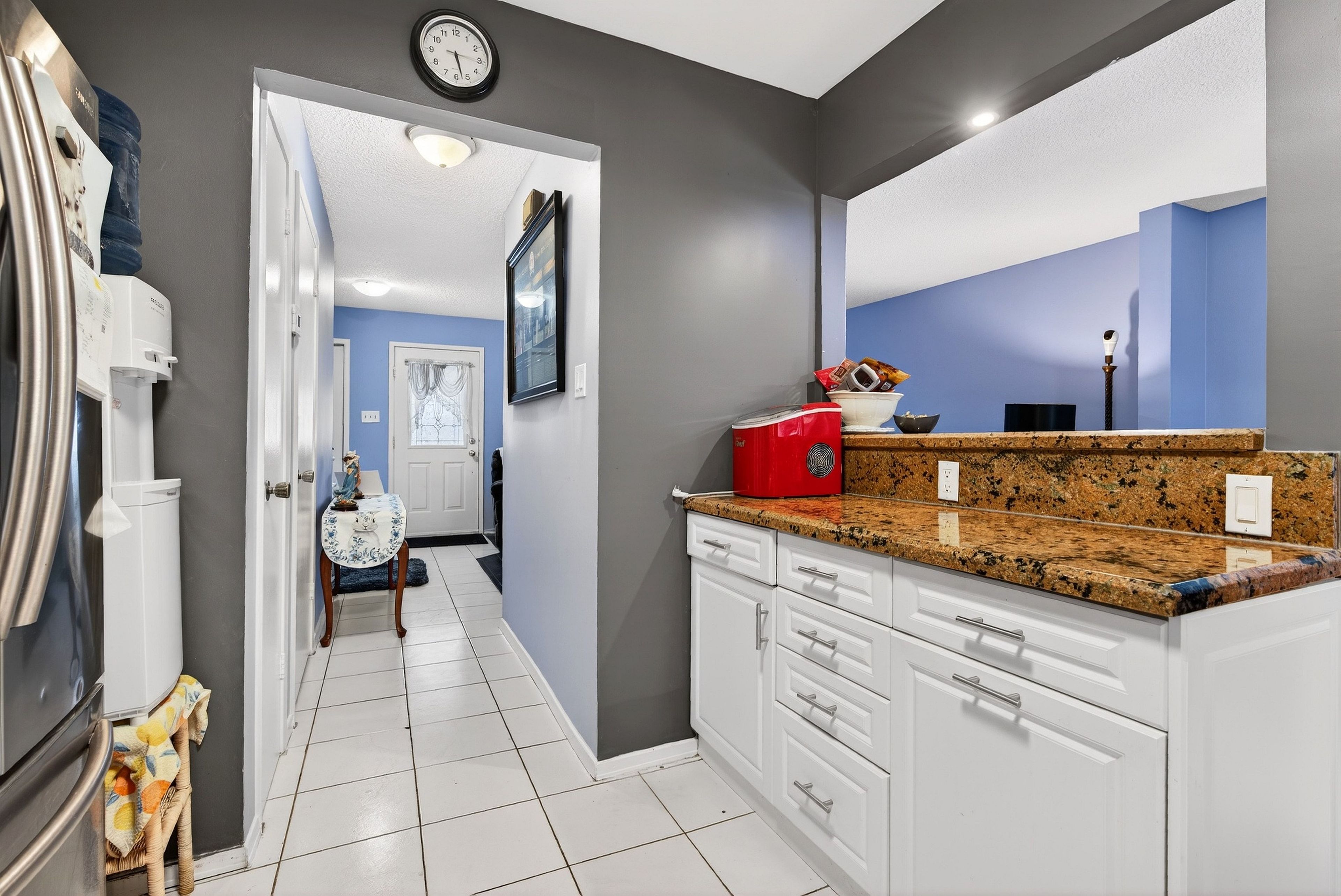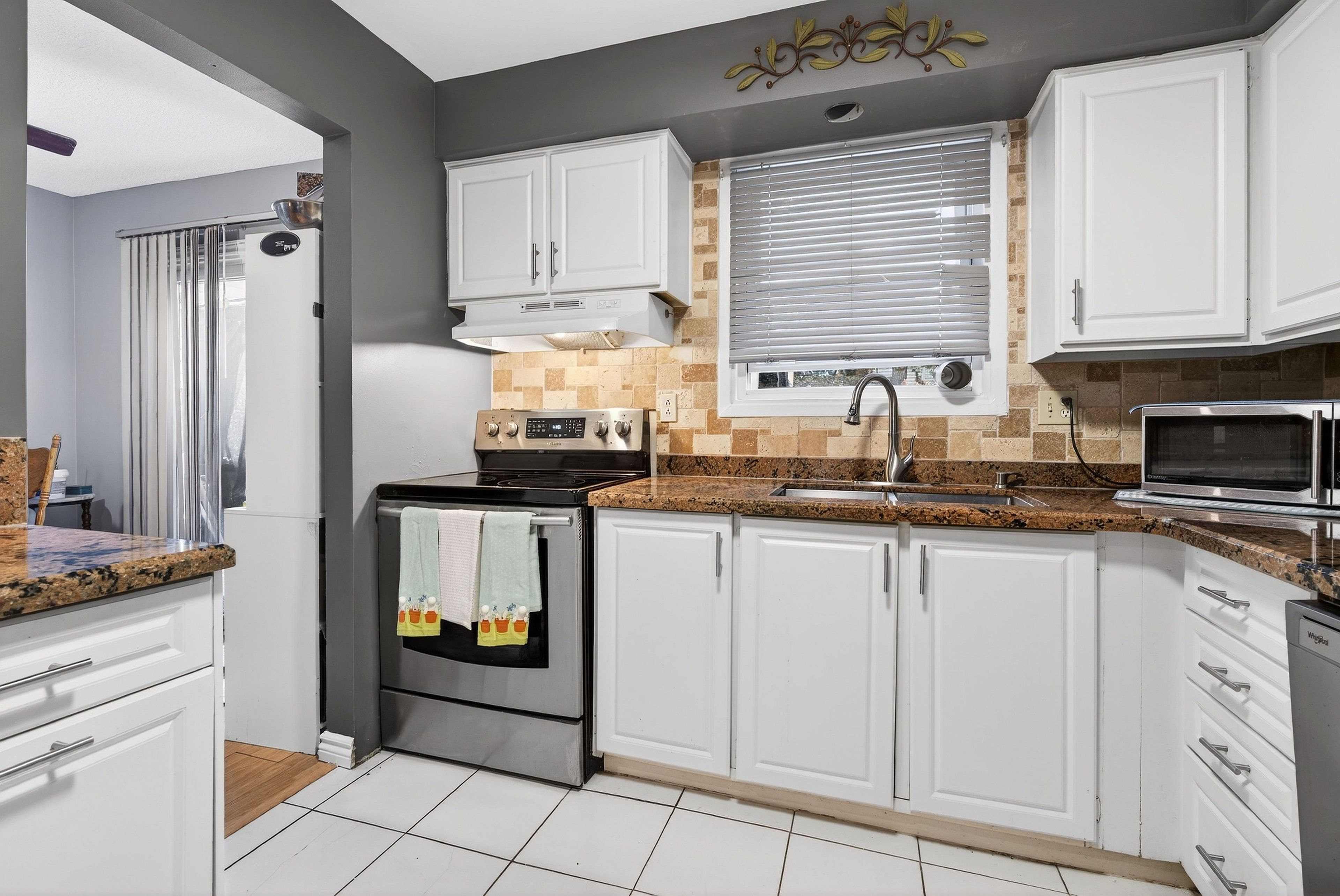 • Bright kitchen featuring granite countertops and modern finishes.