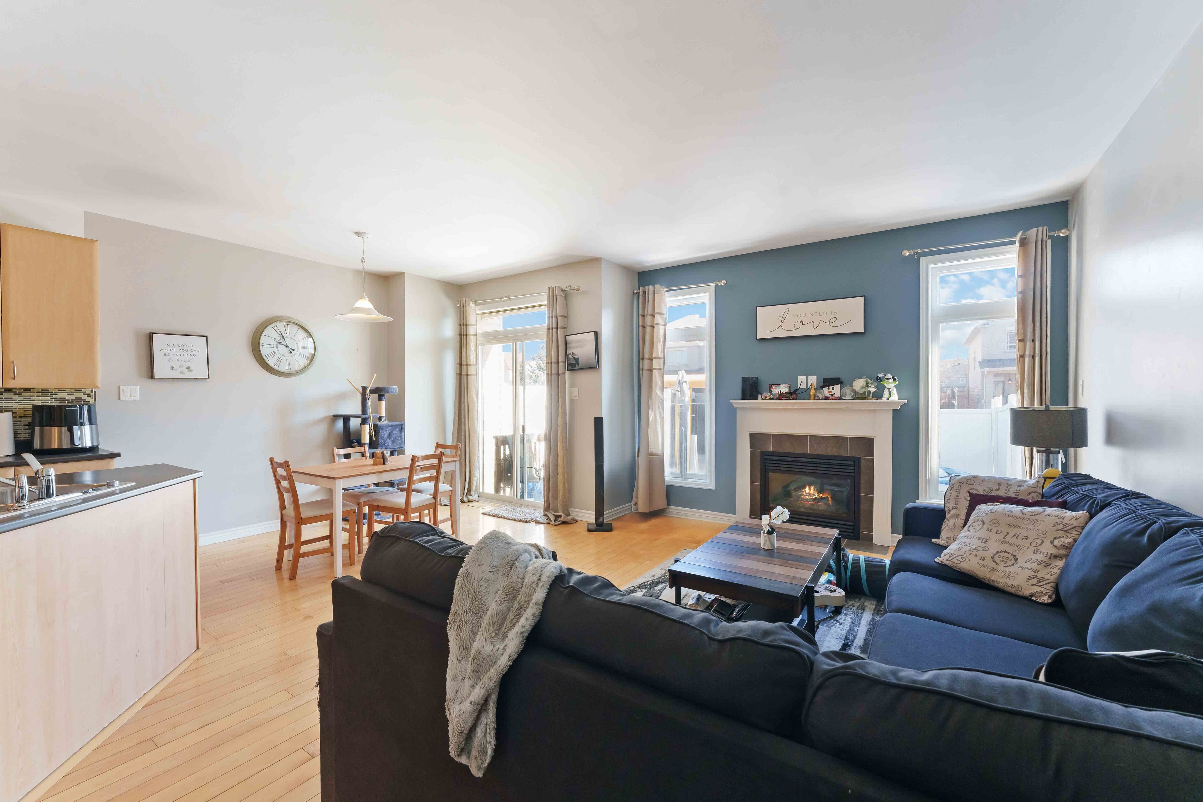 Beautiful executive townhome in desirable bradley estates. Featuring a welcoming front entrance with 10' ceiling and an open-concept main floor with 9' ceilings, hardwood and ceramic flooring, large windows, and a cozy gas fireplace. Spacious kitchen with abundant cabinetry, perfect for entertaining, flowing into the dining area which direct access to the backyard. The primary bedroom offers a walk-in closet and ensuite with soaker tub and separate shower. Two additional west-facing bedrooms provide great afternoon sunlight, with one offering access to a private balcony. Fully finished basement with recreation room and window for natural light. Nice backyard with fully fancy. Conveniently located close to athletic clubs, restaurants, parks, and amenities.