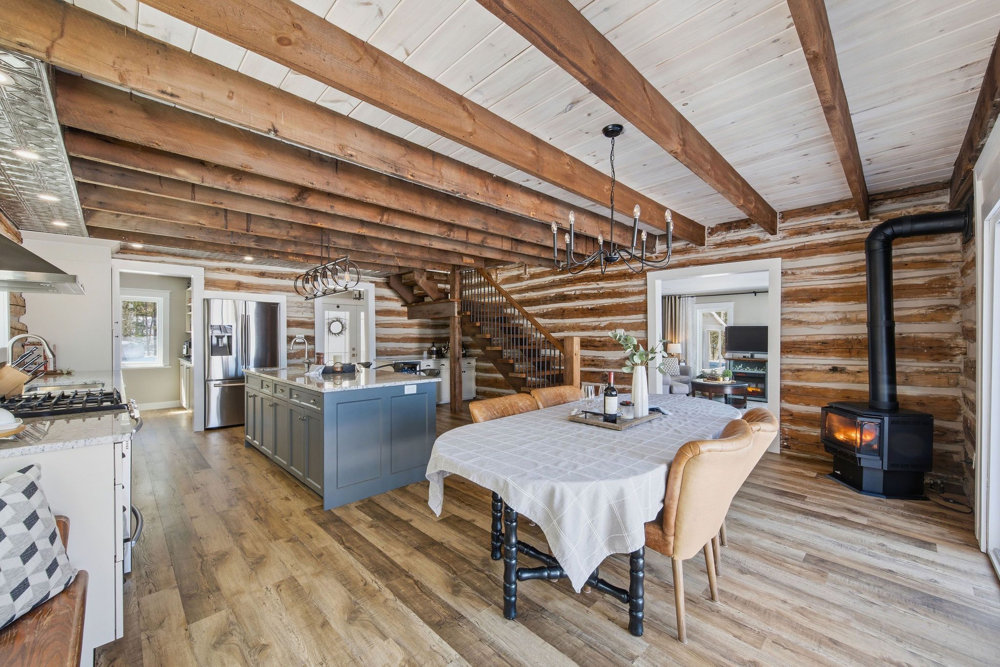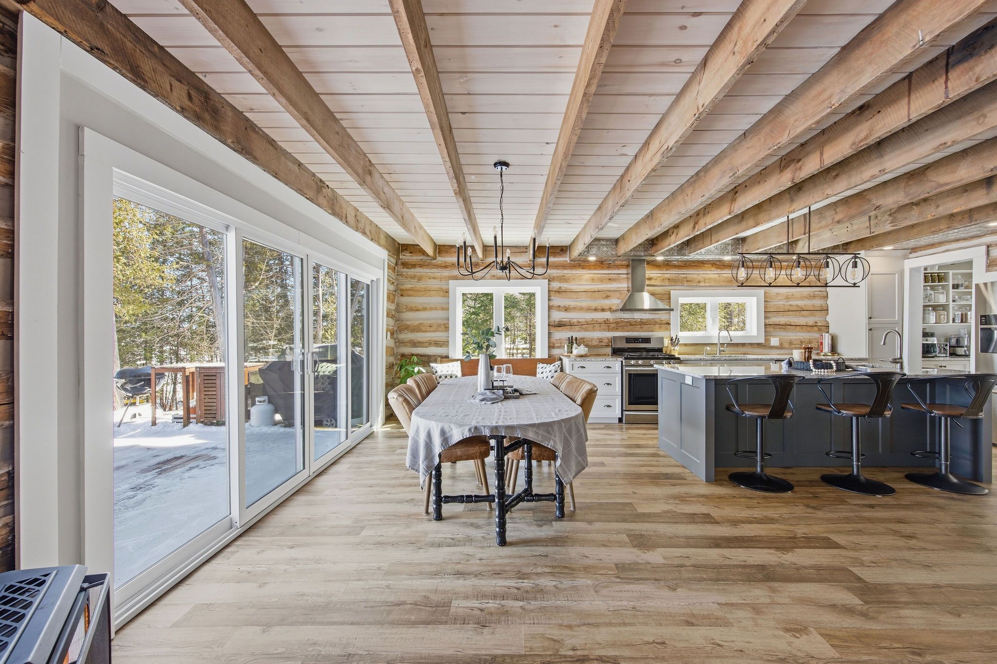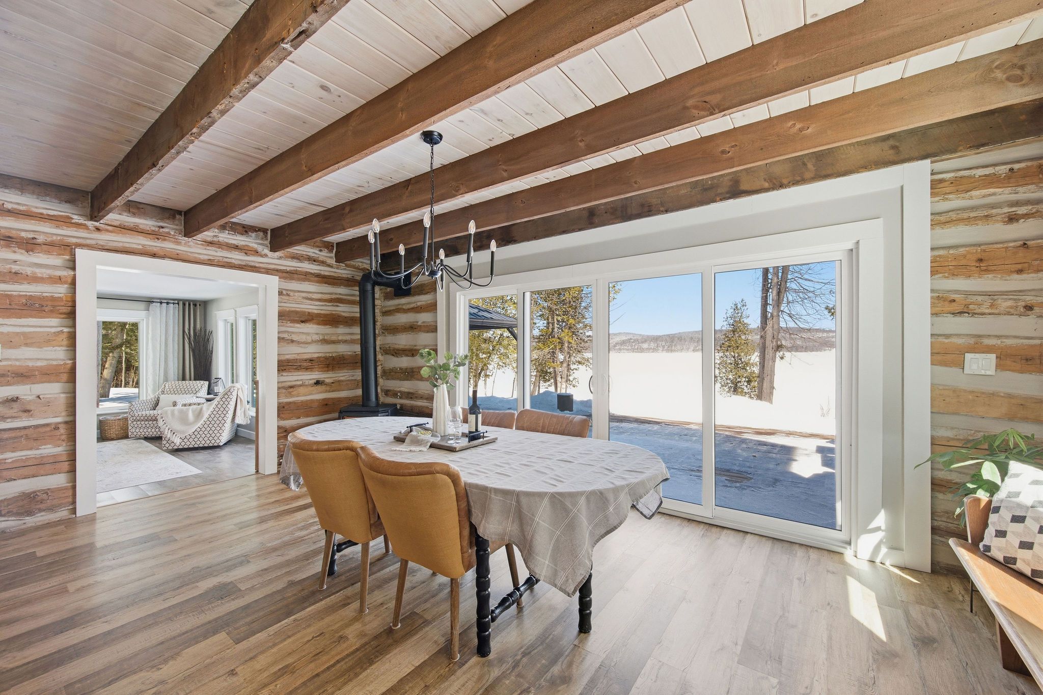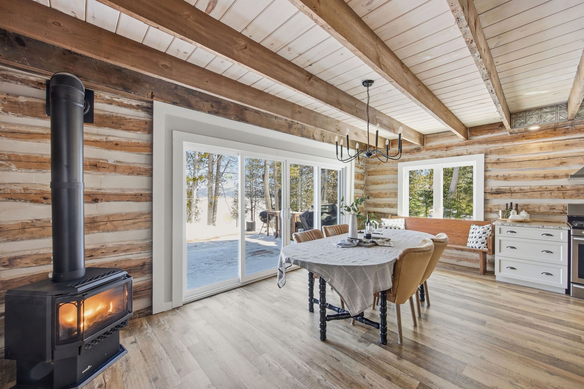 Set on a private, treed lot with 154 feet of ottawa river frontage, this is a rare opportunity to own a truly special waterfront property. Tucked away from the road and surrounded by nature, the setting offers a sense of calm and privacy, with uninterrupted river views that carry through every principal space in the home. Custom-built and thoughtfully designed, this 2-bedroom, 2-bath residence blends comfort with timeless character. In-floor heating provides consistent warmth underfoot, while a gas fireplace adds both ambiance and function. Large windows frame the water from nearly every room, filling the home with natural light and creating a seamless connection to the outdoors. The layout is both functional and inviting, ideal for everyday living or weekend escapes. Each space has been carefully considered to maximize views, privacy, and ease of use. A heated bunkie offers flexible additional space-perfect for hosting guests, a private home office, or a quiet retreat. The newly built, oversized heated garage is a standout feature, offering ample room for vehicles, storage, and recreational equipment, with space to accommodate an active waterfront lifestyle. Whether you're enjoying morning coffee overlooking the river, spending afternoons on the water, or unwinding by the fire in the evening, this property delivers a lifestyle that is both relaxed and refined. A unique offering that combines privacy, natural beauty, and quality construction-just a short drive from town, yet a world away. This property has never been affected by flooding.