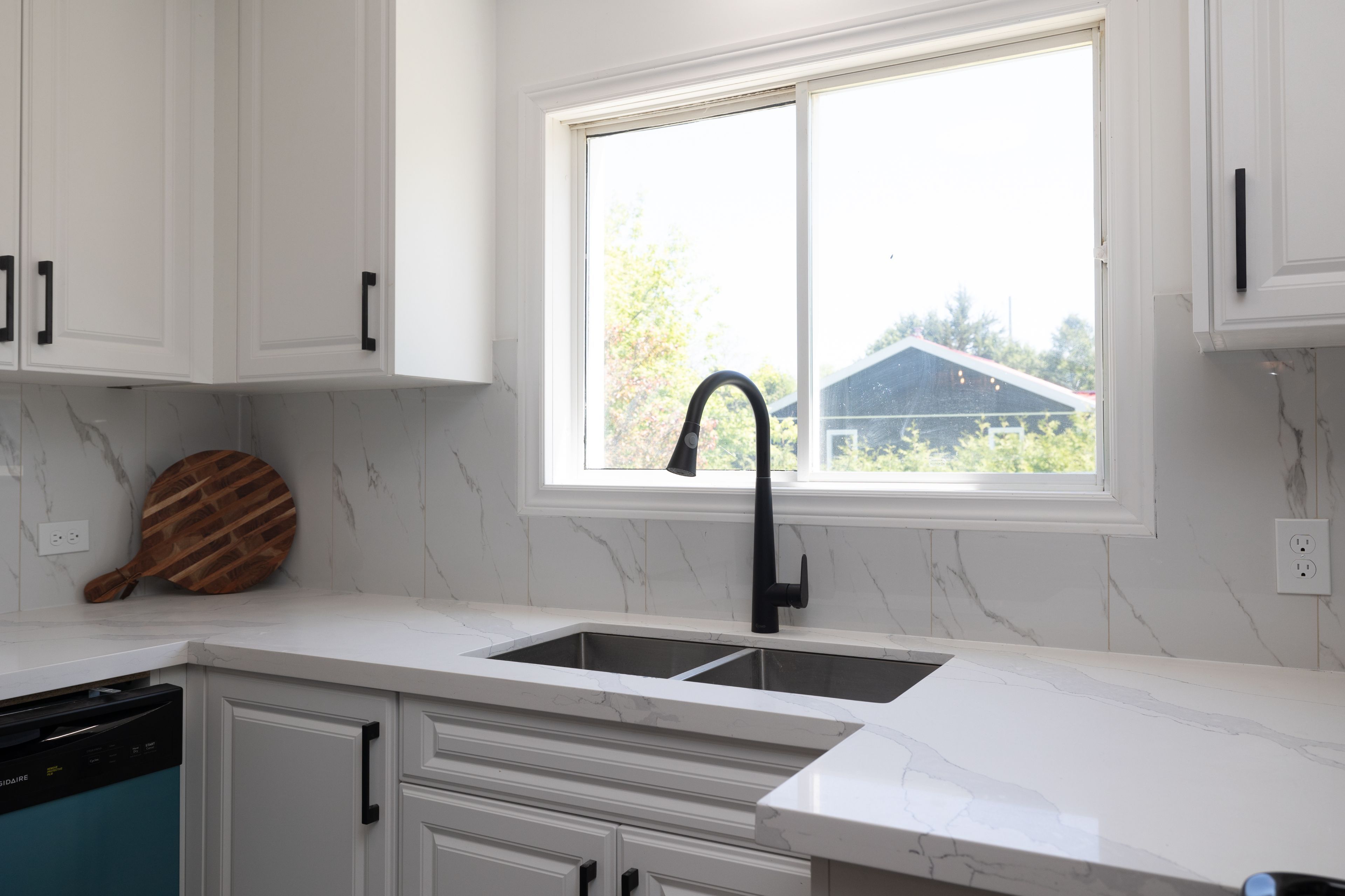 • New kitchen with stainless steel appliances and quartz countertops.