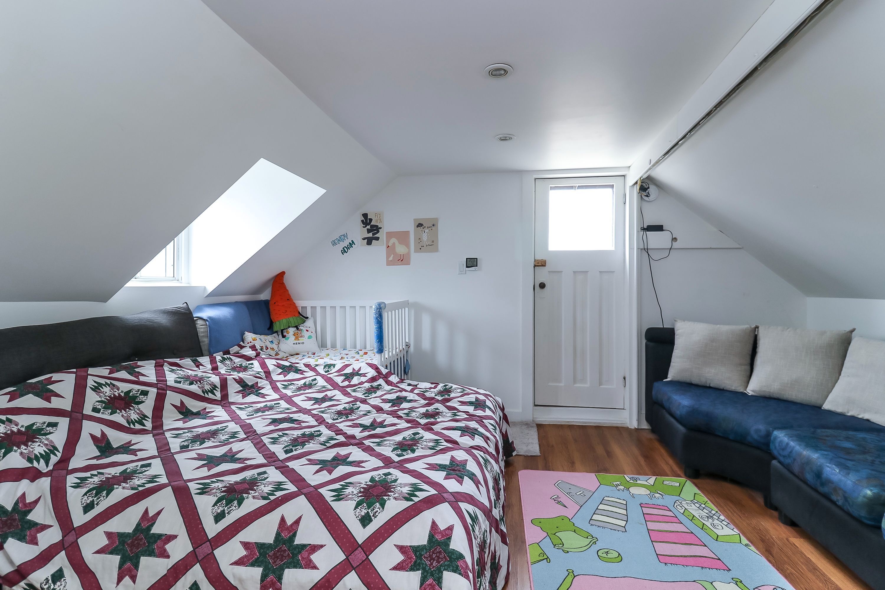 • Second floor den with built-in office nook and bedroom access to a deck.