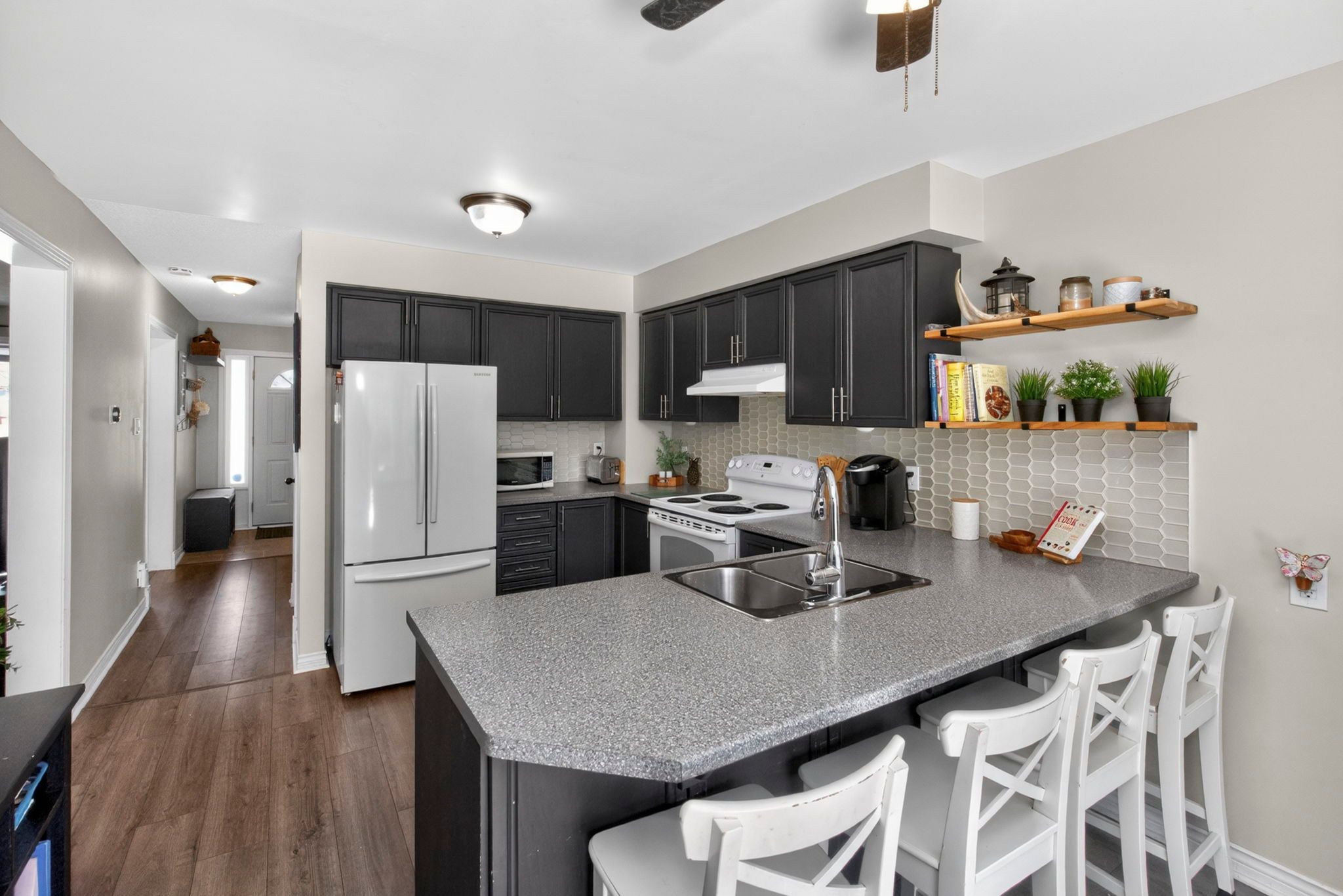 • Updated kitchen with breakfast bar and new appliances.