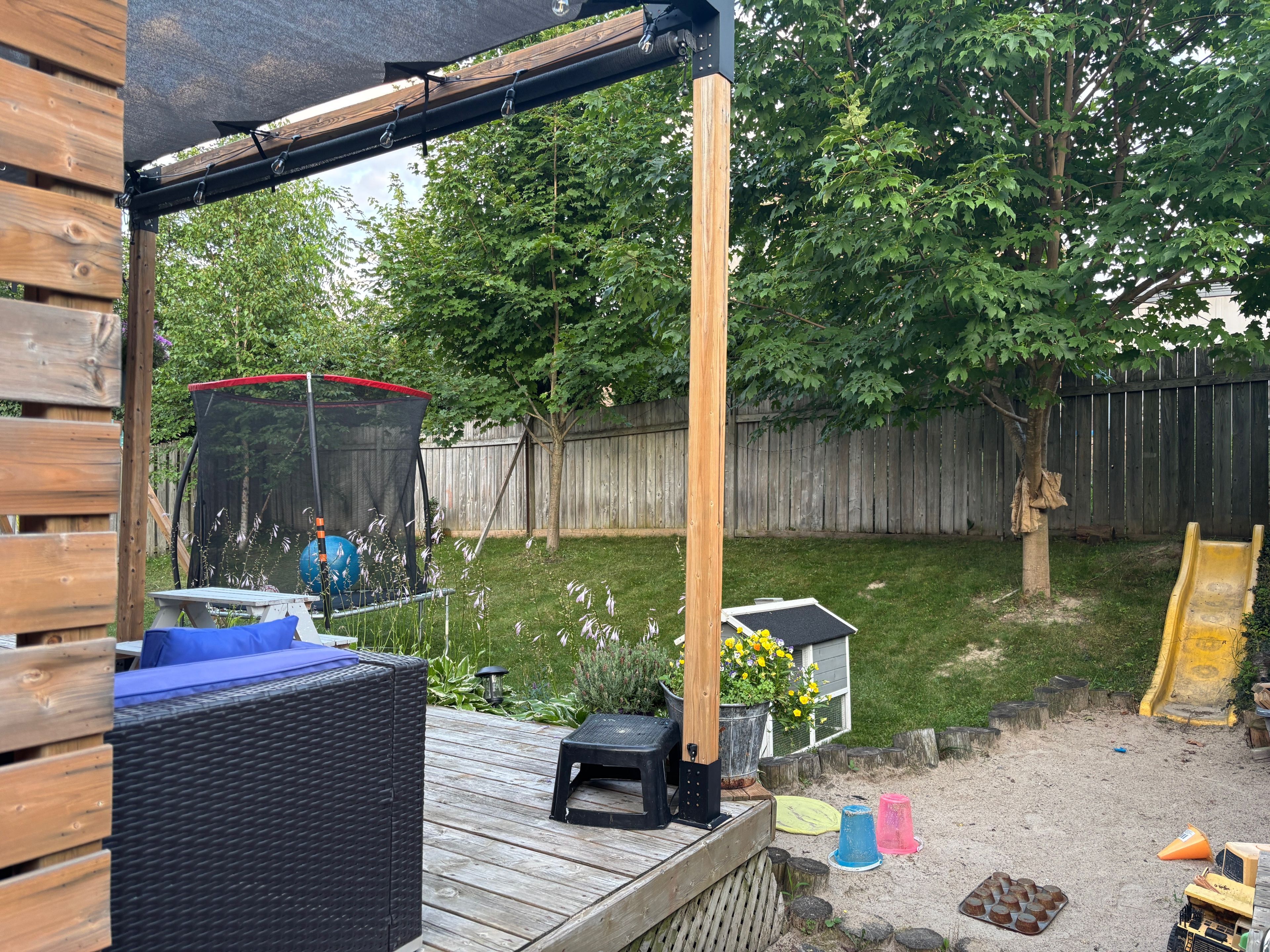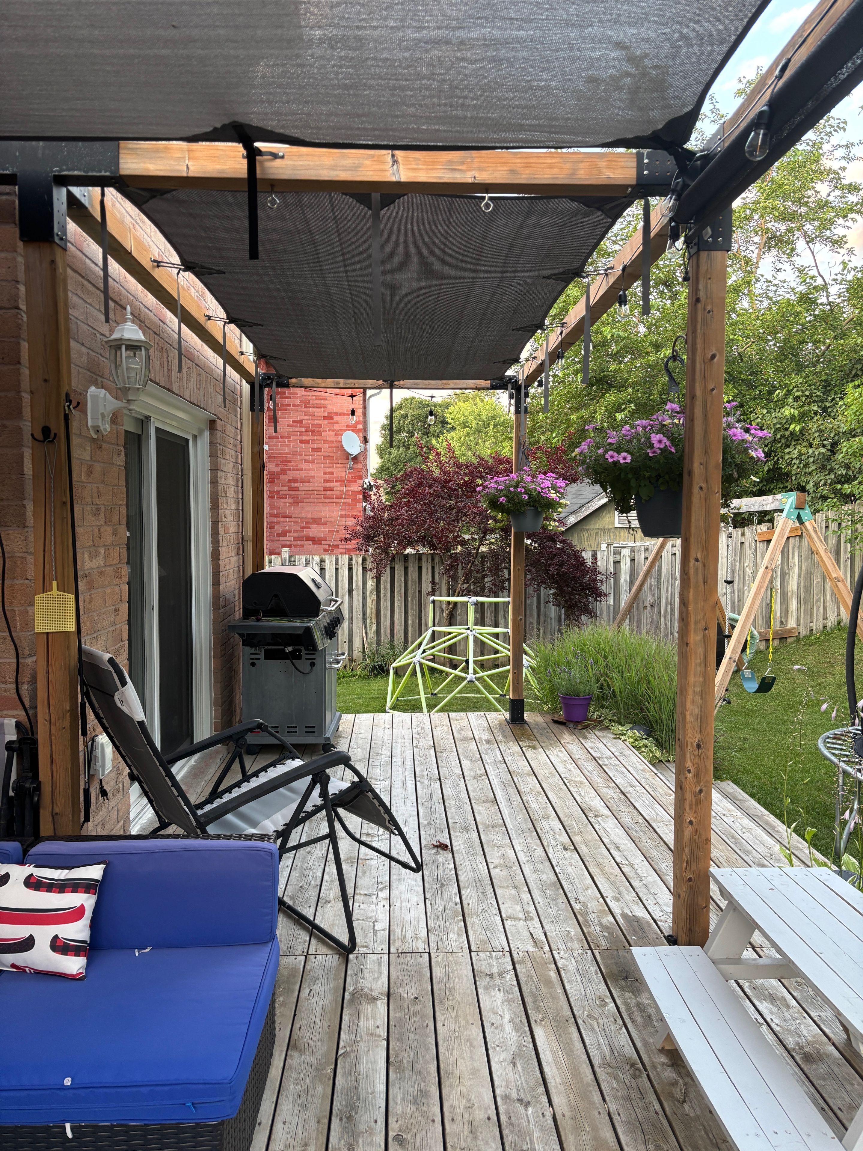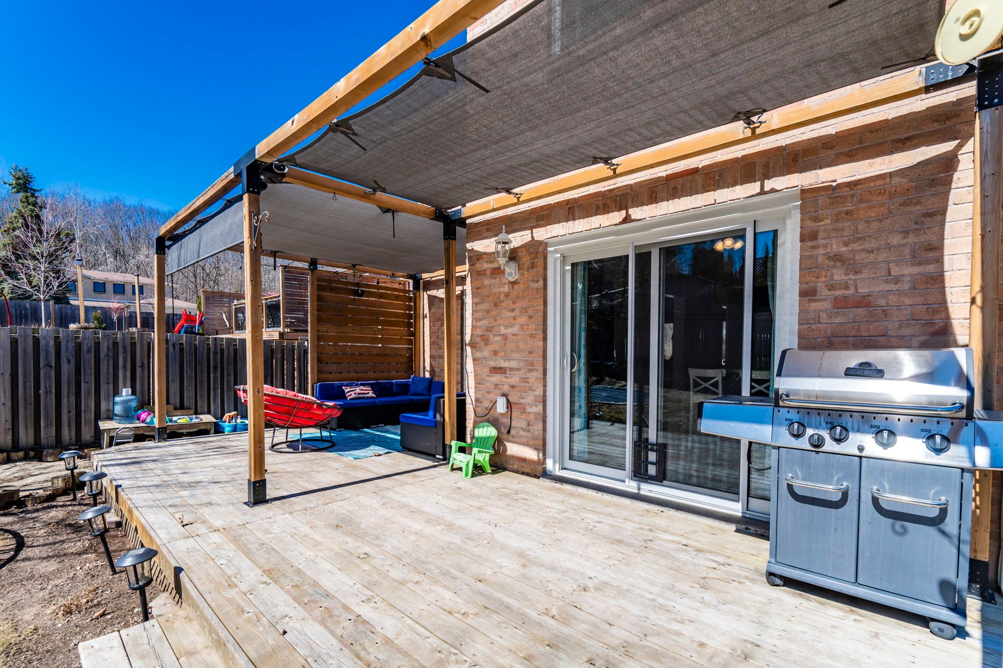 • Back deck with shade system for comfortable outdoor living.