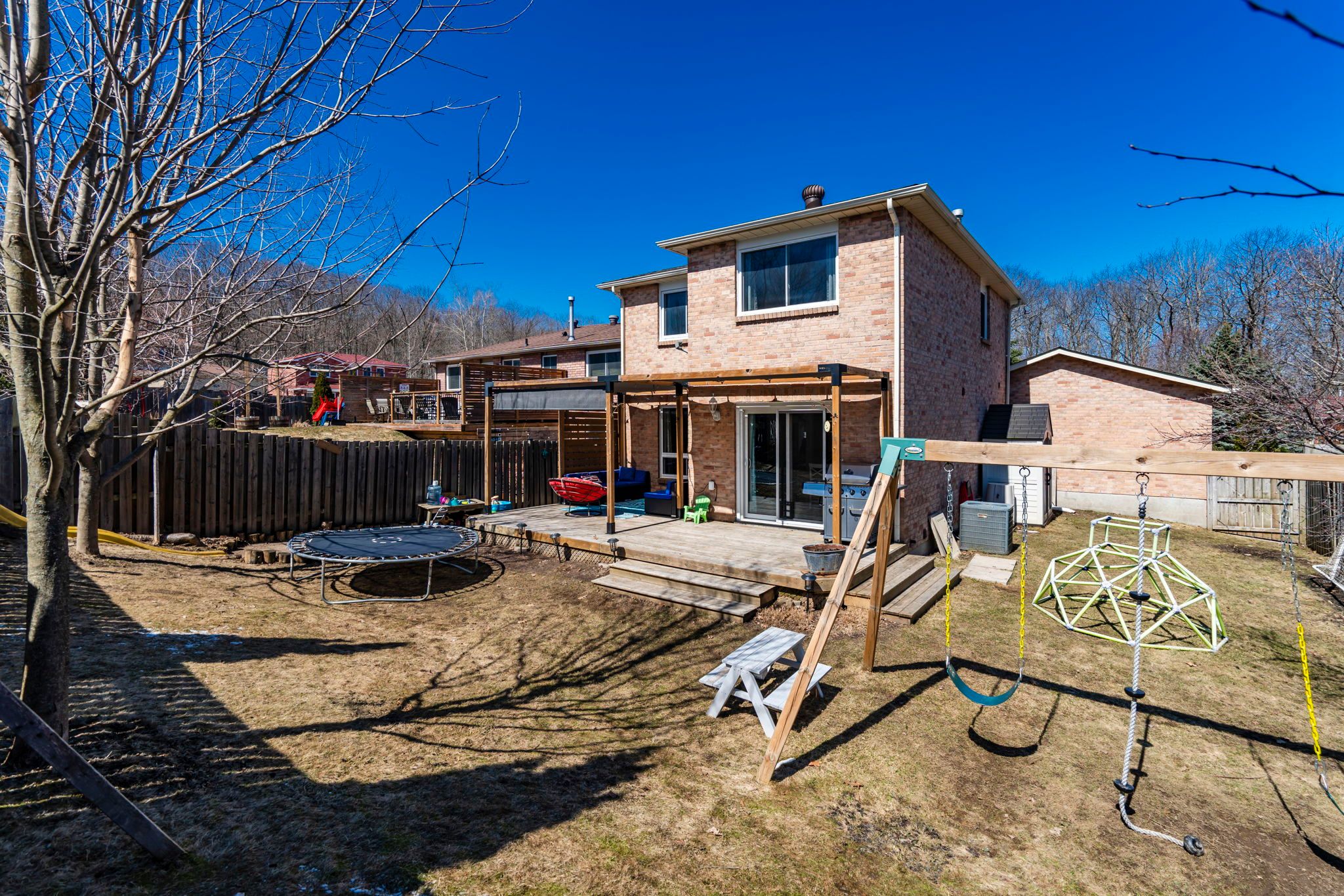 Welcome to this great family home tucked away on a quiet crescent in a prime, convenient location. Just a short walk to canadian martyrs catholic school, bayview public school, and georgian bay secondary, and close to hwy 93, the hospital, and shopping - everything you need is within easy reach. This attractive all-brick two-storey home offers wonderful curb appeal and an inviting covered front entry. Inside,you'll find three spacious bedrooms, including a primary bedroom with a 2-piece ensuite, plus a convenient powder room off the main entry. The stunning 5-piece main bathroom was fully renovated in march, adding modern comfort and style. The kitchen has been thoughtfully updated to improve functionality by bumping out the peninsula, adding a dishwasher, new counters with breakfast bar, backsplash, and a ne, modern paint color for the cabinetry. Brand new carpet on the staircase and throughout the upper level adds a fresh, move-in-ready feel. Enjoy outdoor living on the back deck with the attractive and practical toja grid custom shade system, providing relief from the summer sun and helping keep the main floor cool. Mature deciduous trees enhance privacy during warmer months. Additional highlights include replaced main floor windows and sliding glass door (approx. 3 years ago) and upgraded insulation, newer casement window in the staircase and updated primary bedroom window, an owned hot water tank with no rental costs, and a full high basement offering excellent potential for additional living space. This property offers comfort, updates, and location - everything you could hope for at an affordable price.