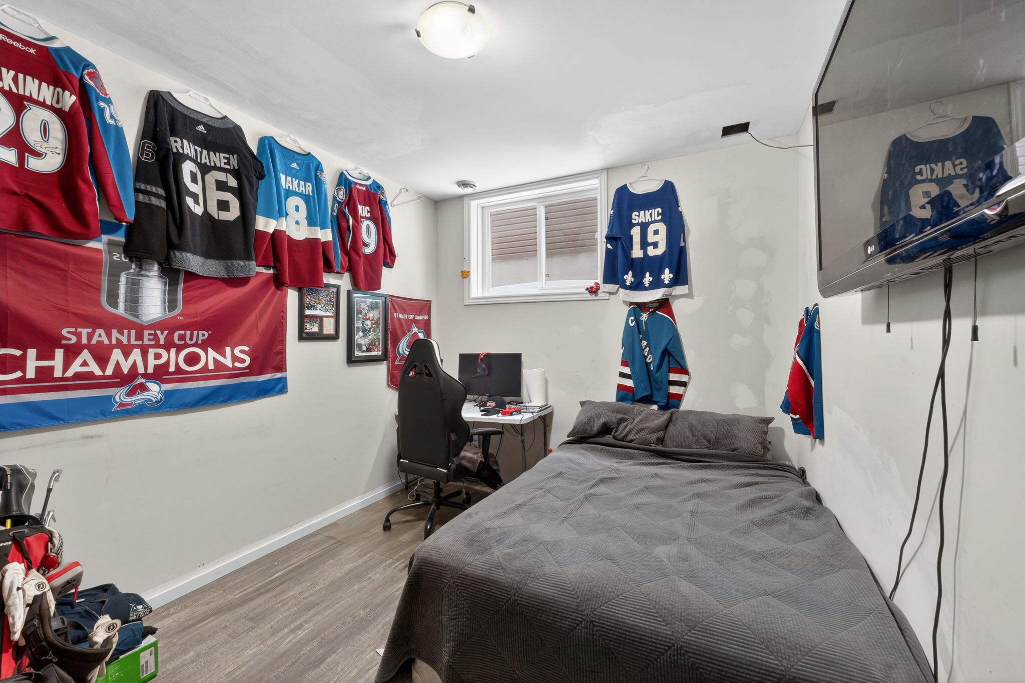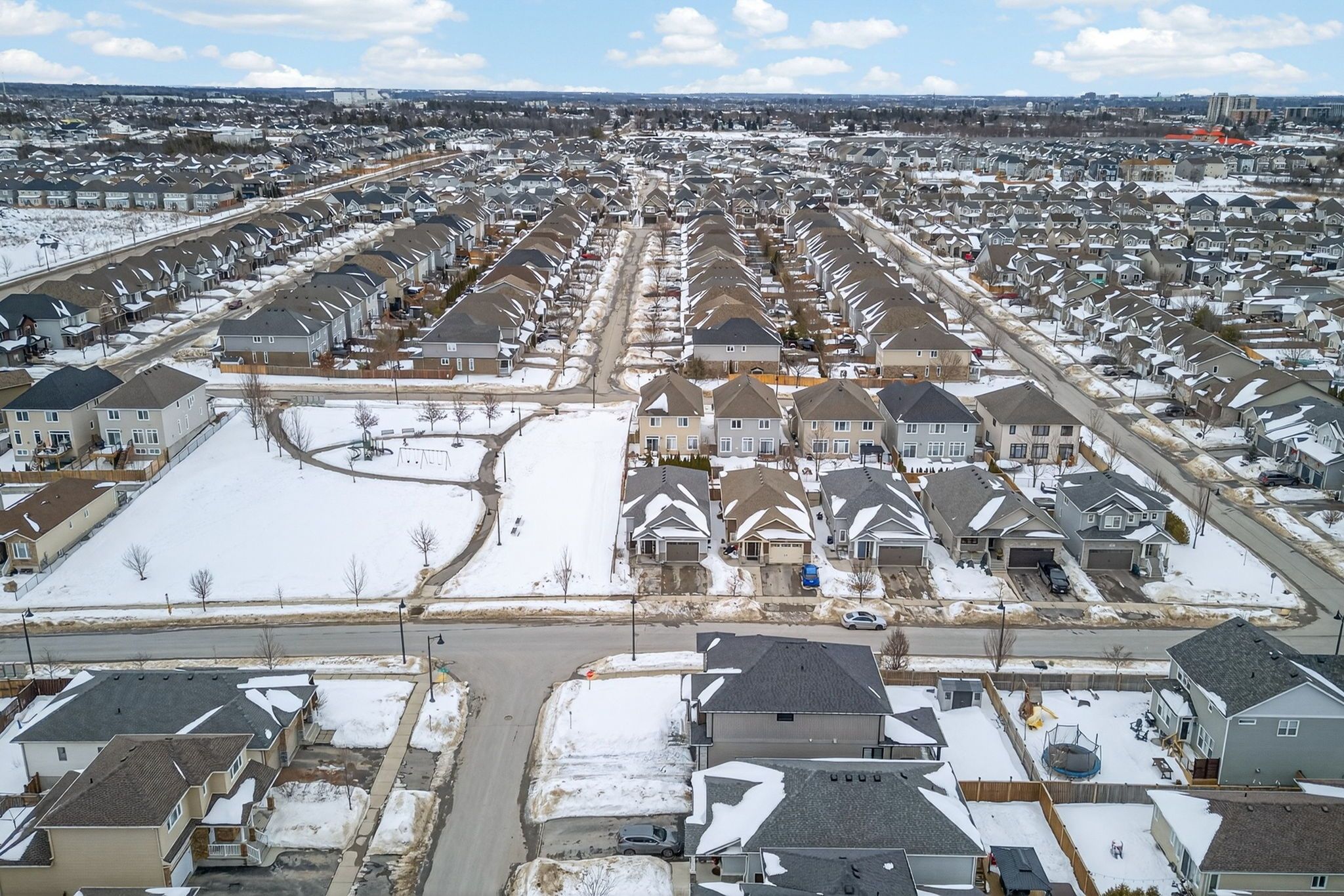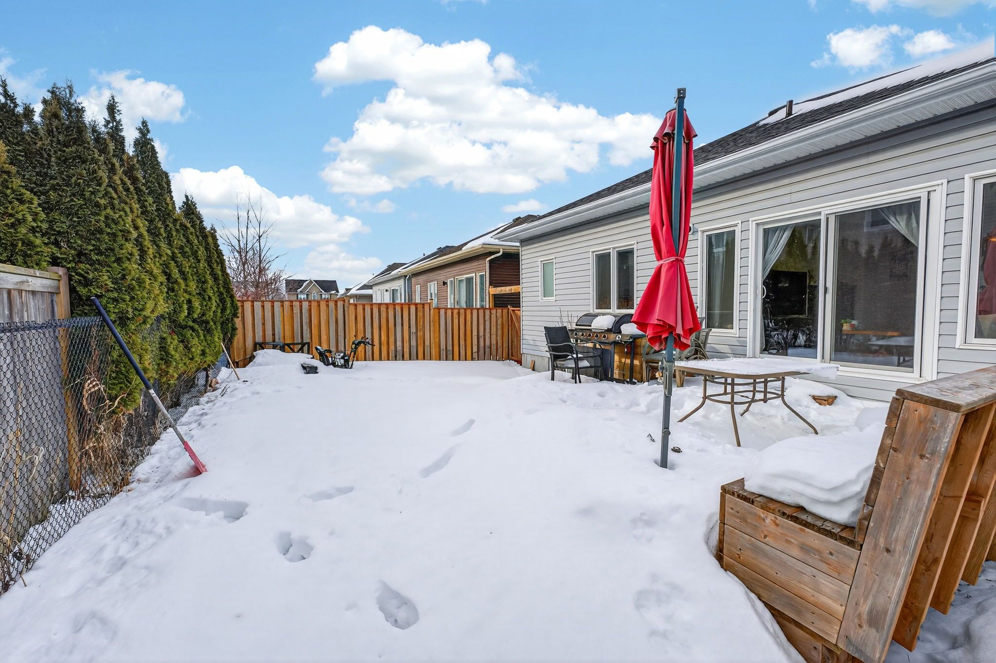 • Elevated deck overlooking the backyard and backing onto Woodhaven Park.