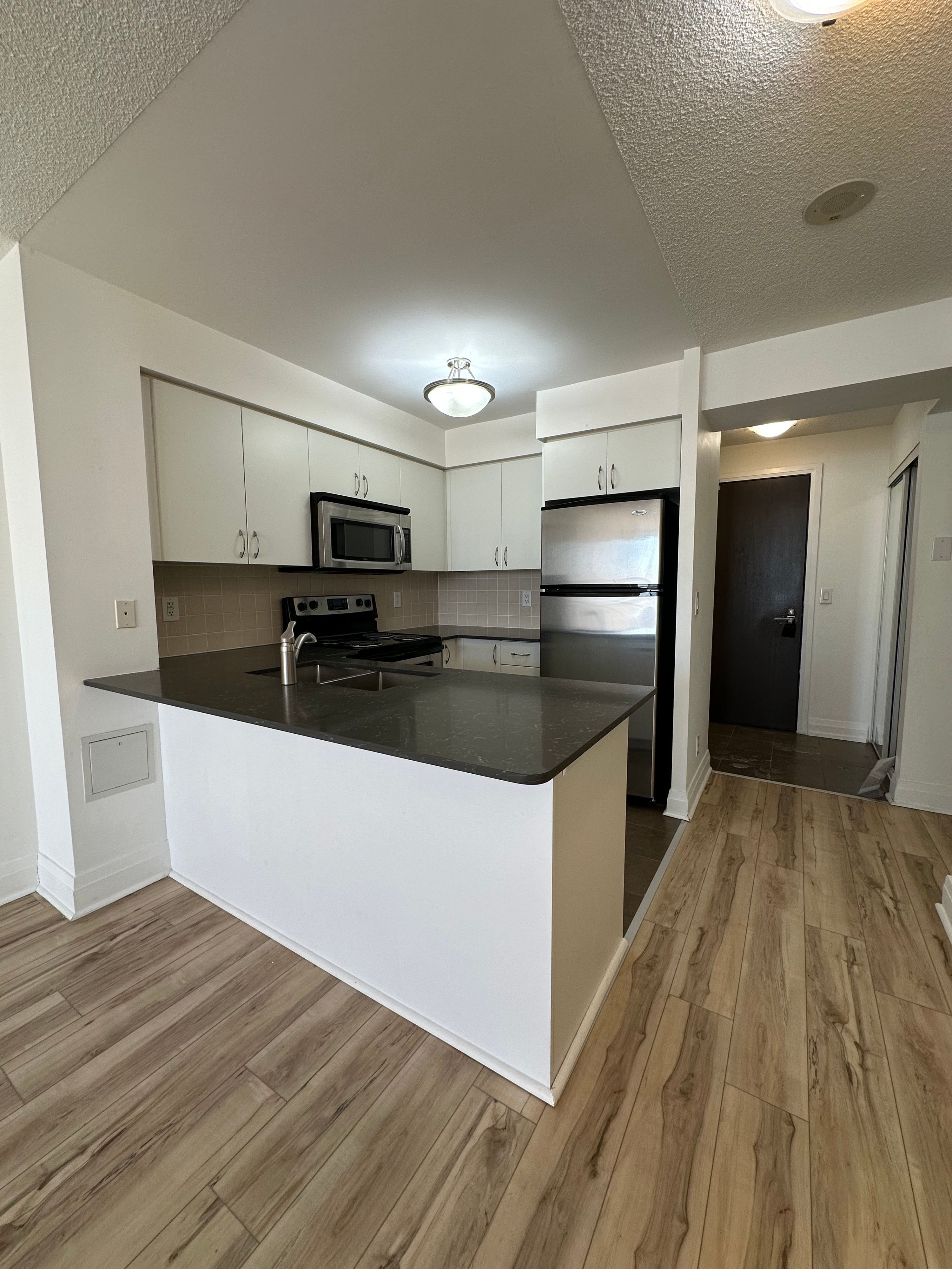 A spacious condo with a open concept floor plan. True kitchen (not a wall kitchen) with peninsula counter space dividing the kitchen from the dining/living space. The plus 1 den is very versatile. The s/s appliances gives the kitchen a gourmet touch to inspire the tenant to cook up delicious meals. The amenities are plentiful best of all is the indoor swimming pool for year round exercise. The unit has a south exposure so get out on the balcony in the summer and relax after a long day at the office and maybe enjoy that great meal the kitchen inspired. This unit includes 1 parking space too. But hey leave the car at home because the subway is just across the street-sheppard west station. Thats convenience!