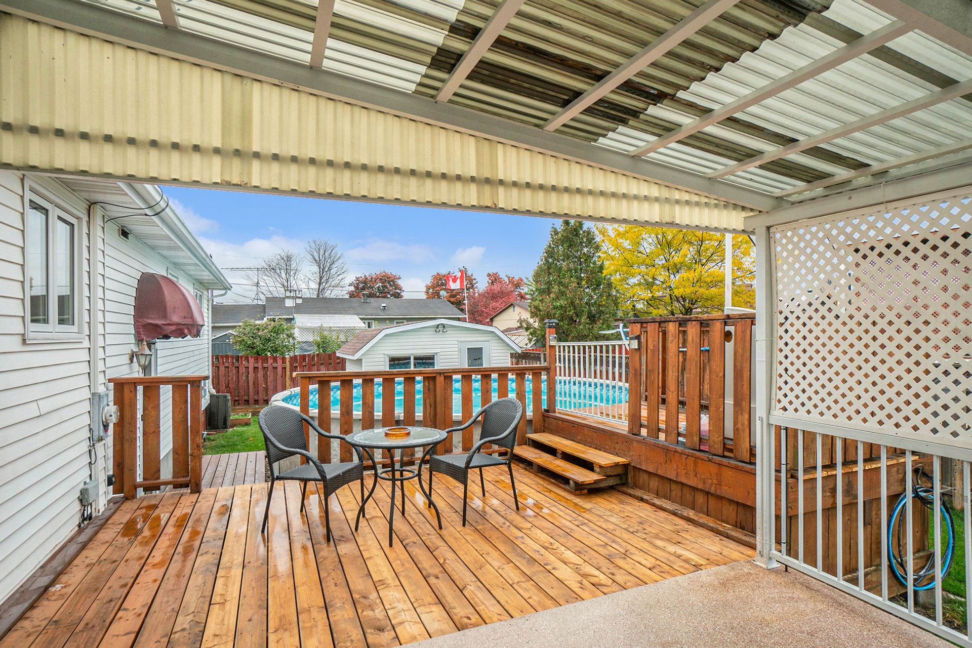 • Generous fenced backyard with a pool for summer fun.